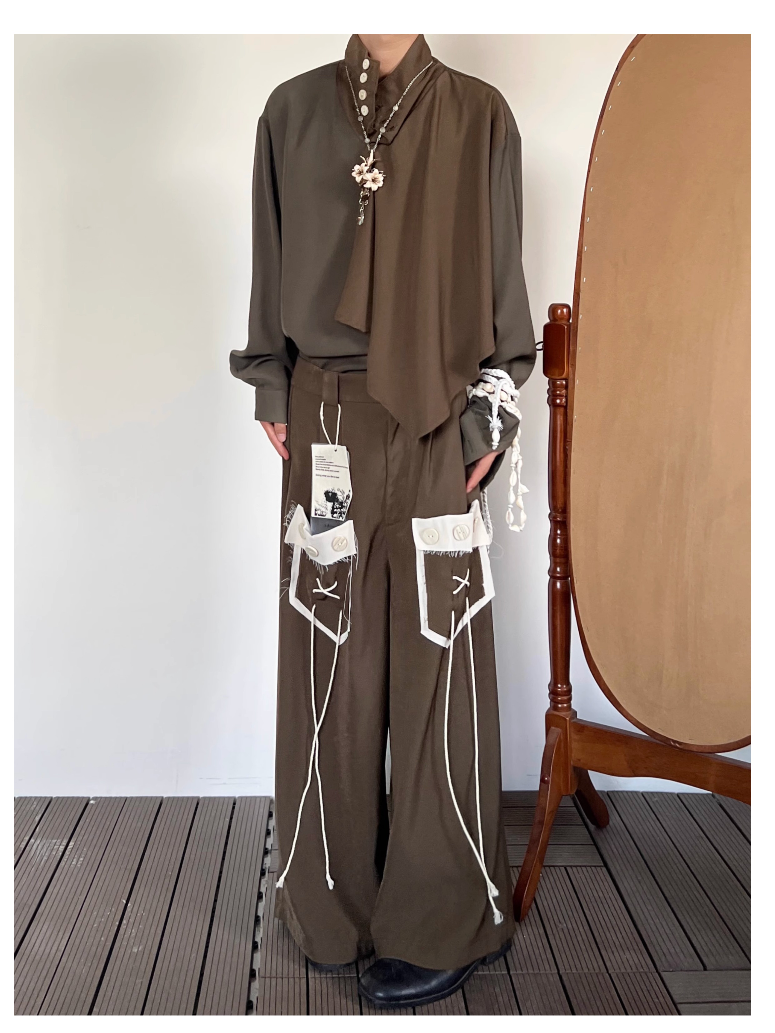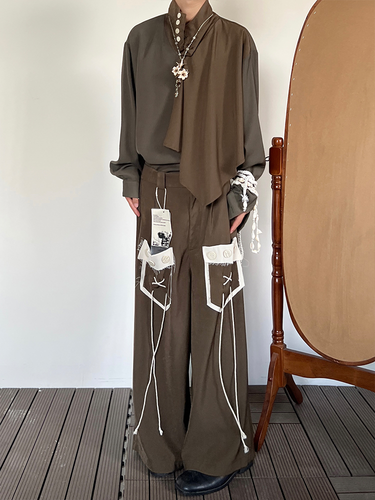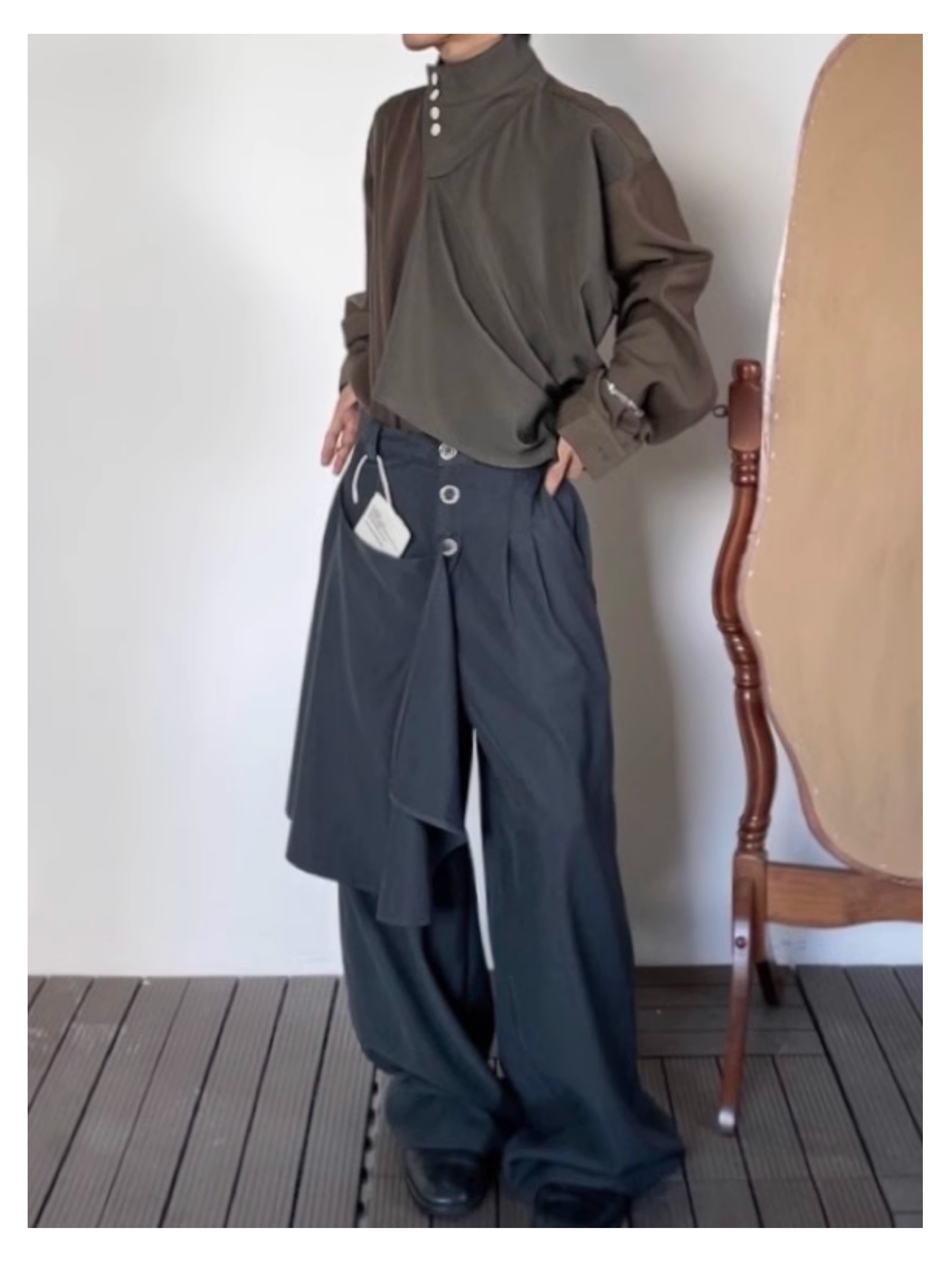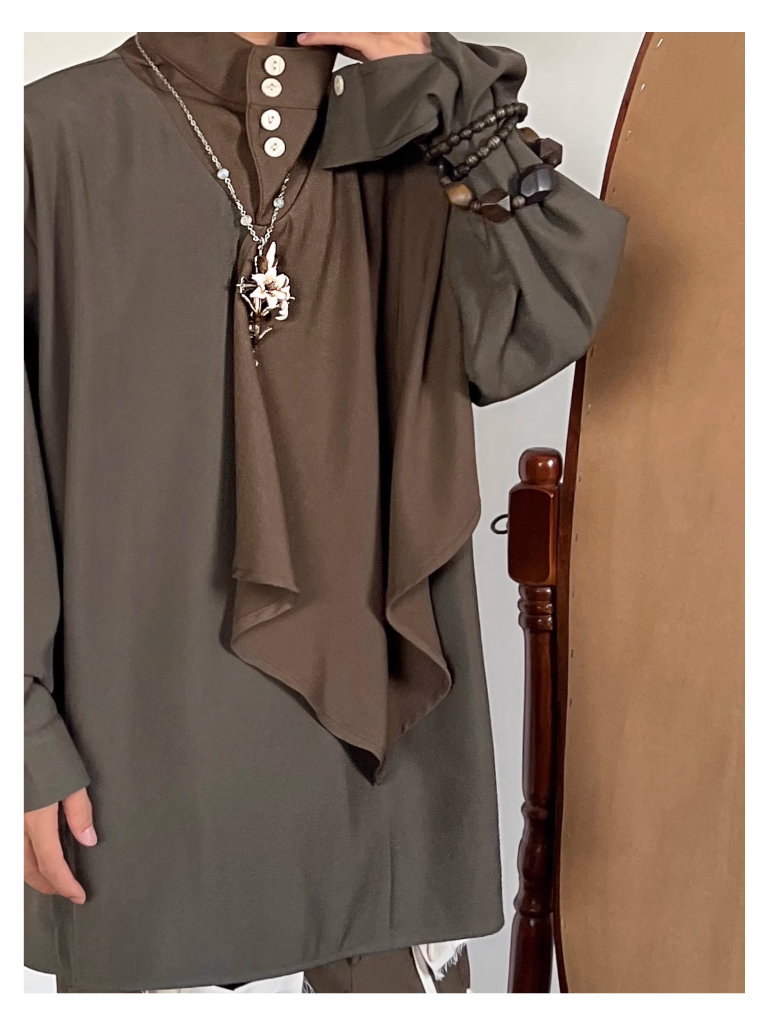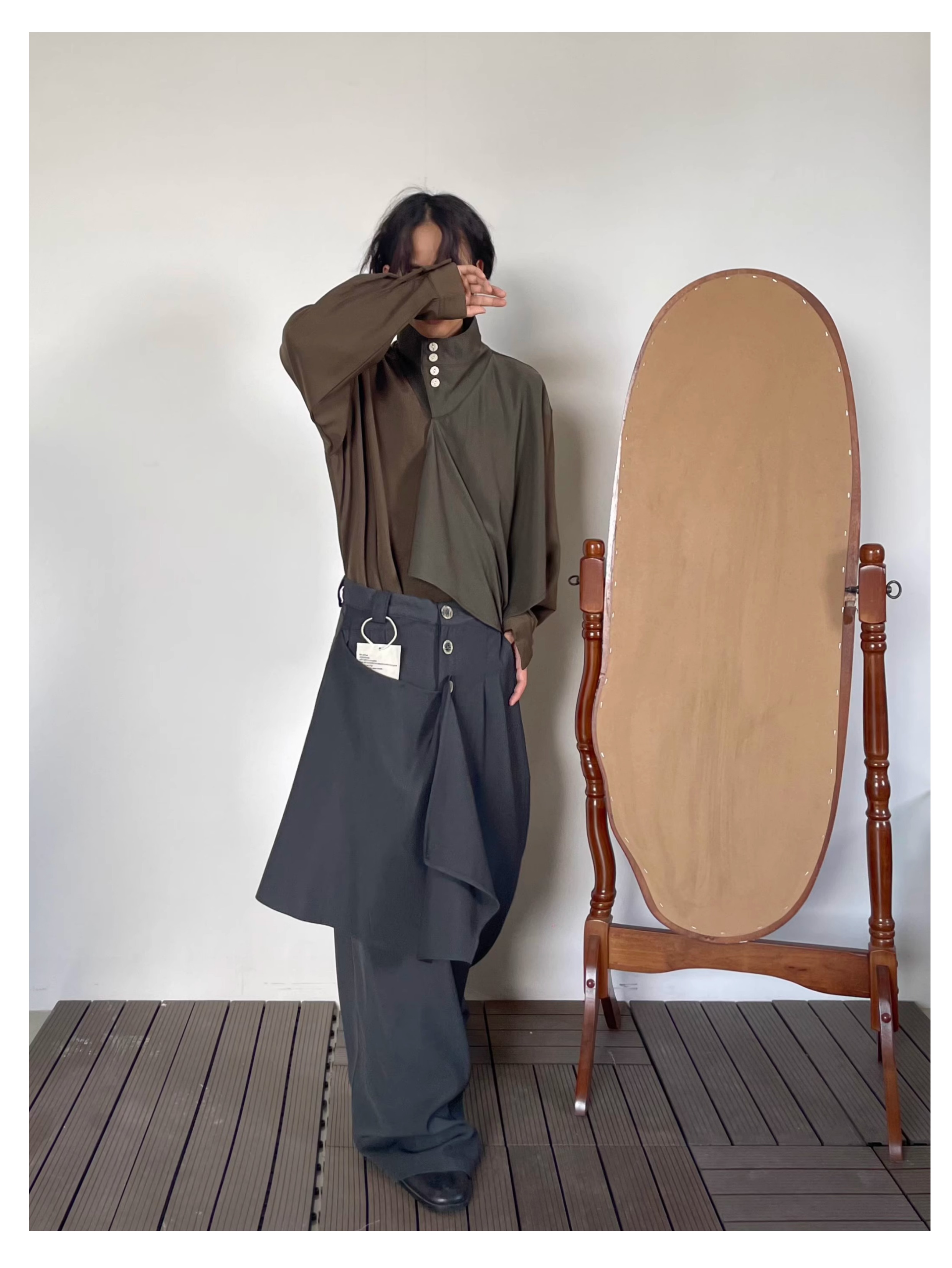 Patchwork Stand Neck Long Sleeve Shirt WN19994