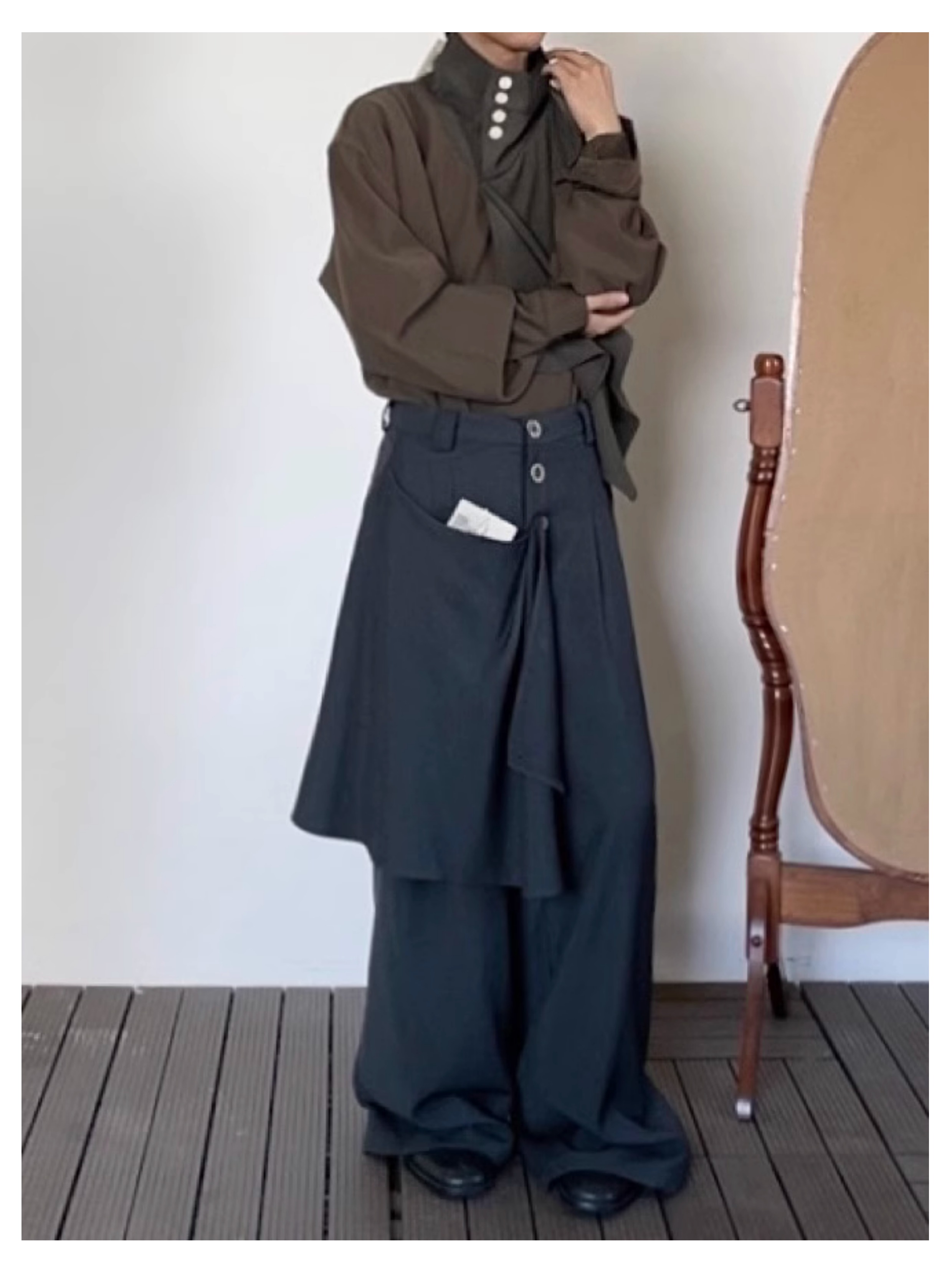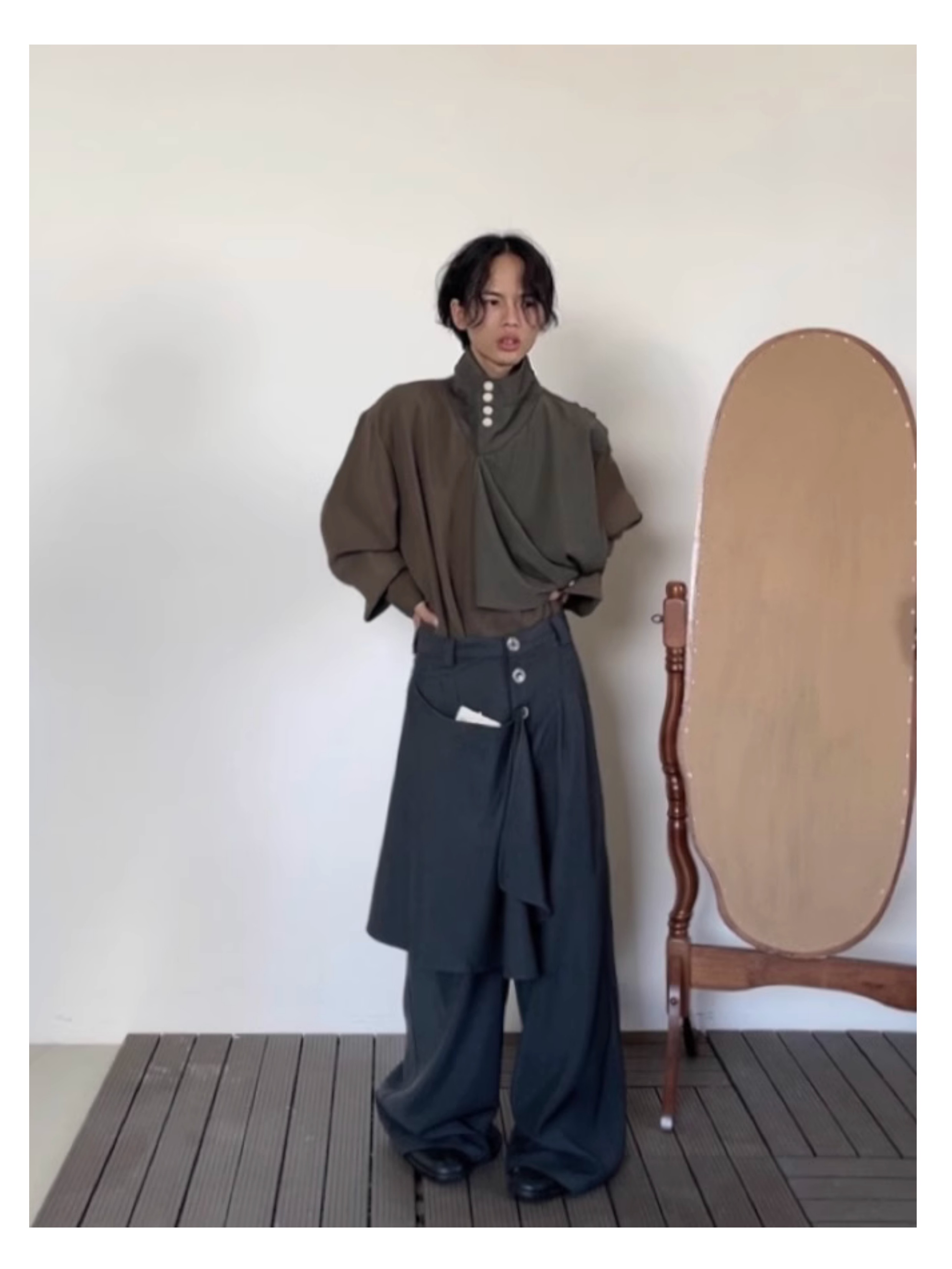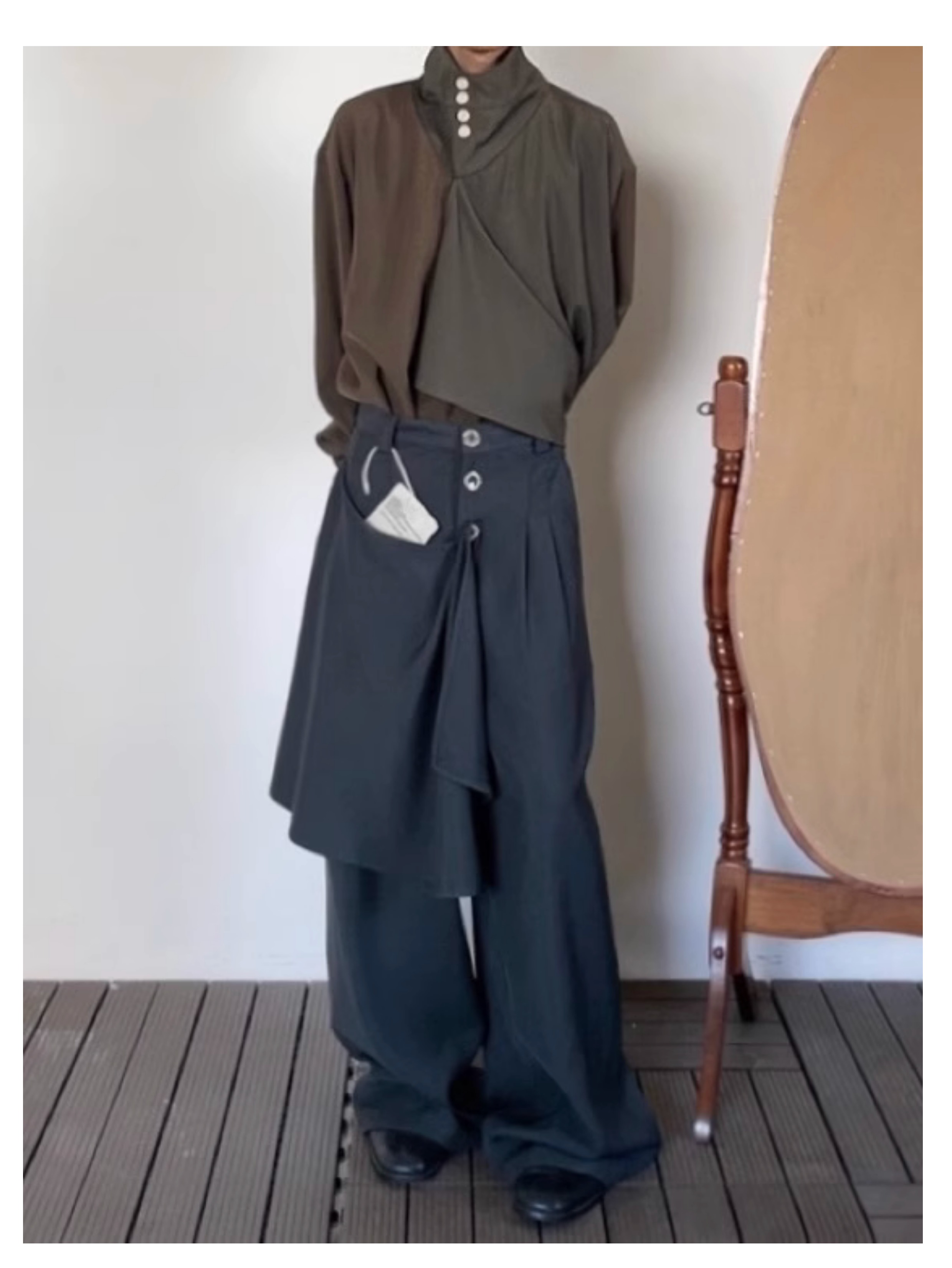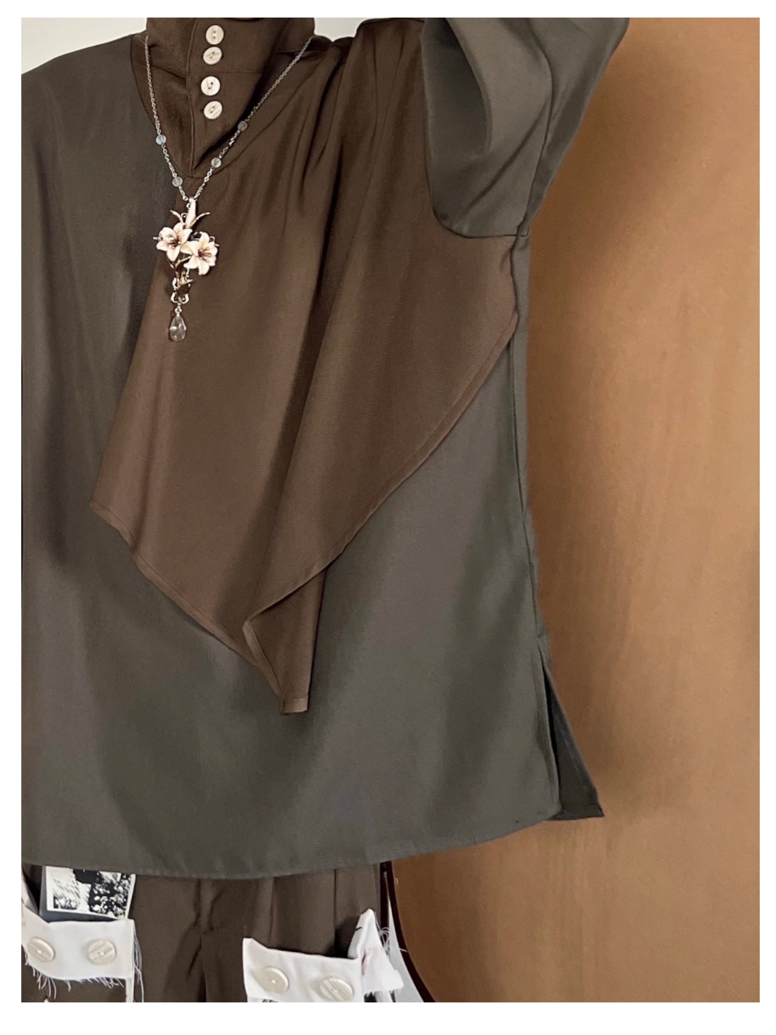 Patchwork Stand Neck Long Sleeve Shirt WN19994