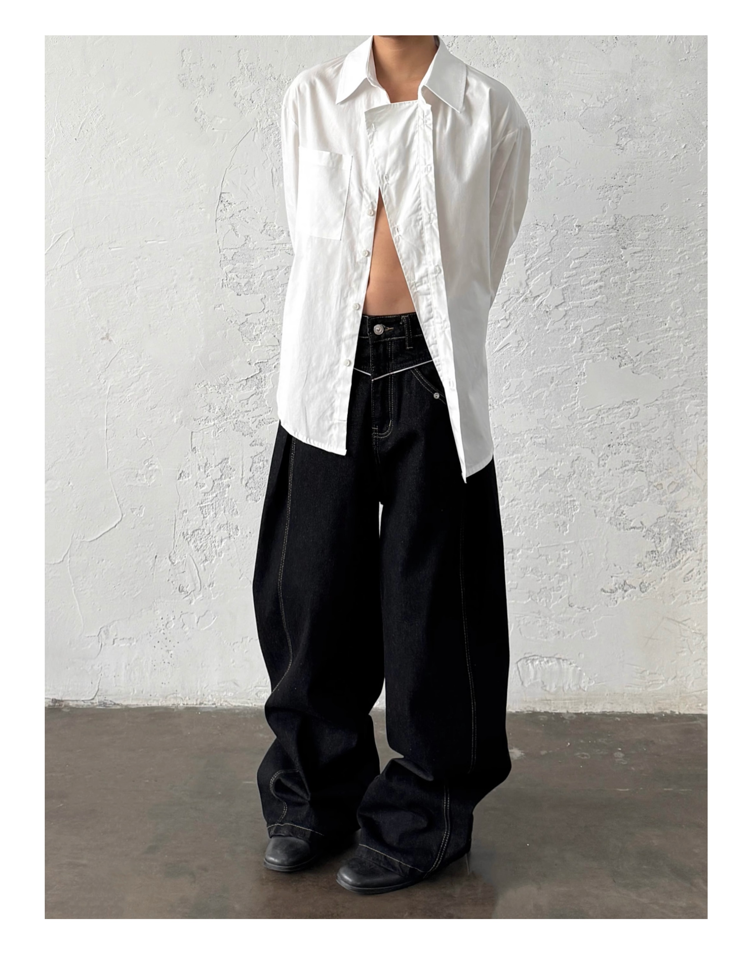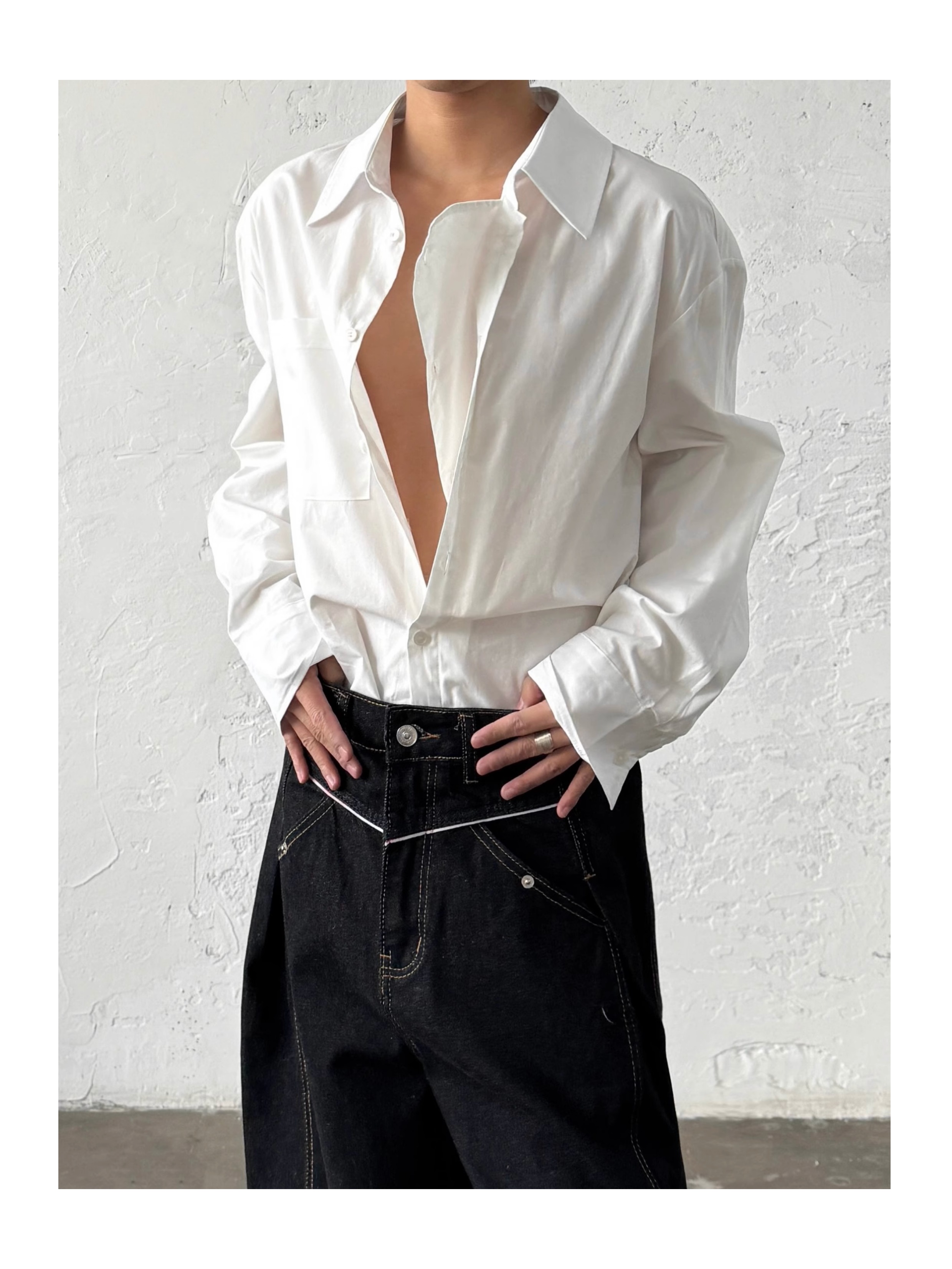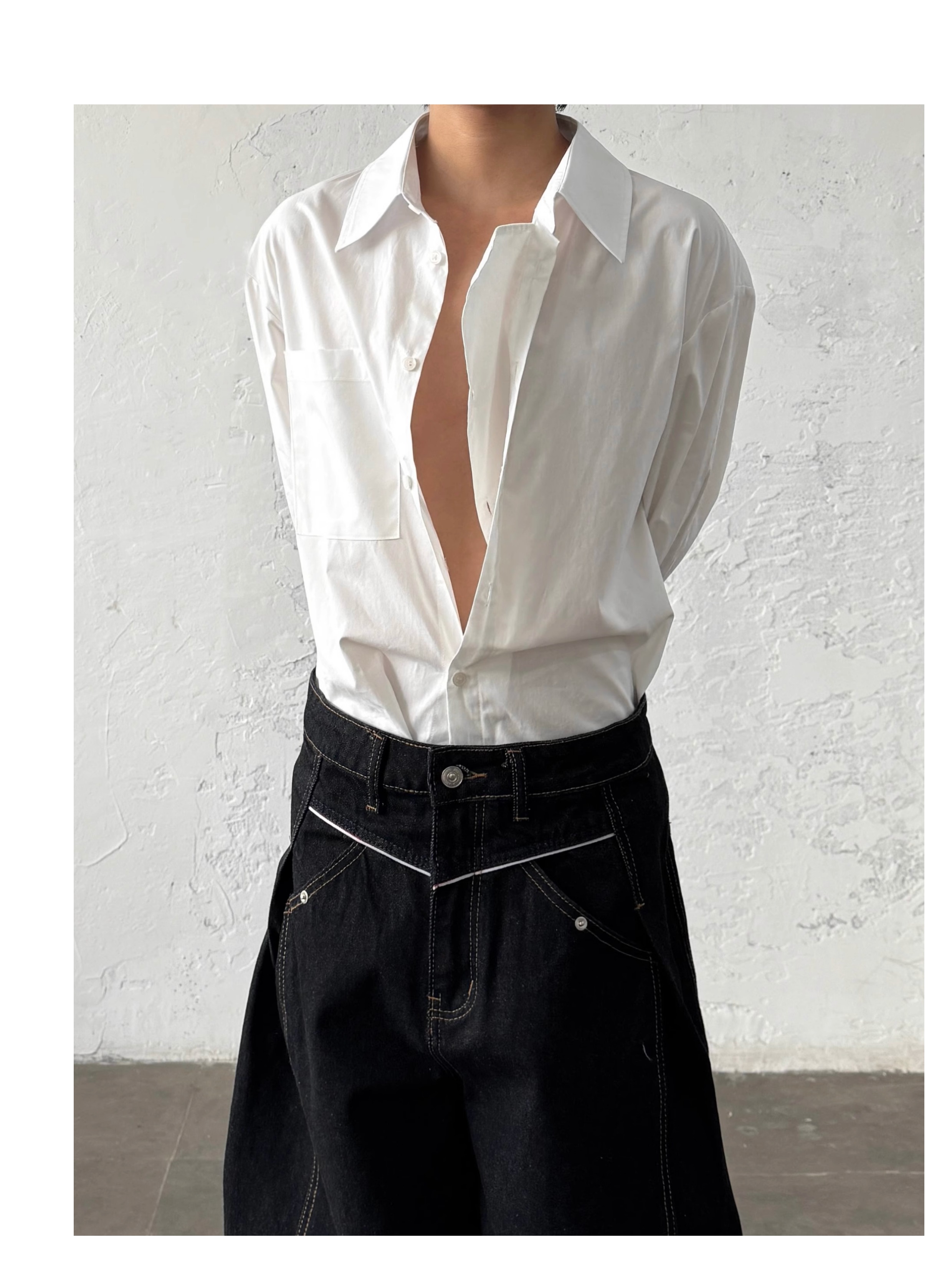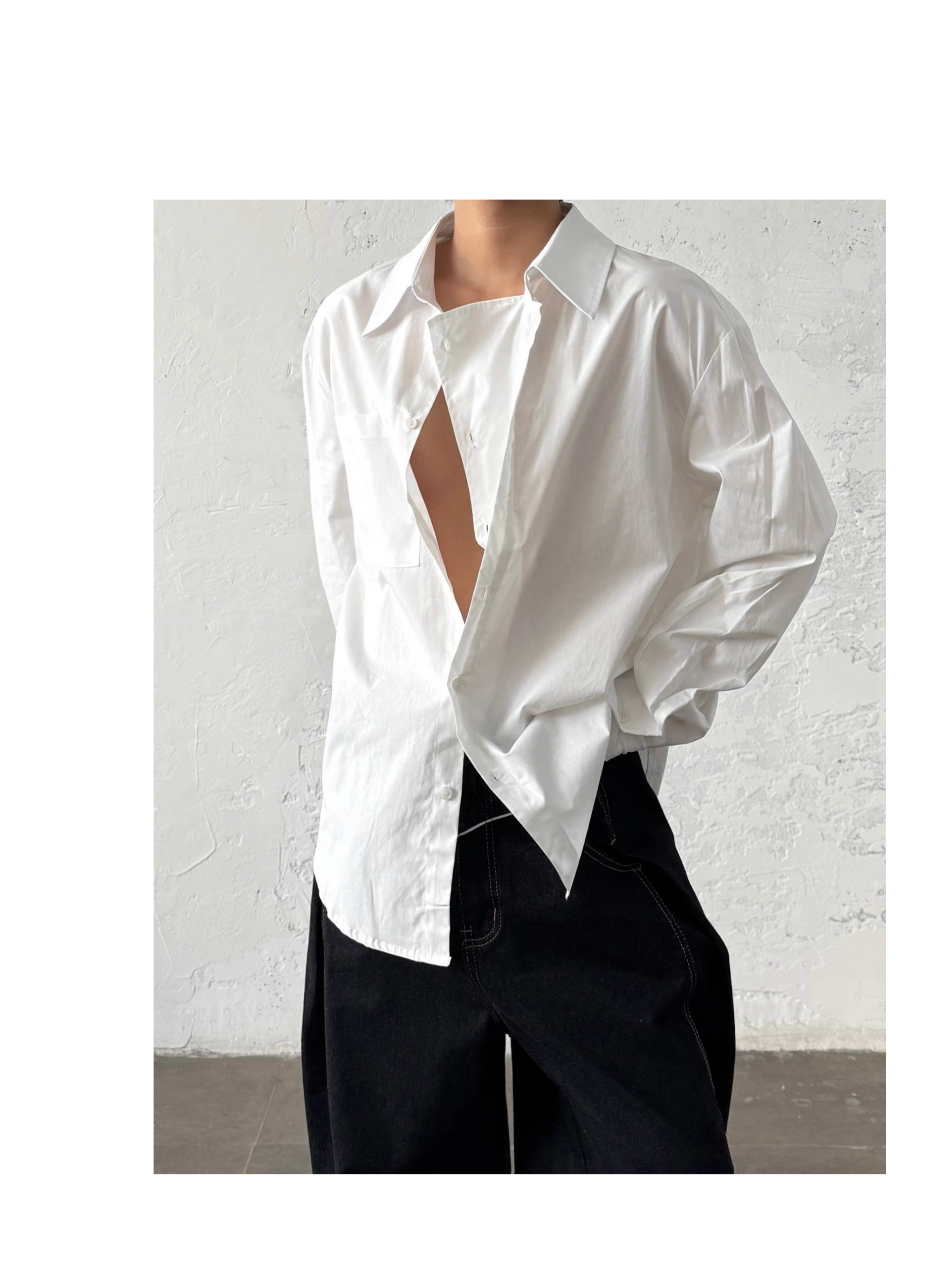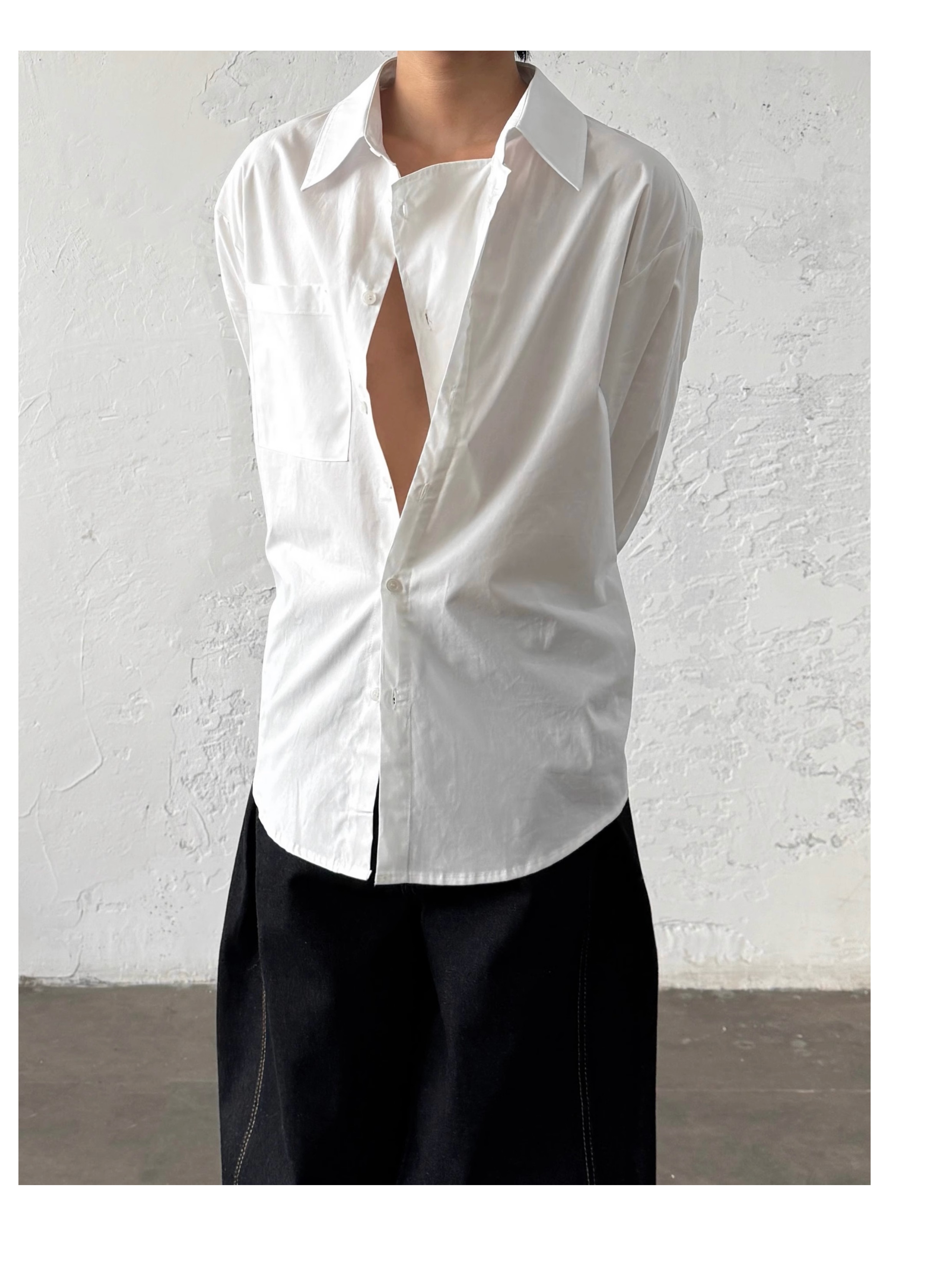 Minimalist Design Double Placket Layered Button Long Sleeve Shirt WN20006