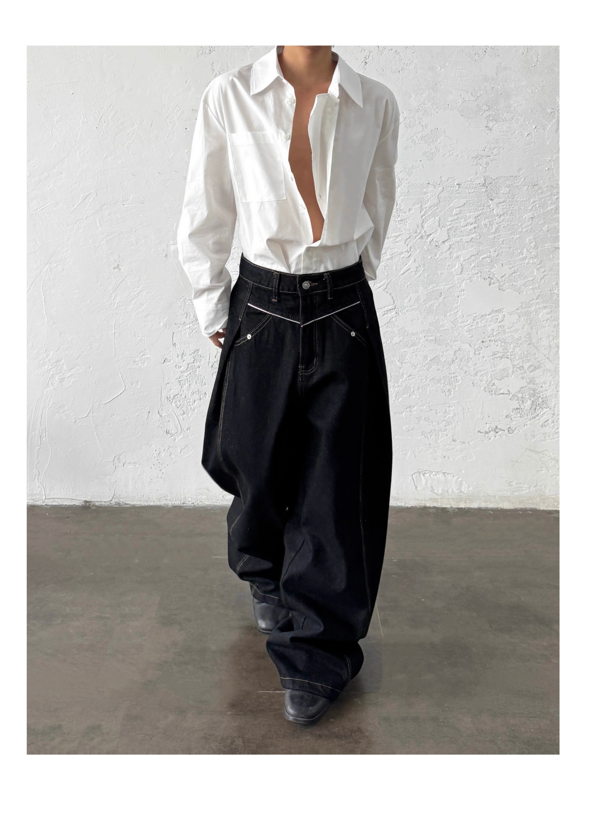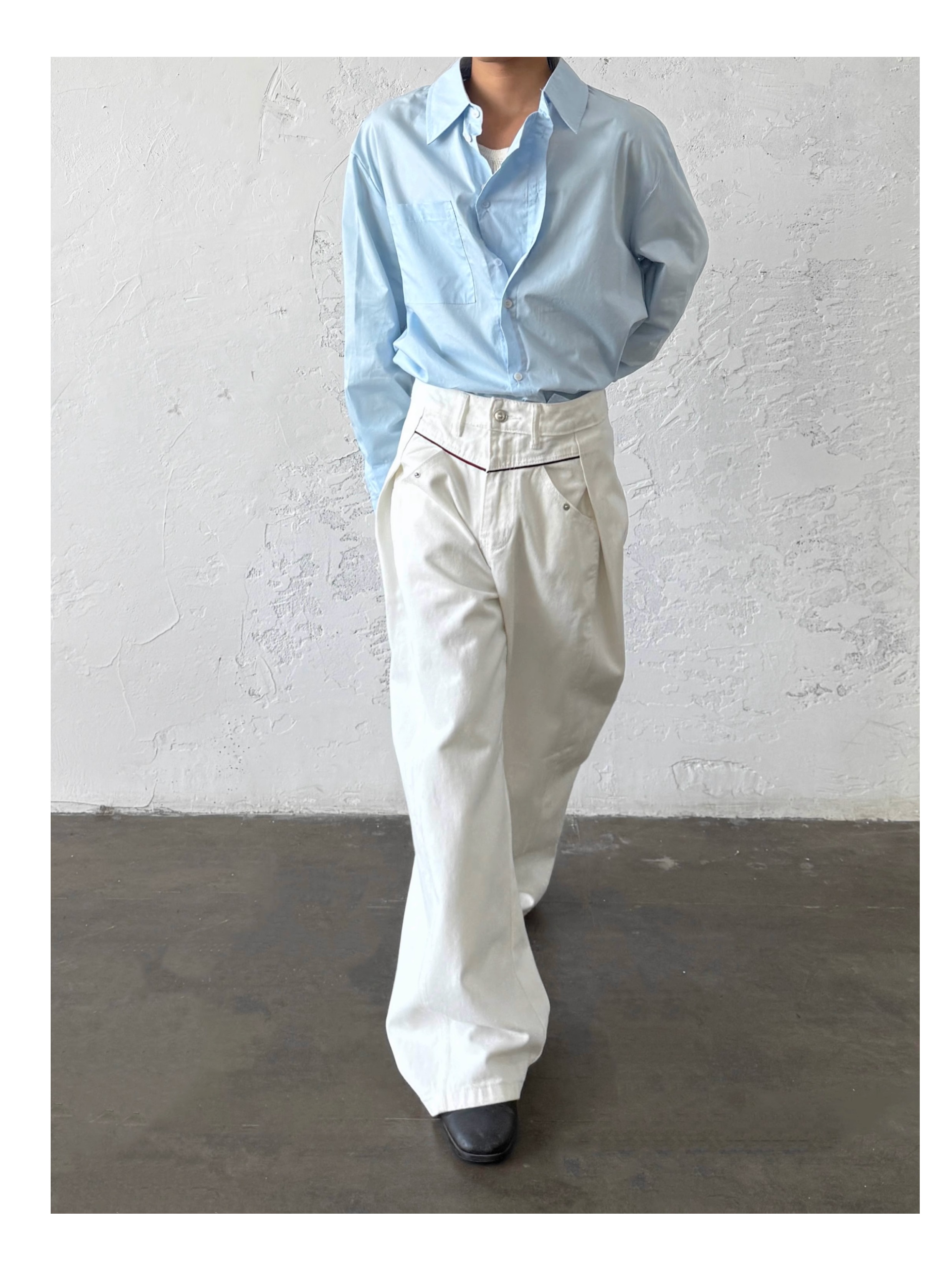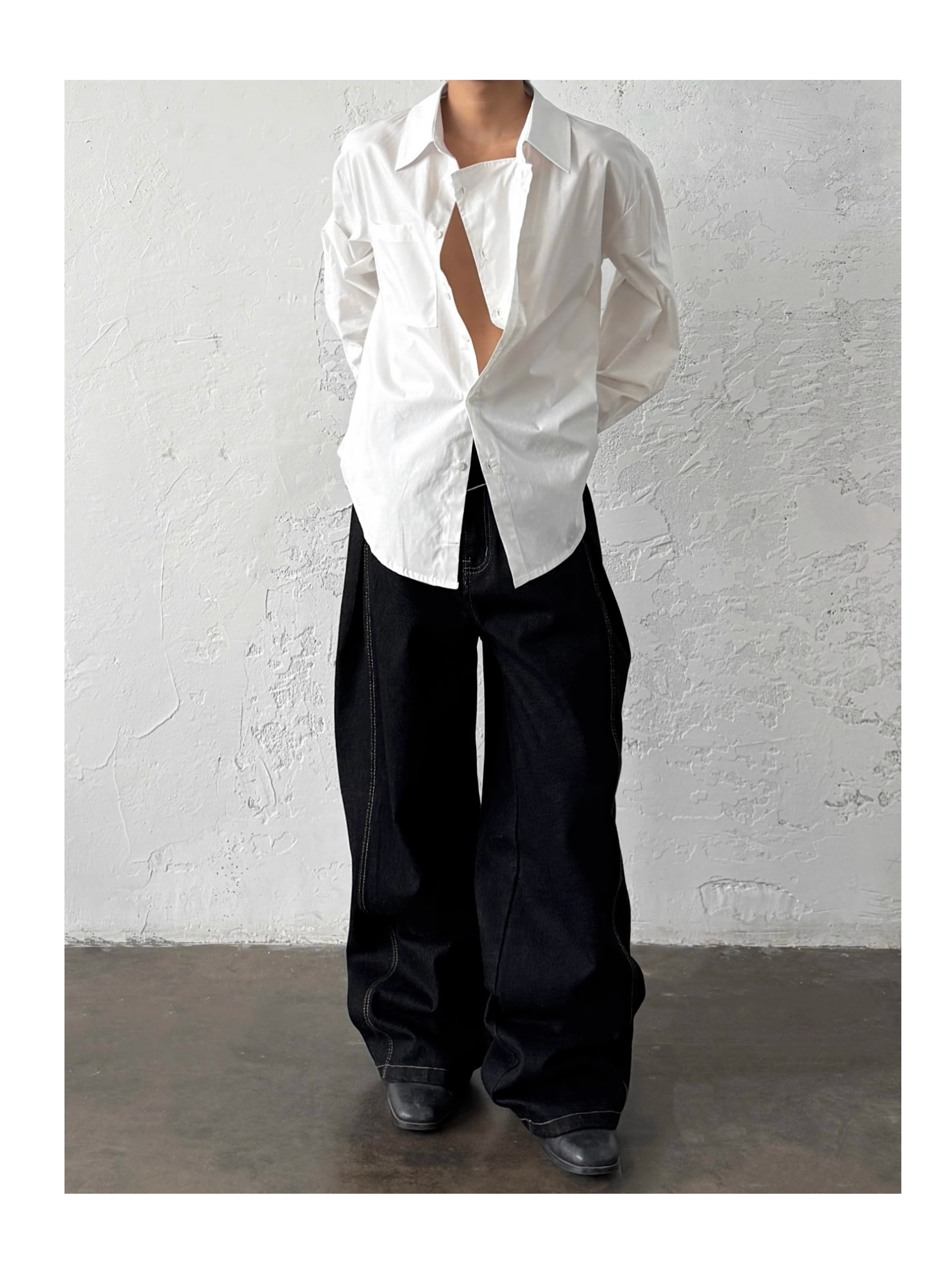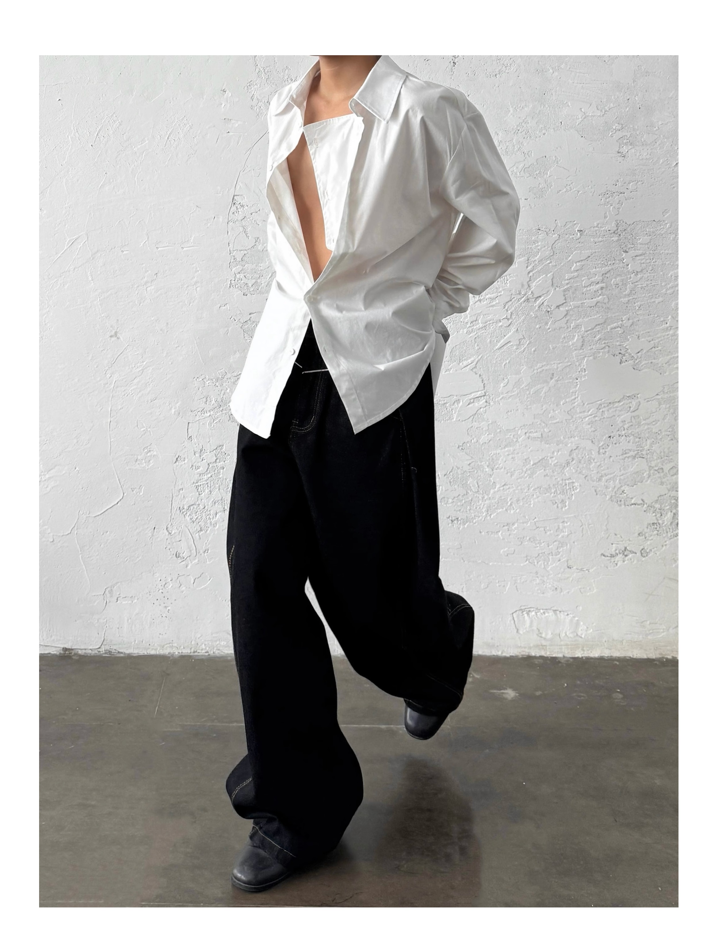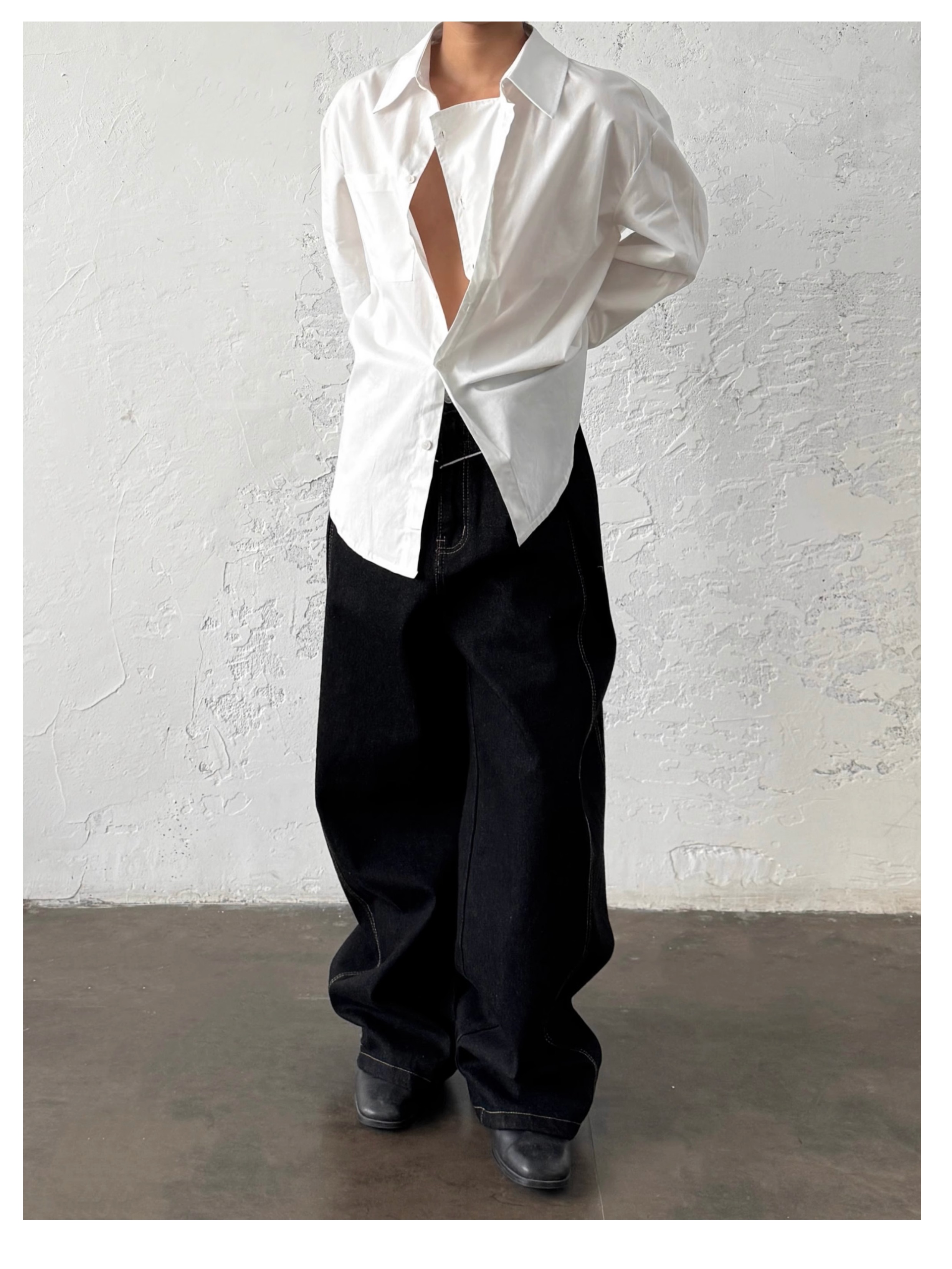 Minimalist Design Double Placket Layered Button Long Sleeve Shirt WN20006