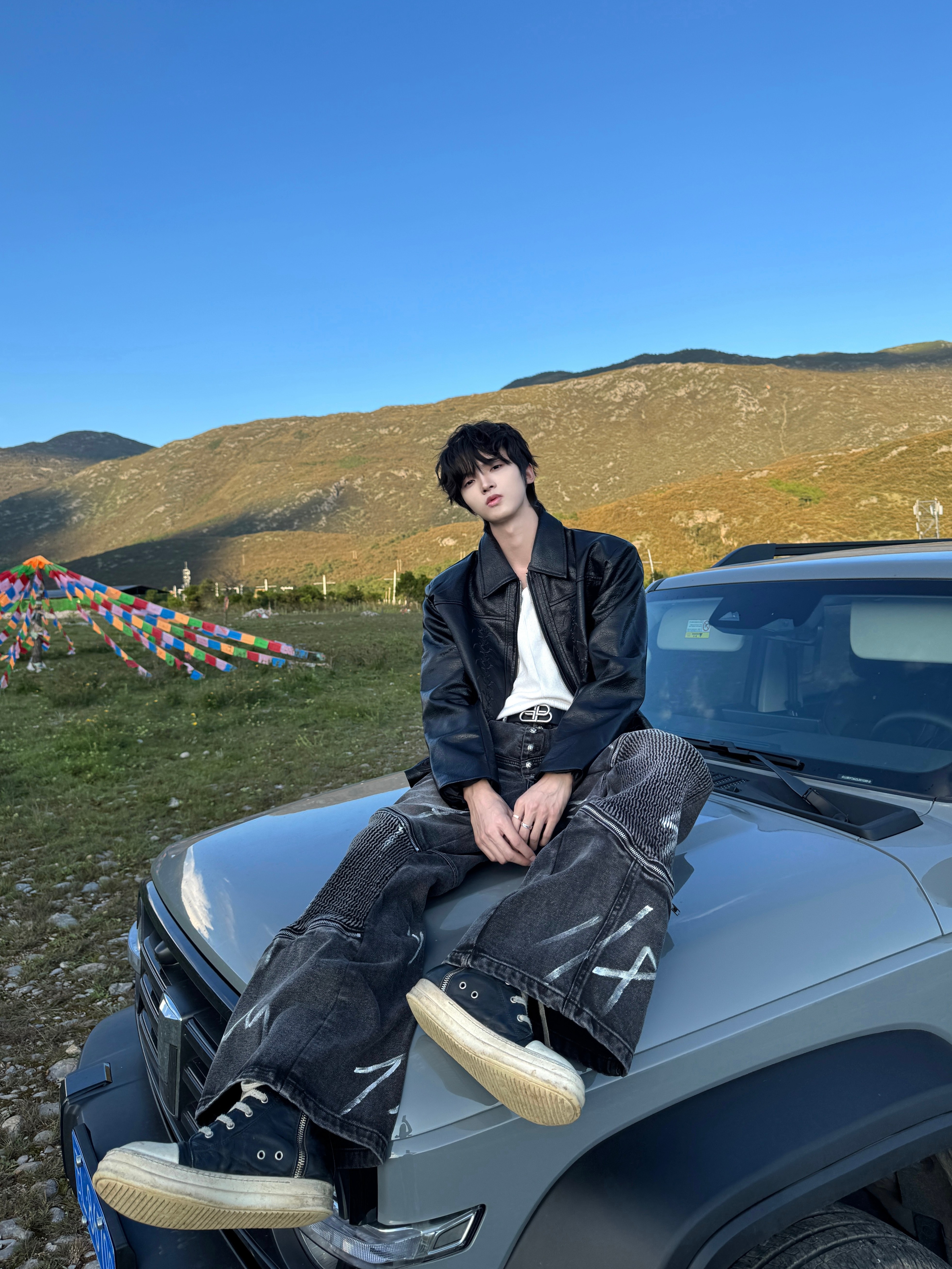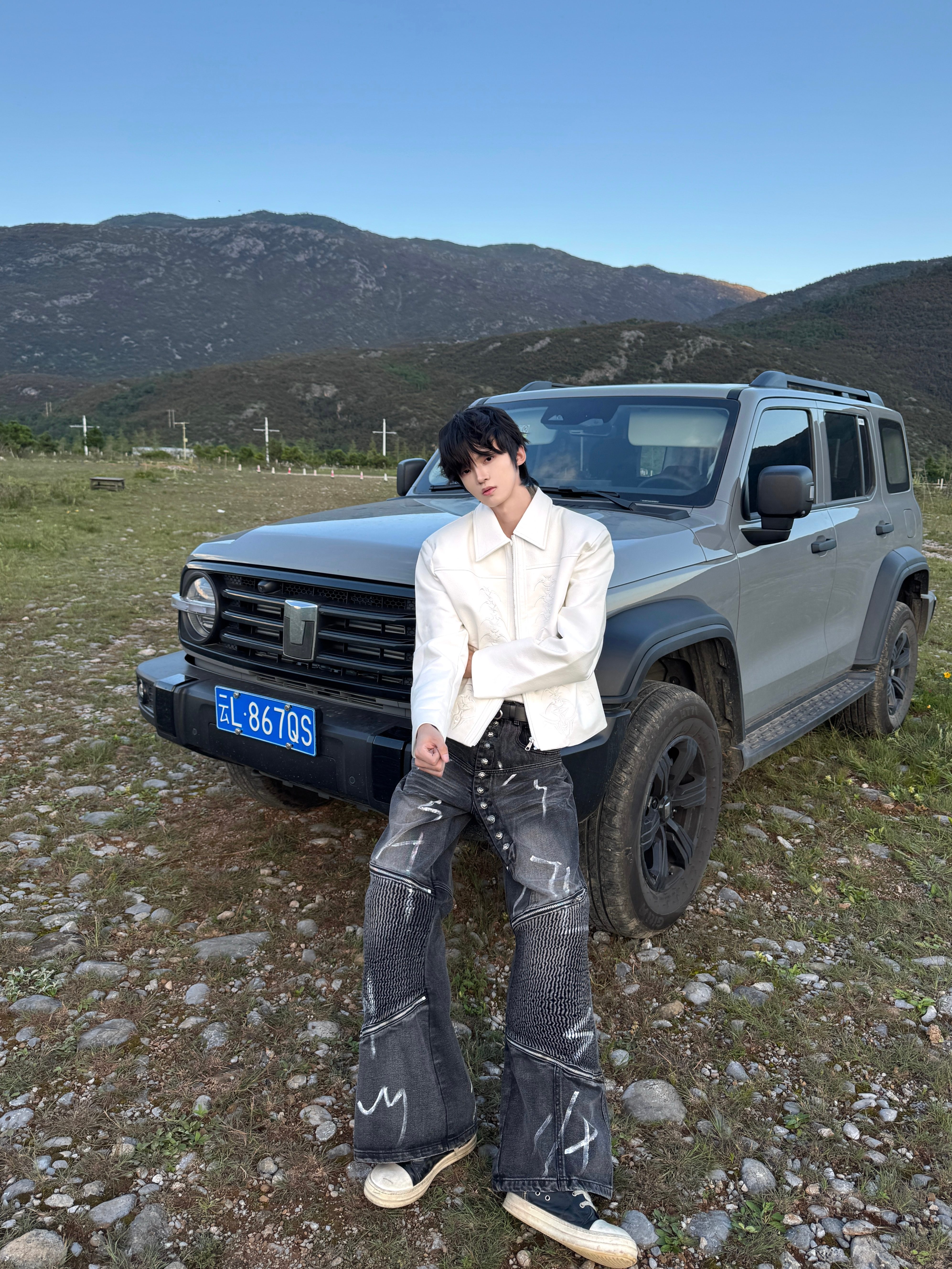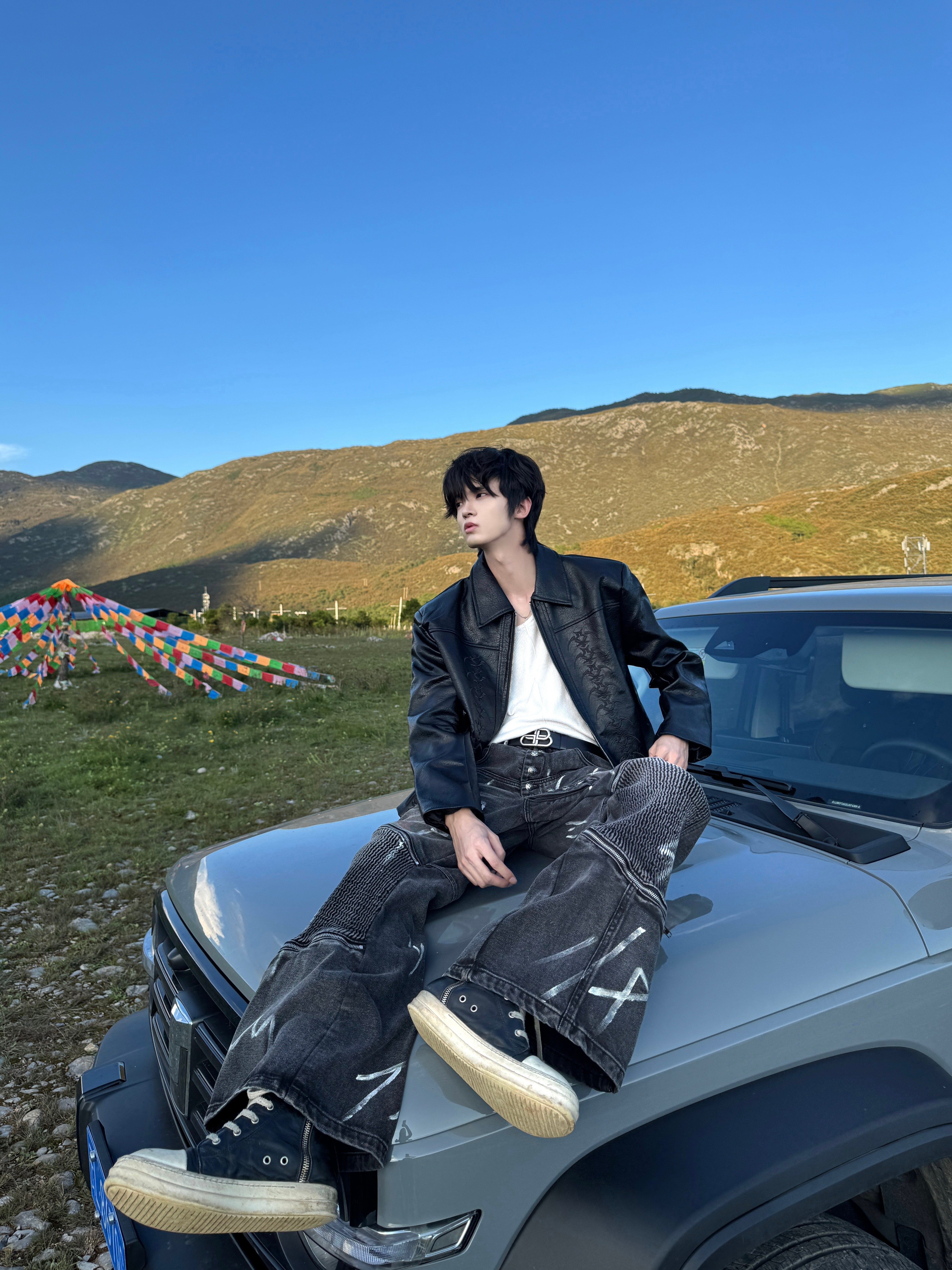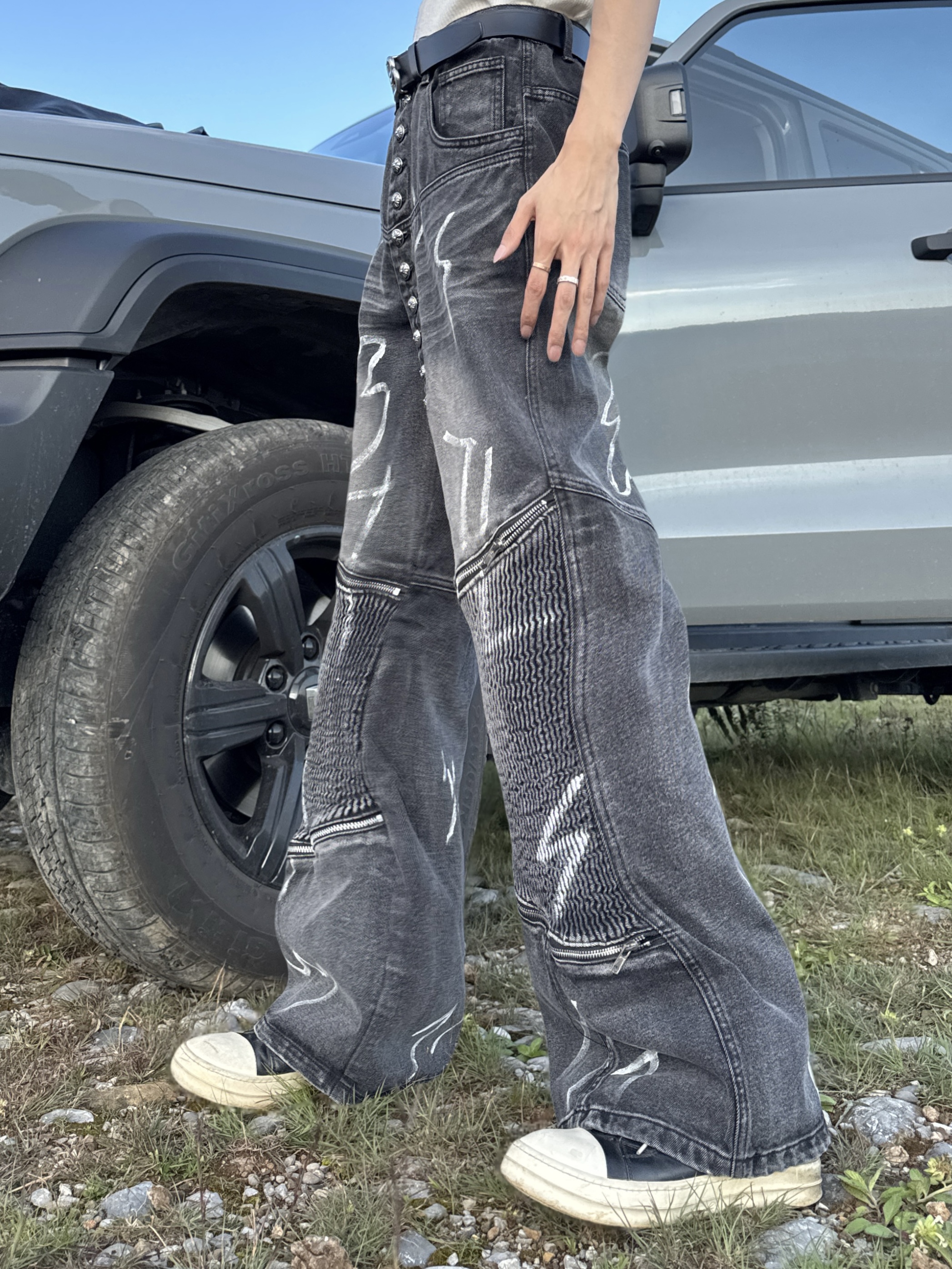 Hand-Paint Graffiti Metal Button Flare Denim Jeans WN20762