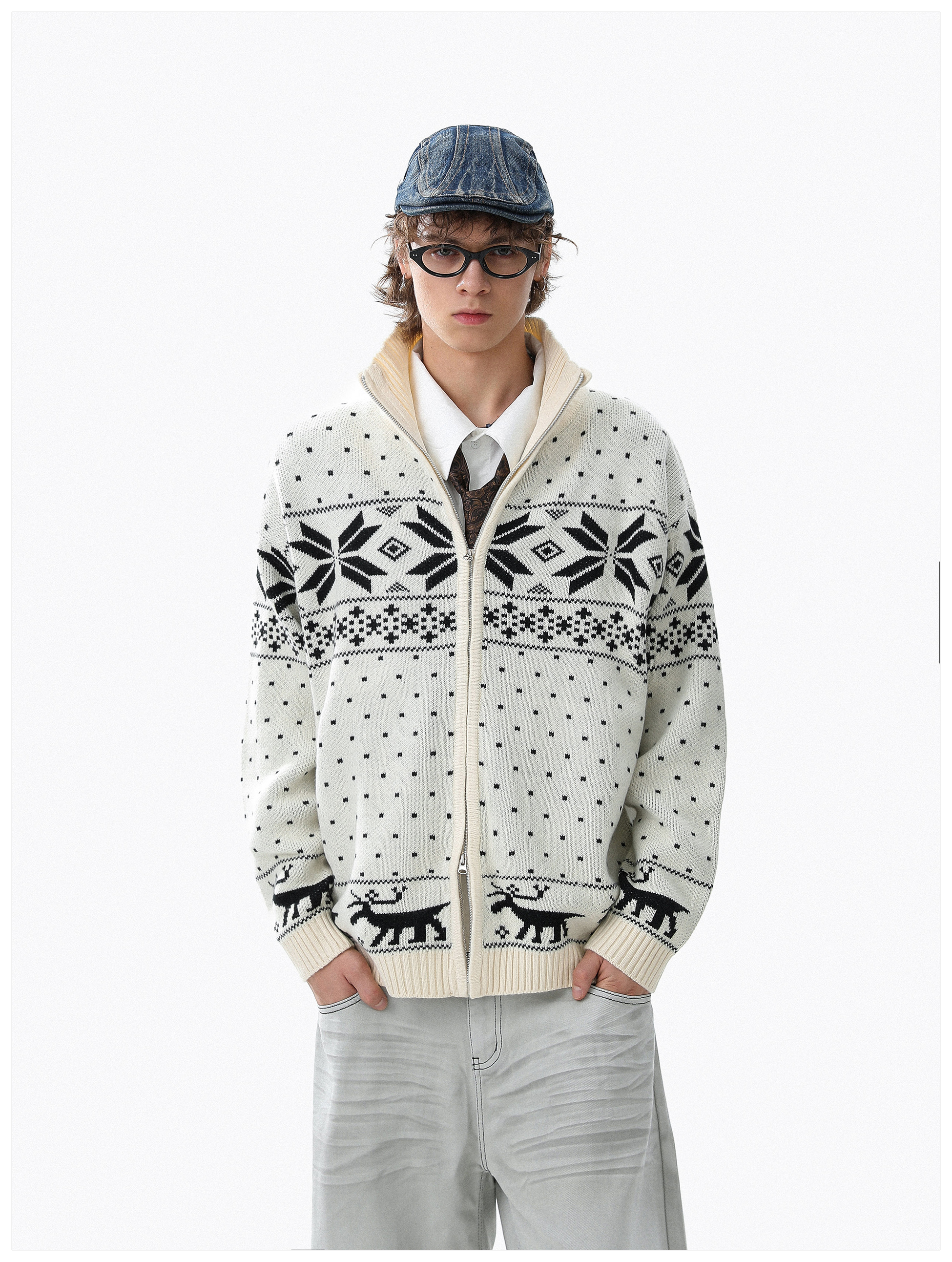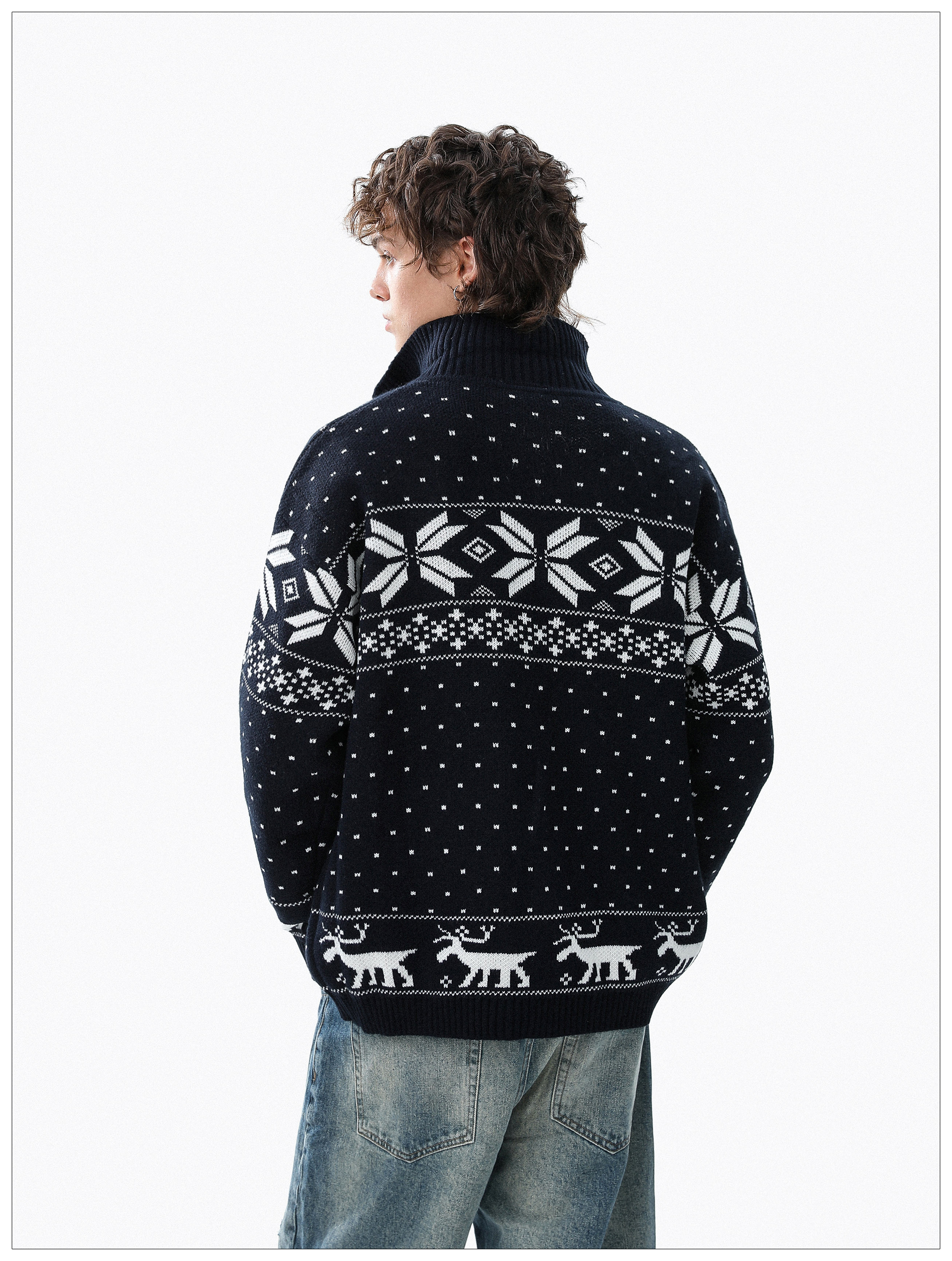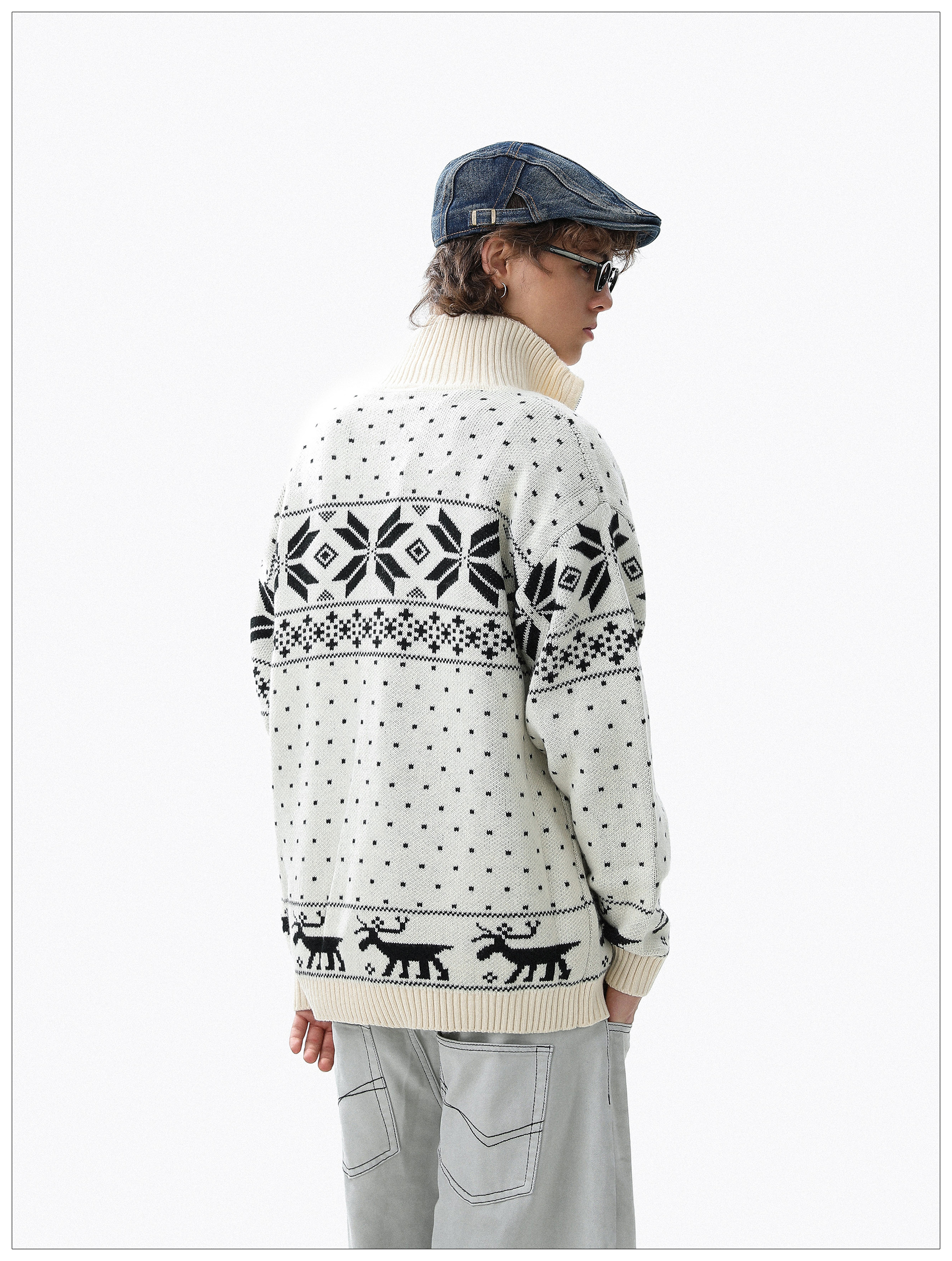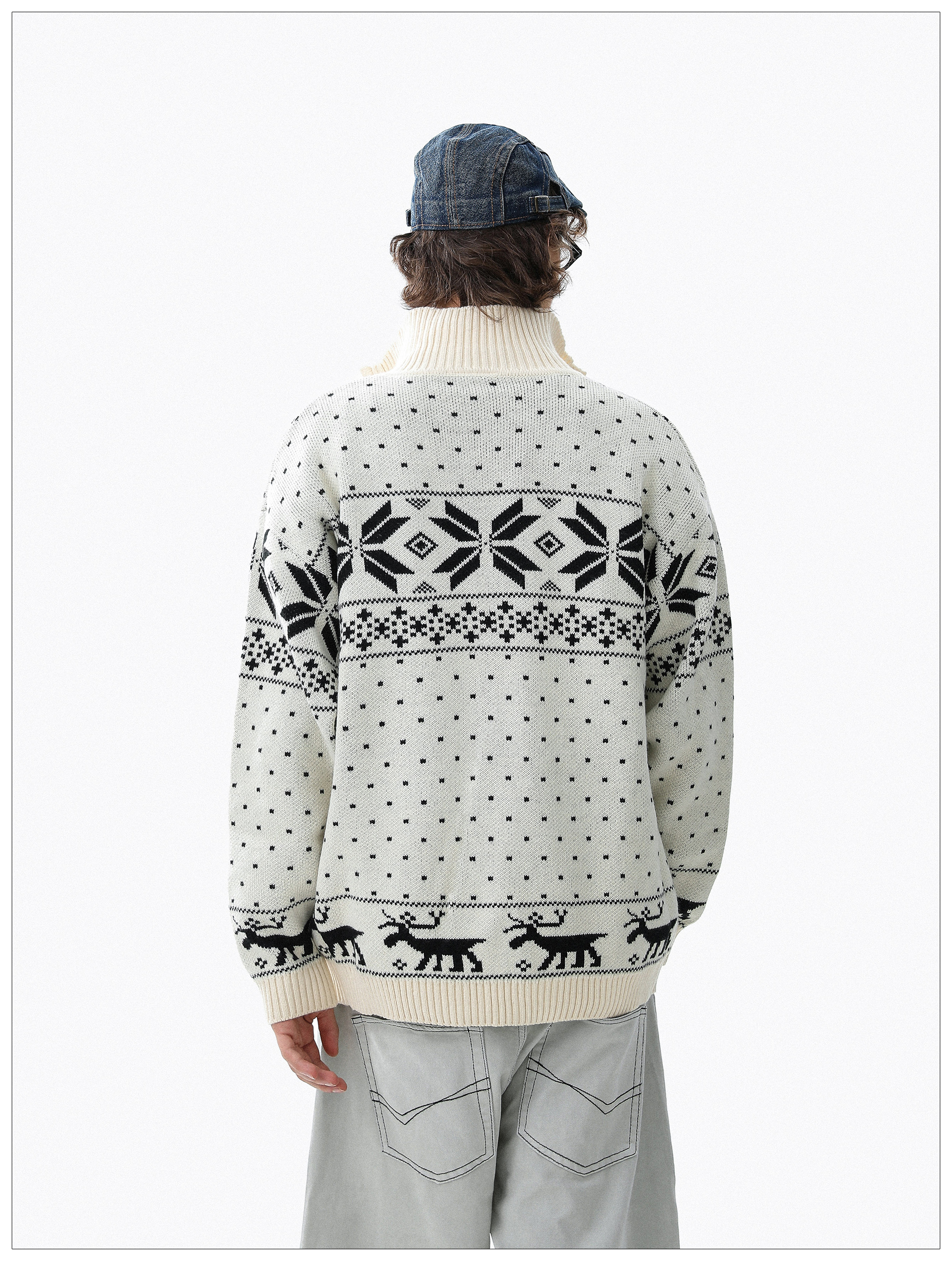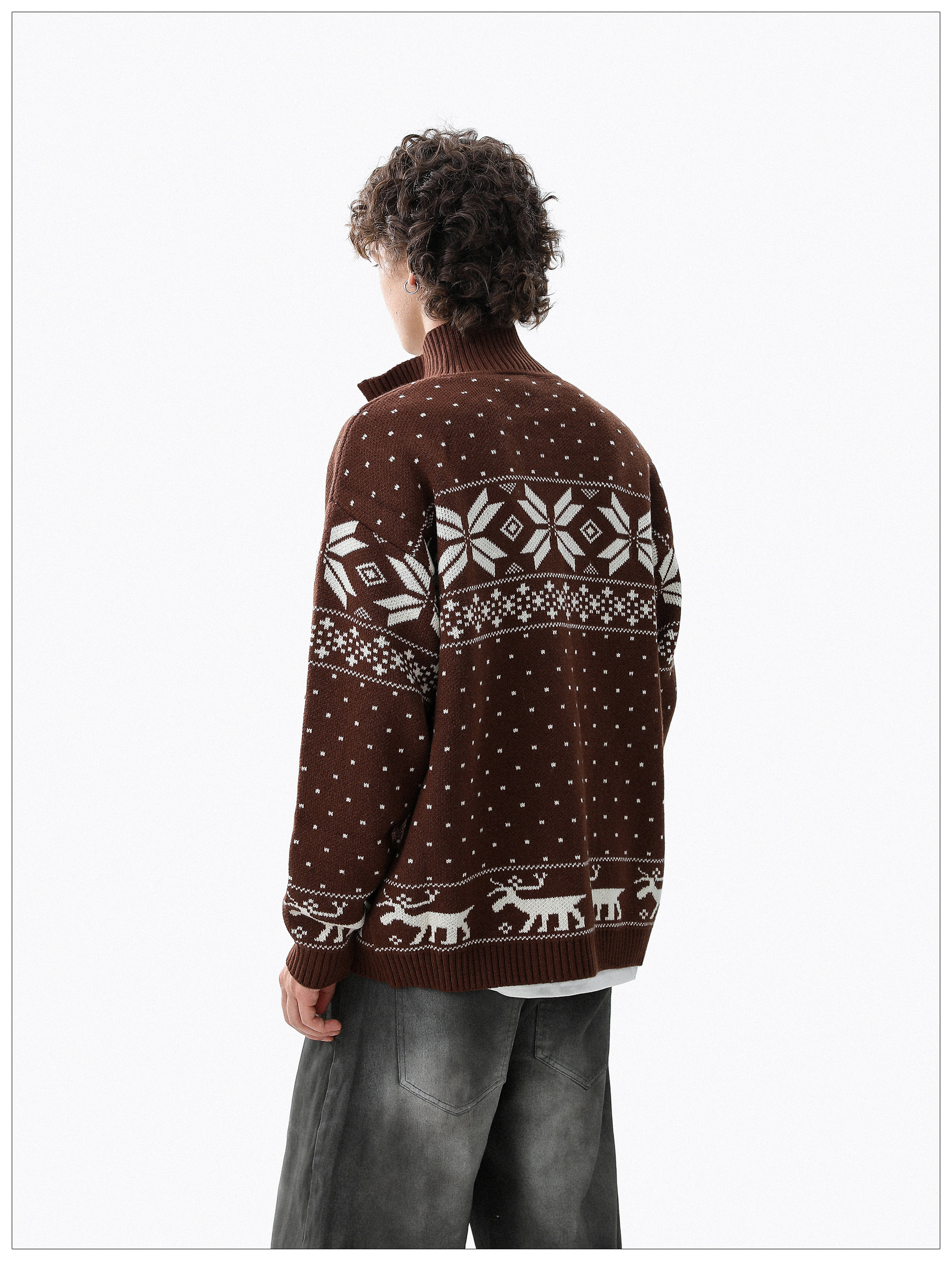 Snowflake Zipper Stand Neck Knit Sweater WN22102
