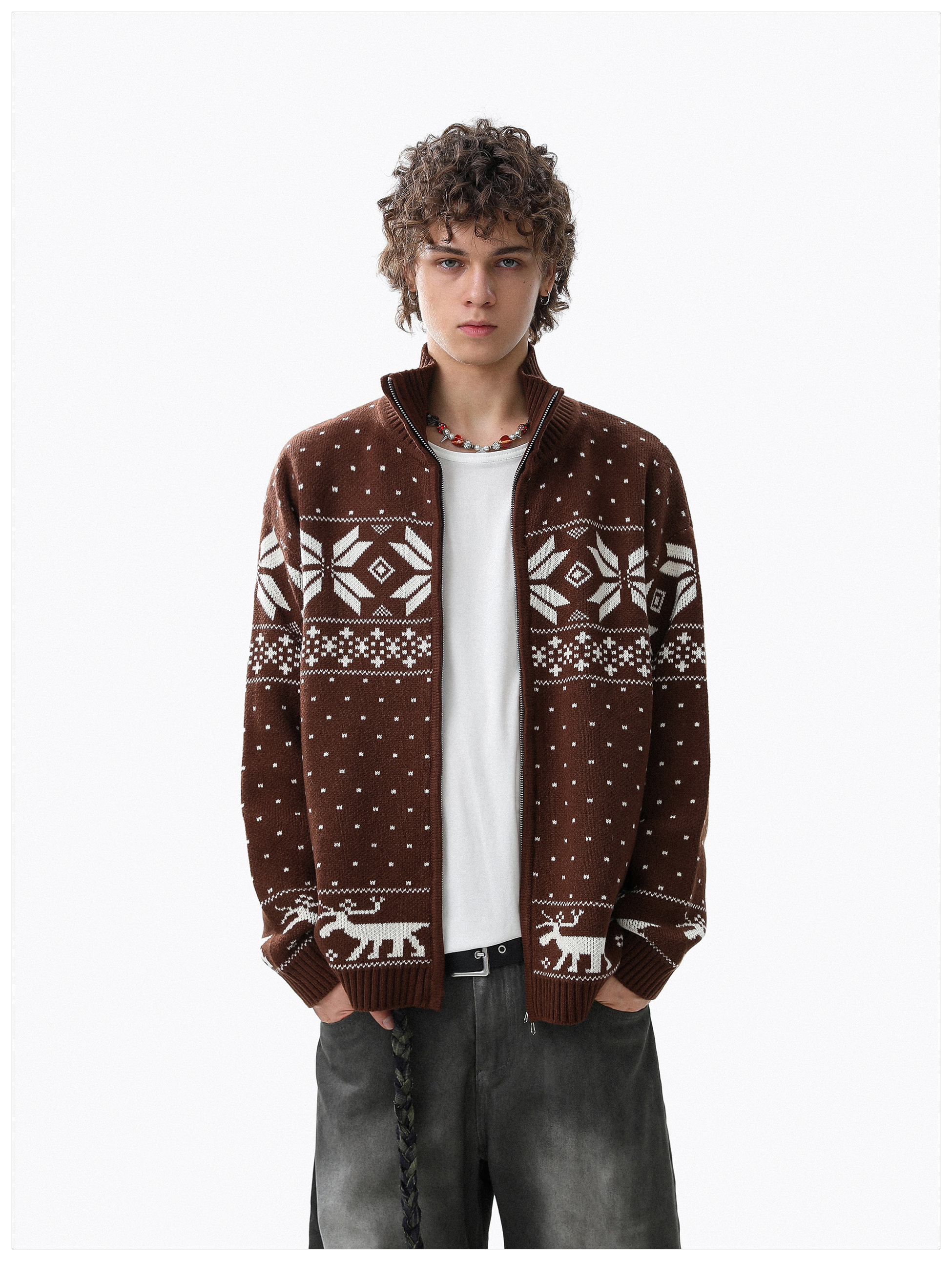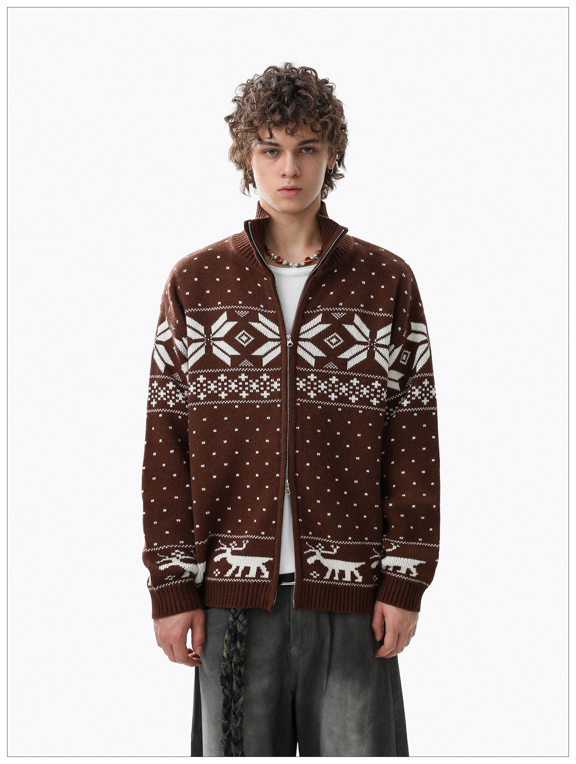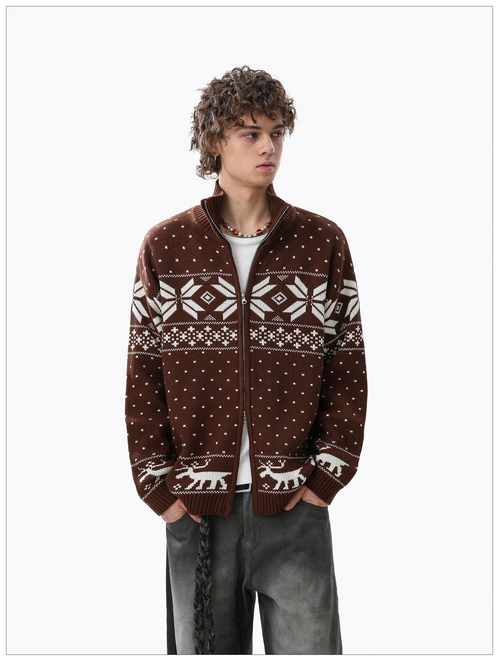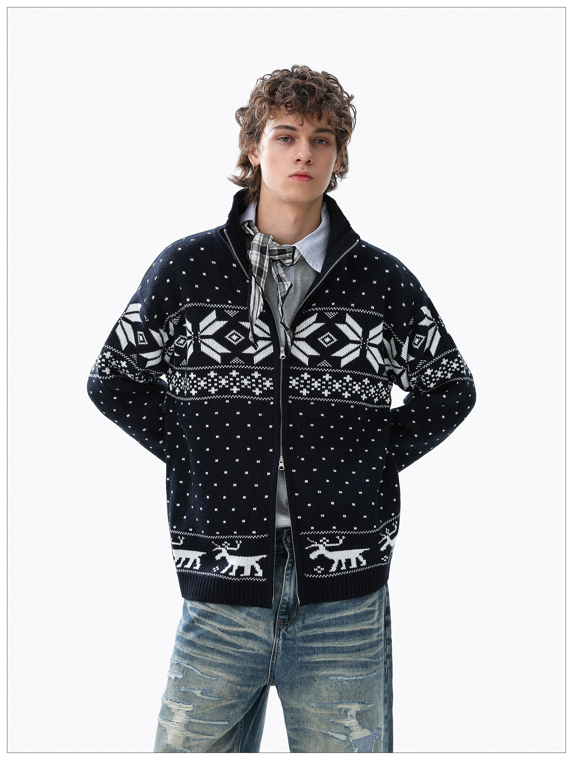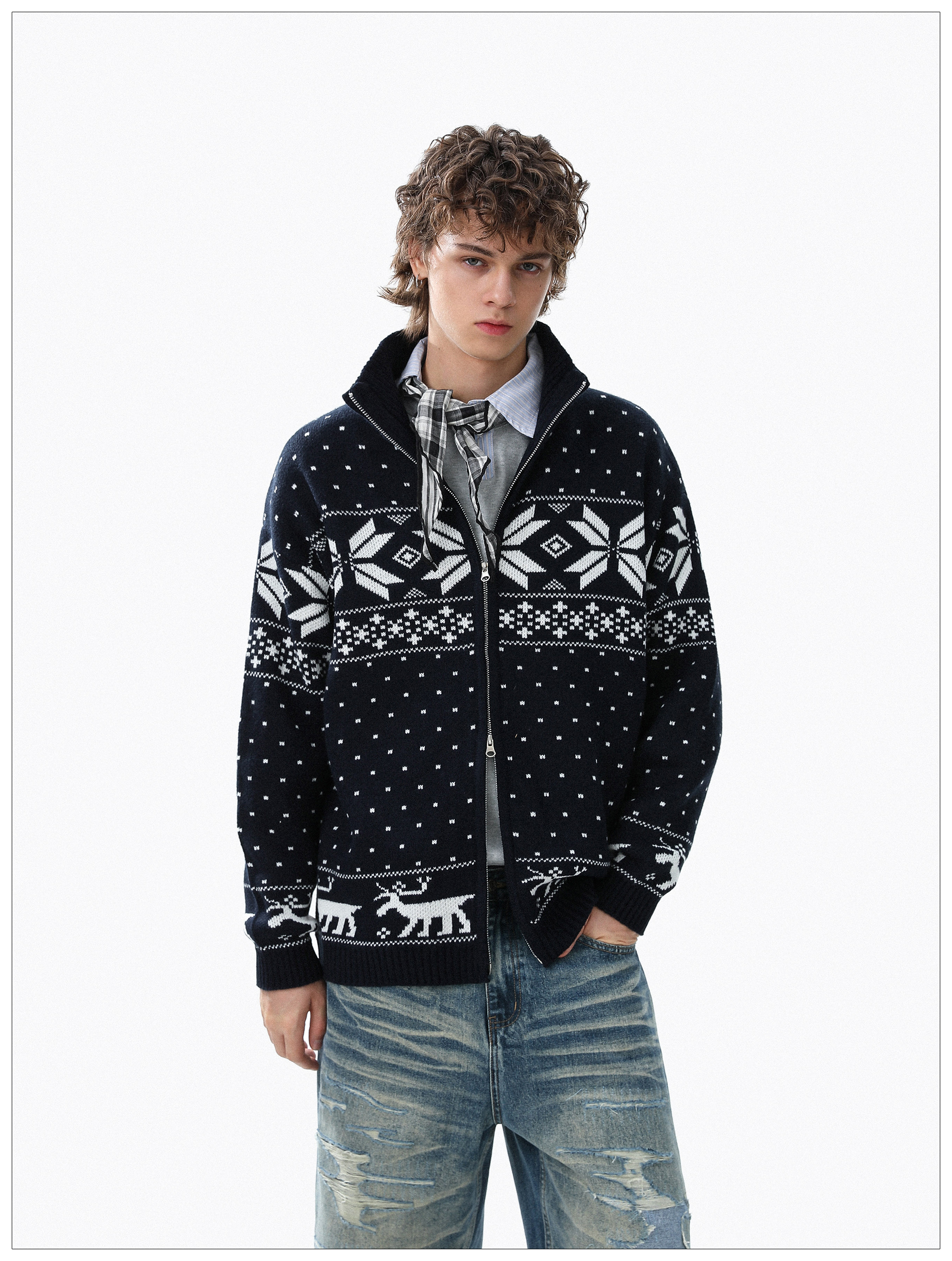 Snowflake Zipper Stand Neck Knit Sweater WN22102