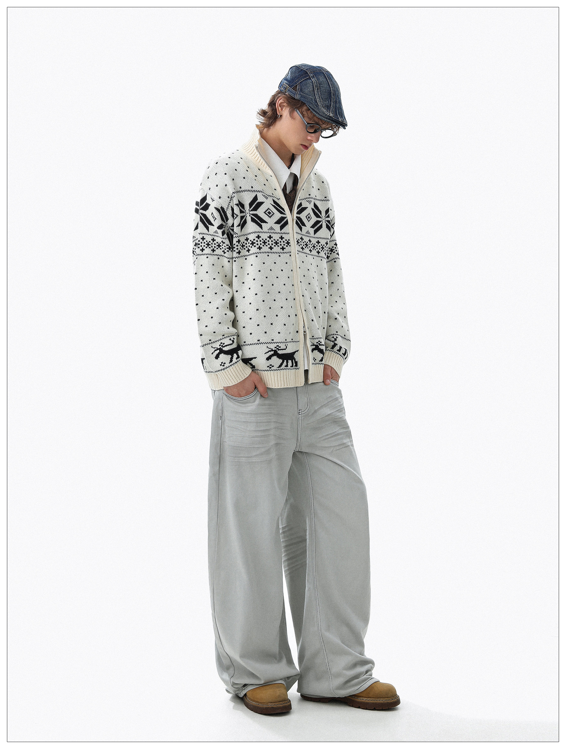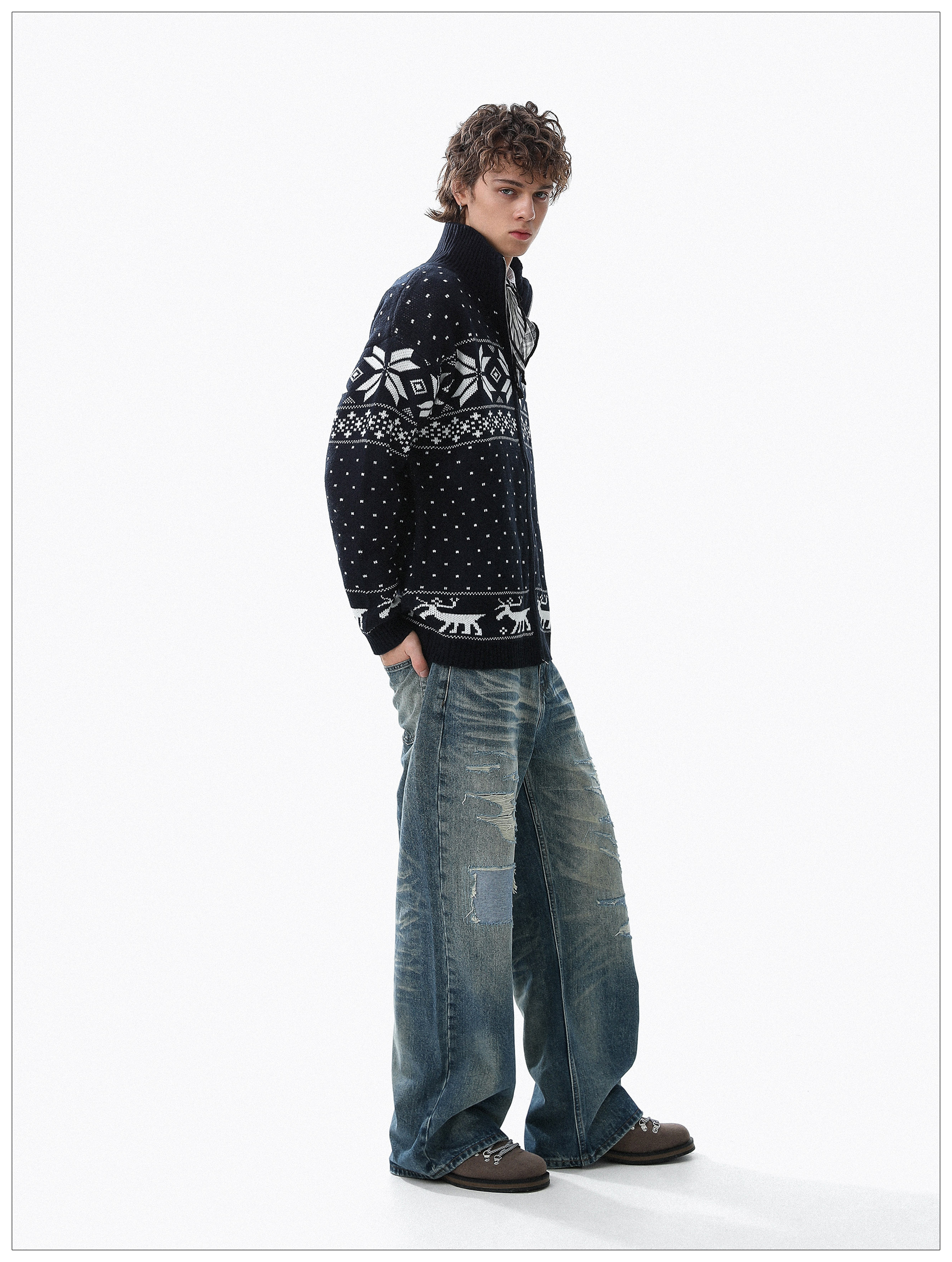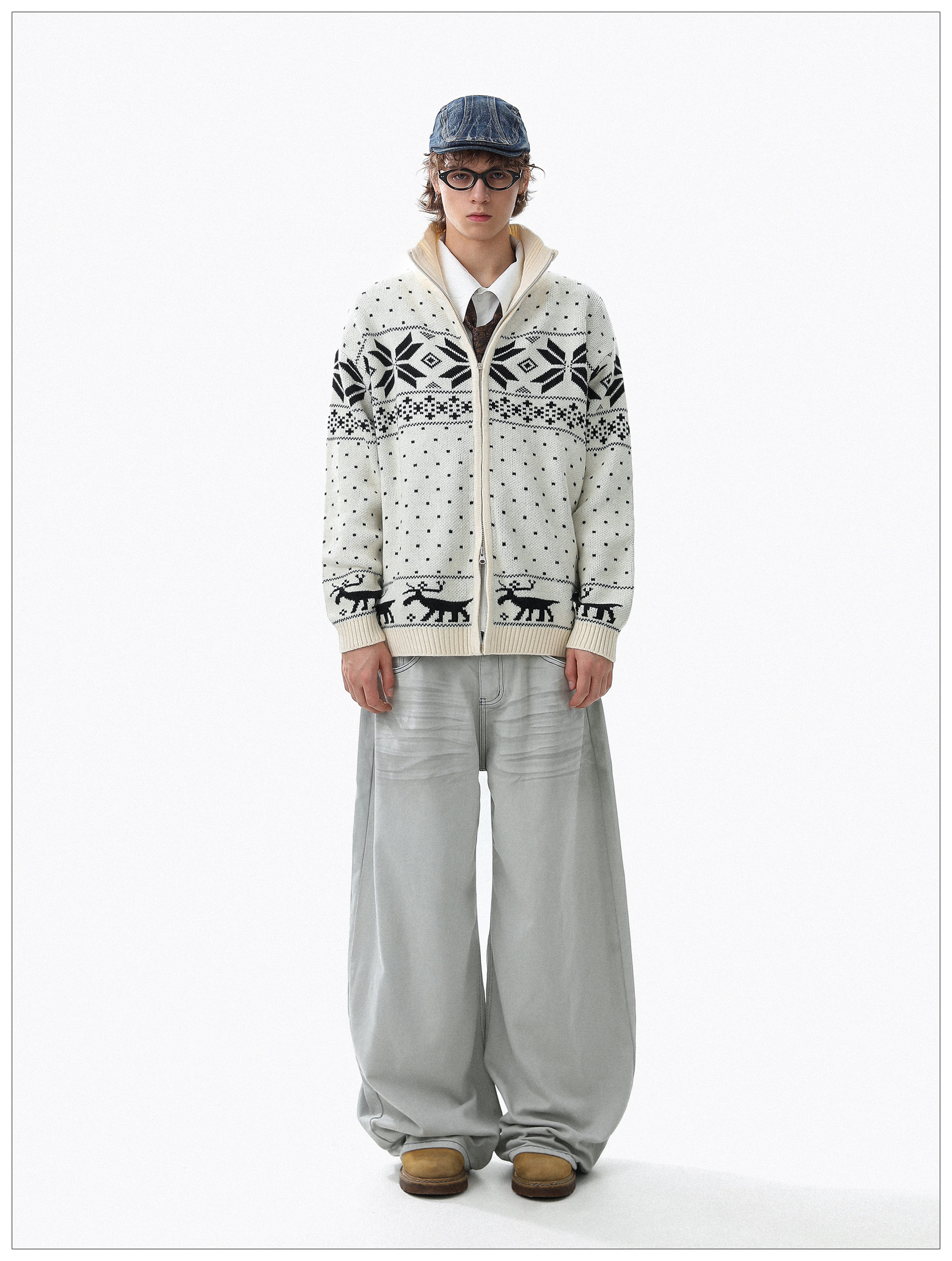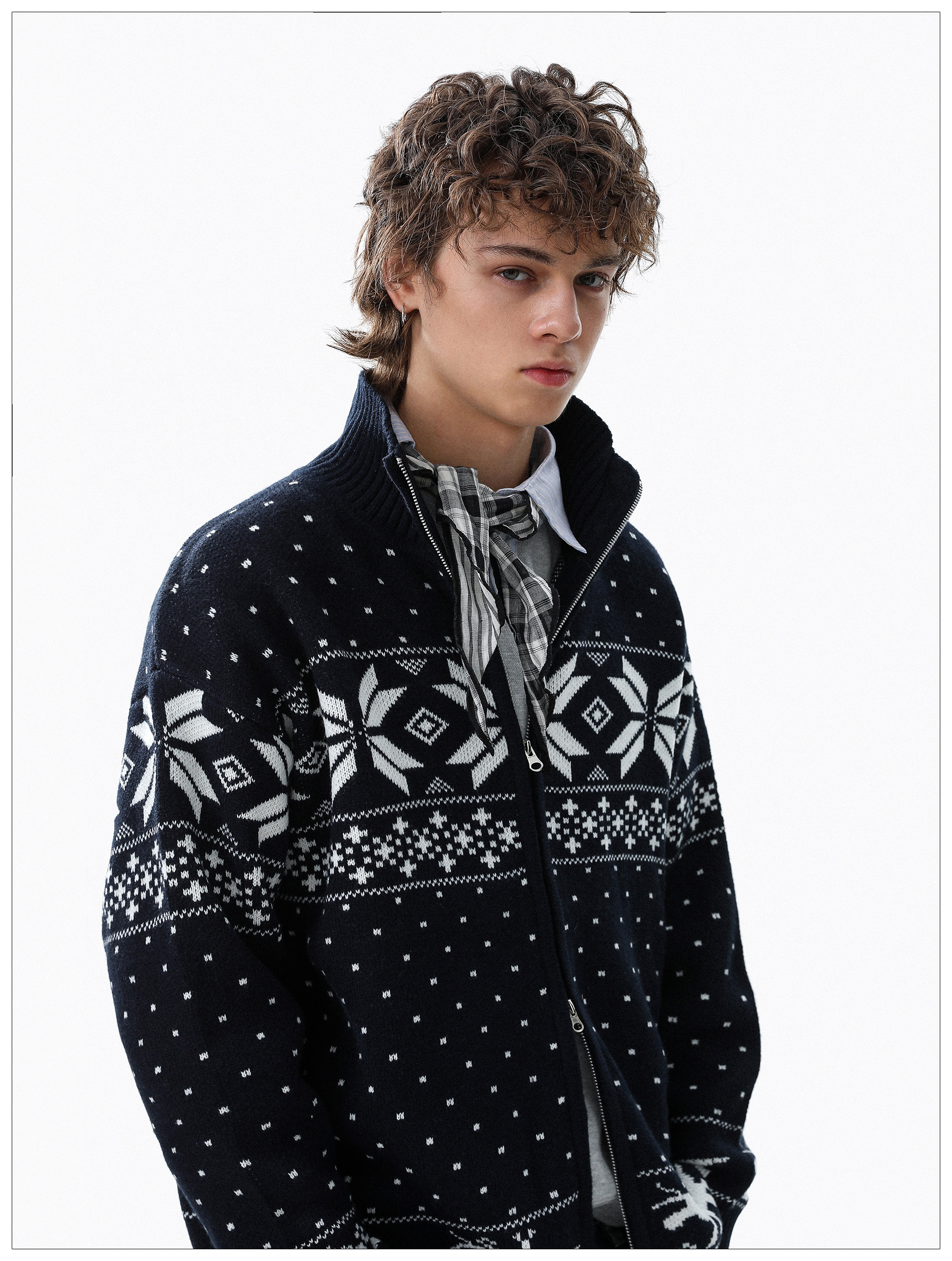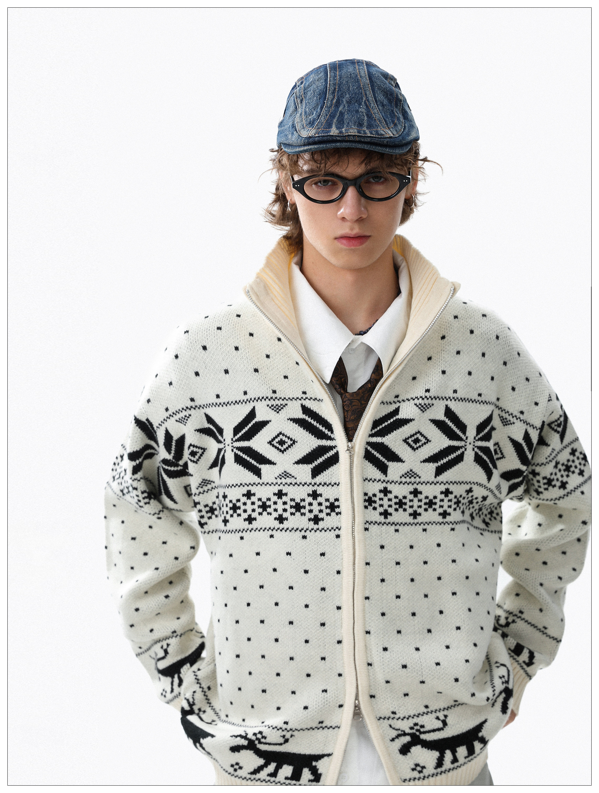 Snowflake Zipper Stand Neck Knit Sweater WN22102