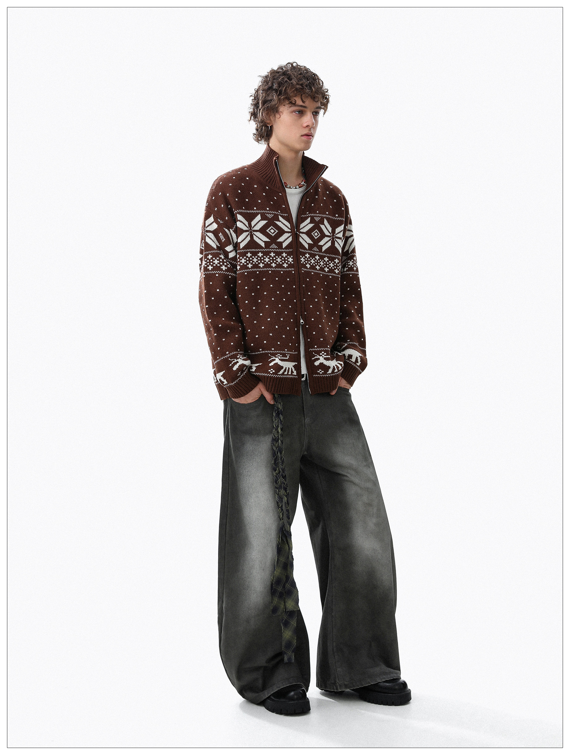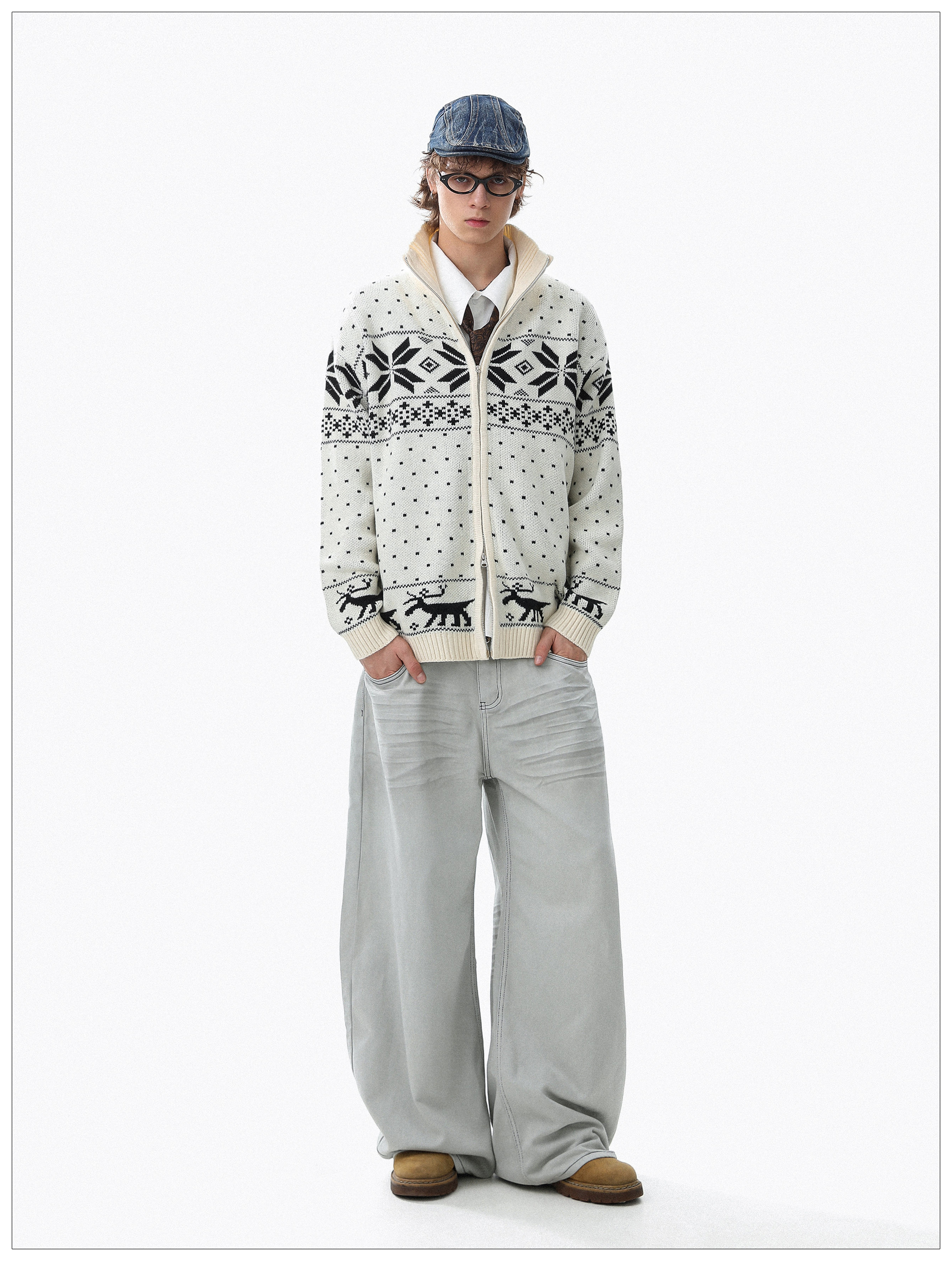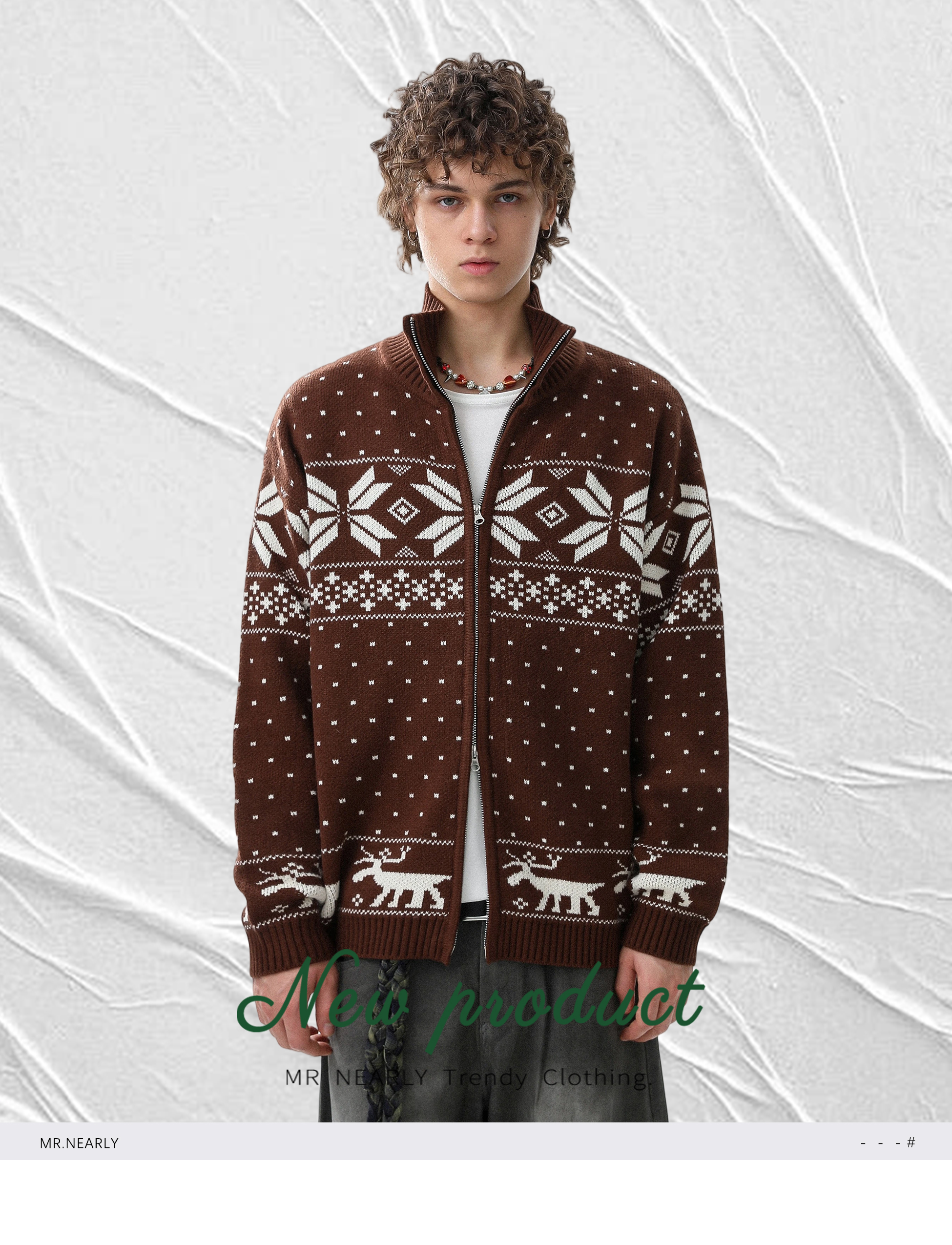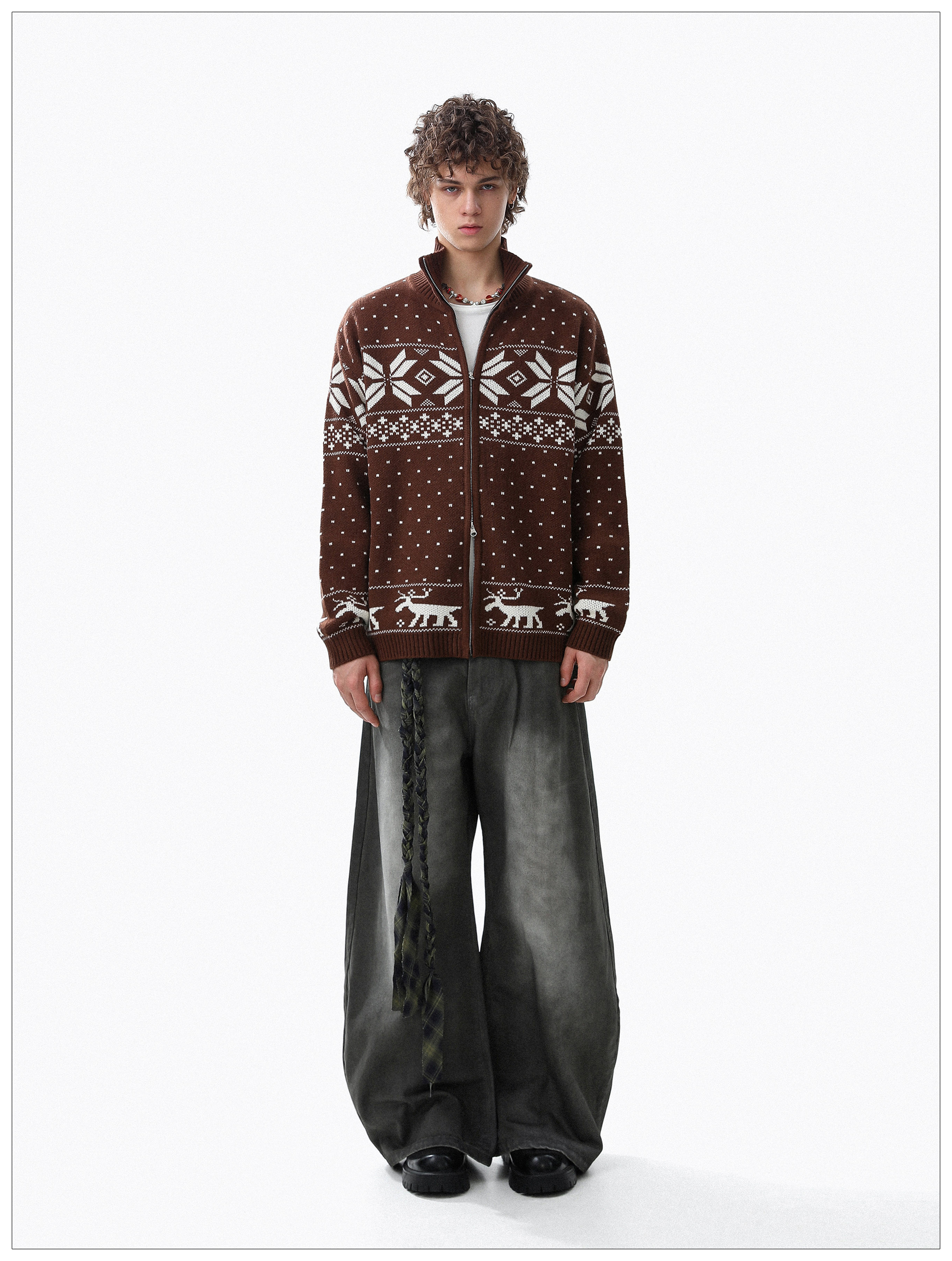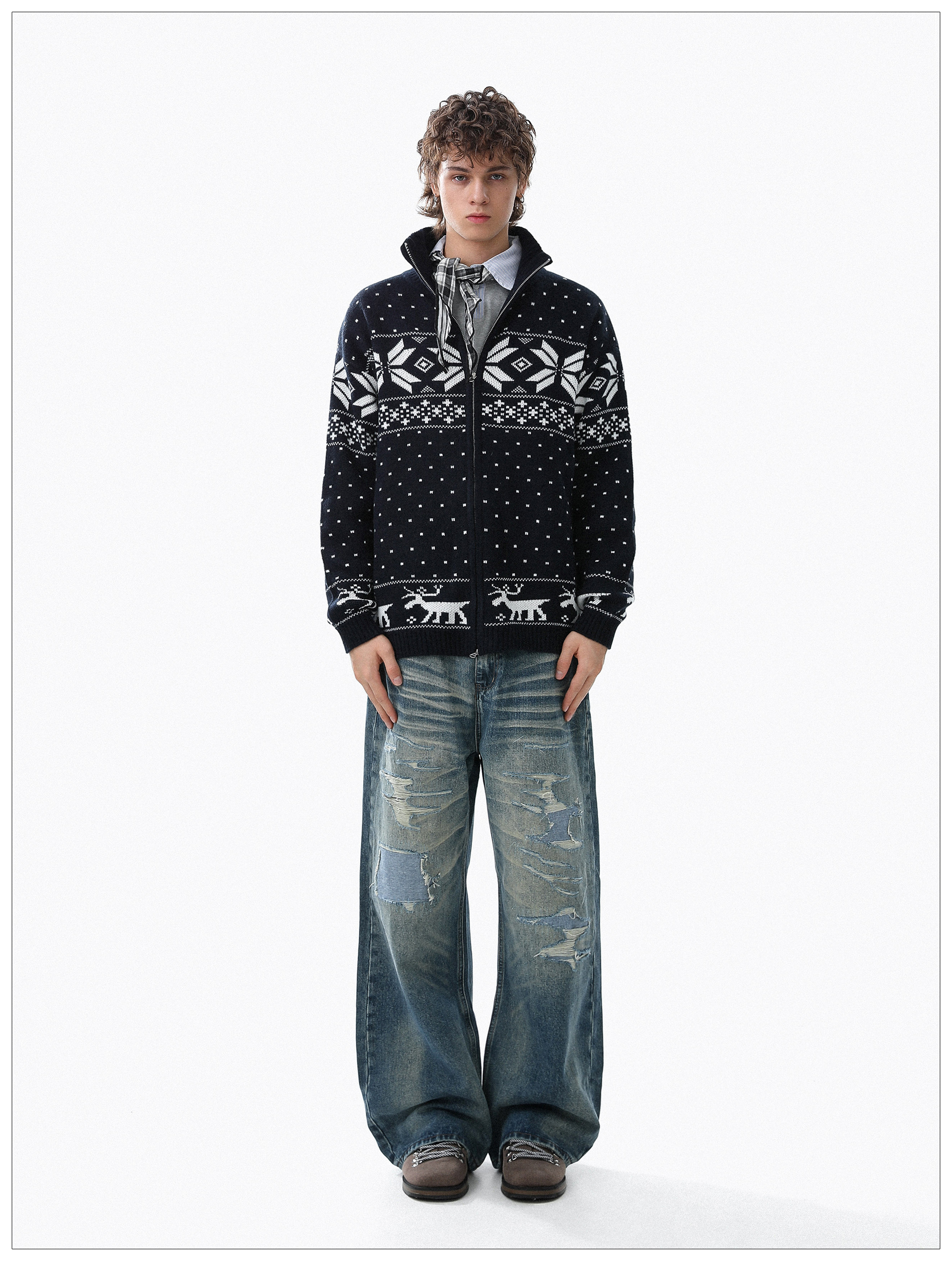 Snowflake Zipper Stand Neck Knit Sweater WN22102