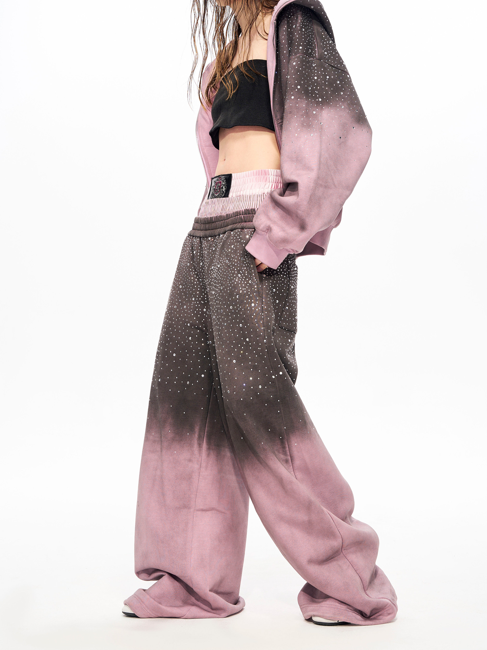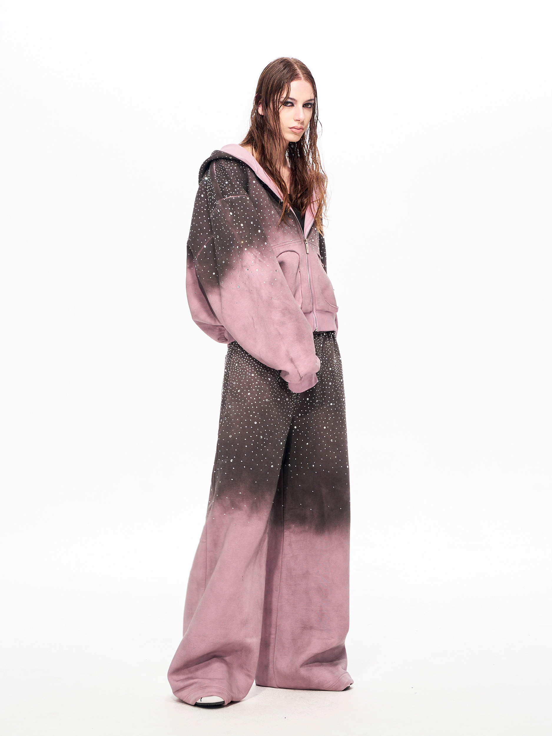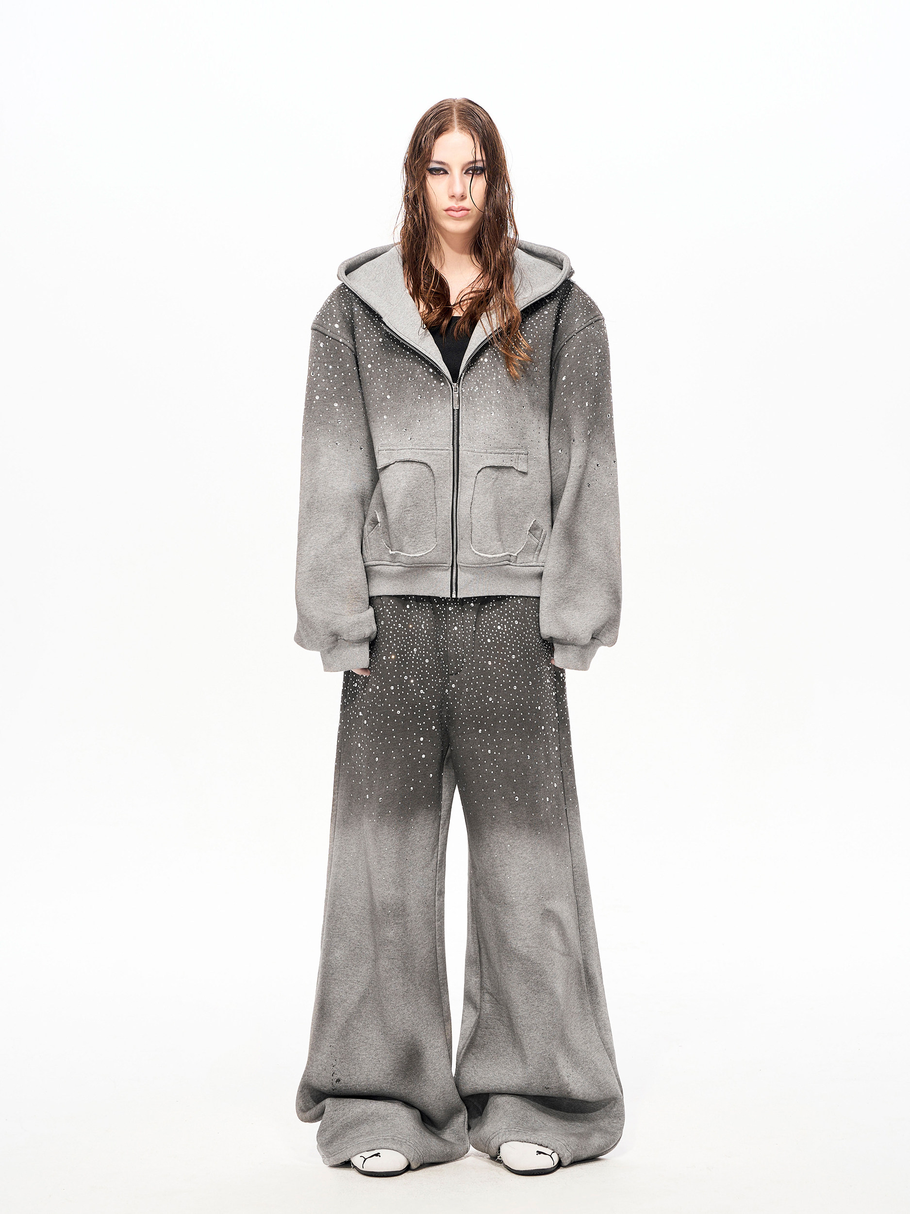 Rhinestone Fake Fur Lining Hoodie & Sweat Pants Setup WN22149