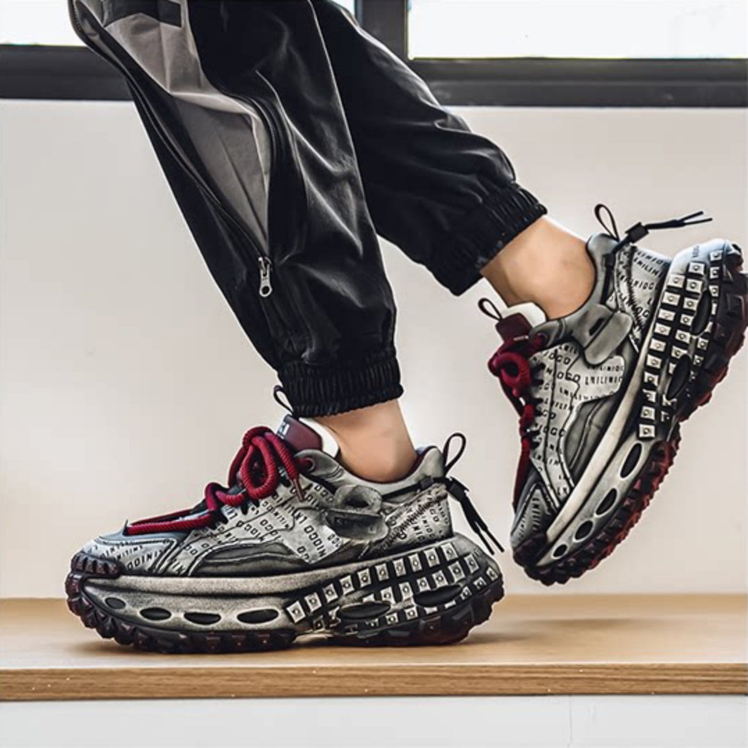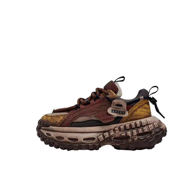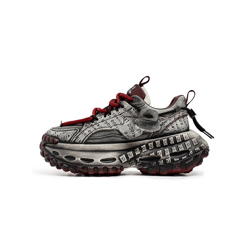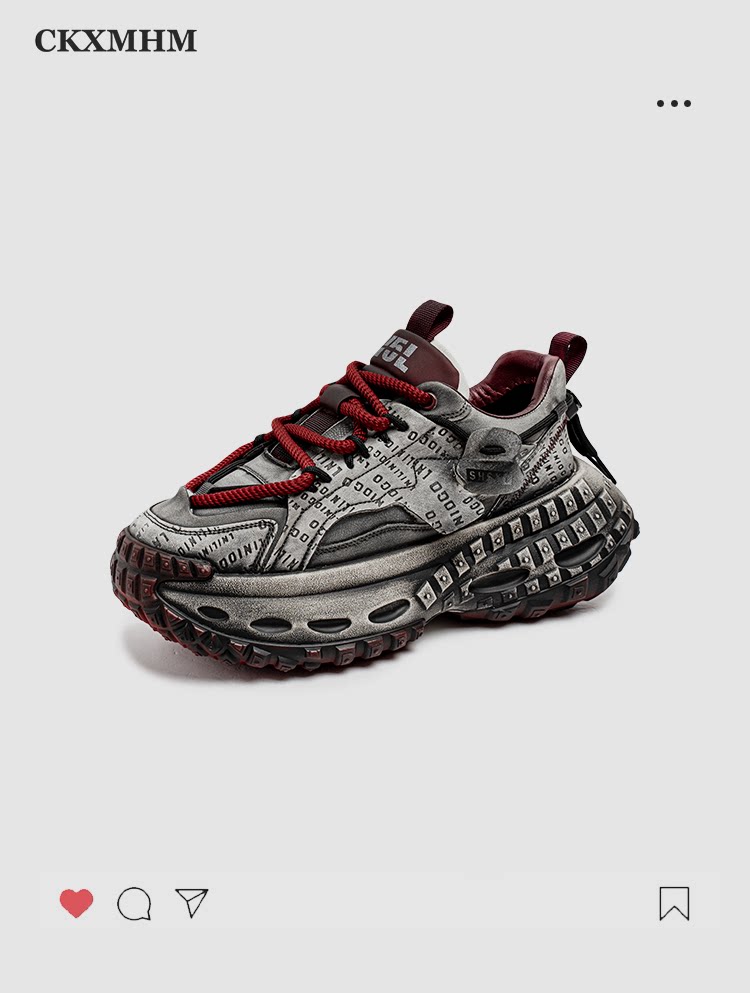 Studs Letter Print Chunky Lace-Up Sneakers WN23342