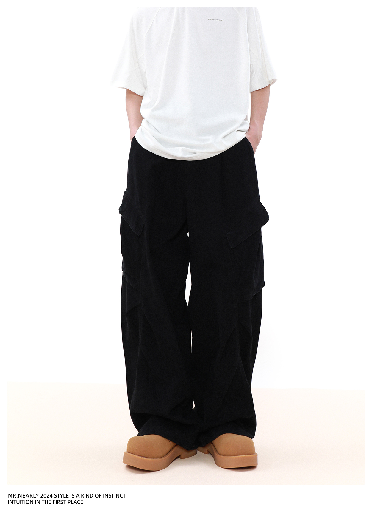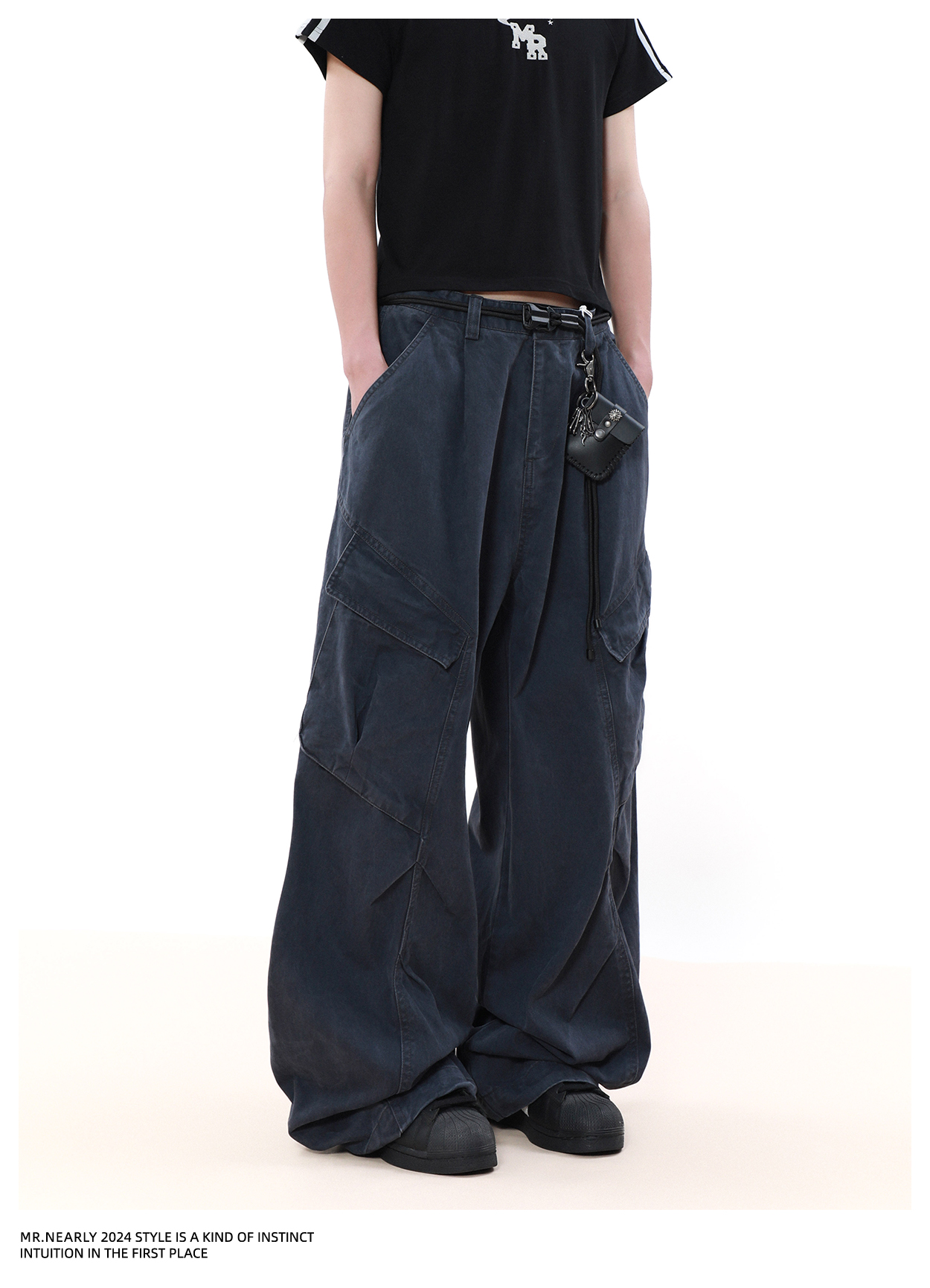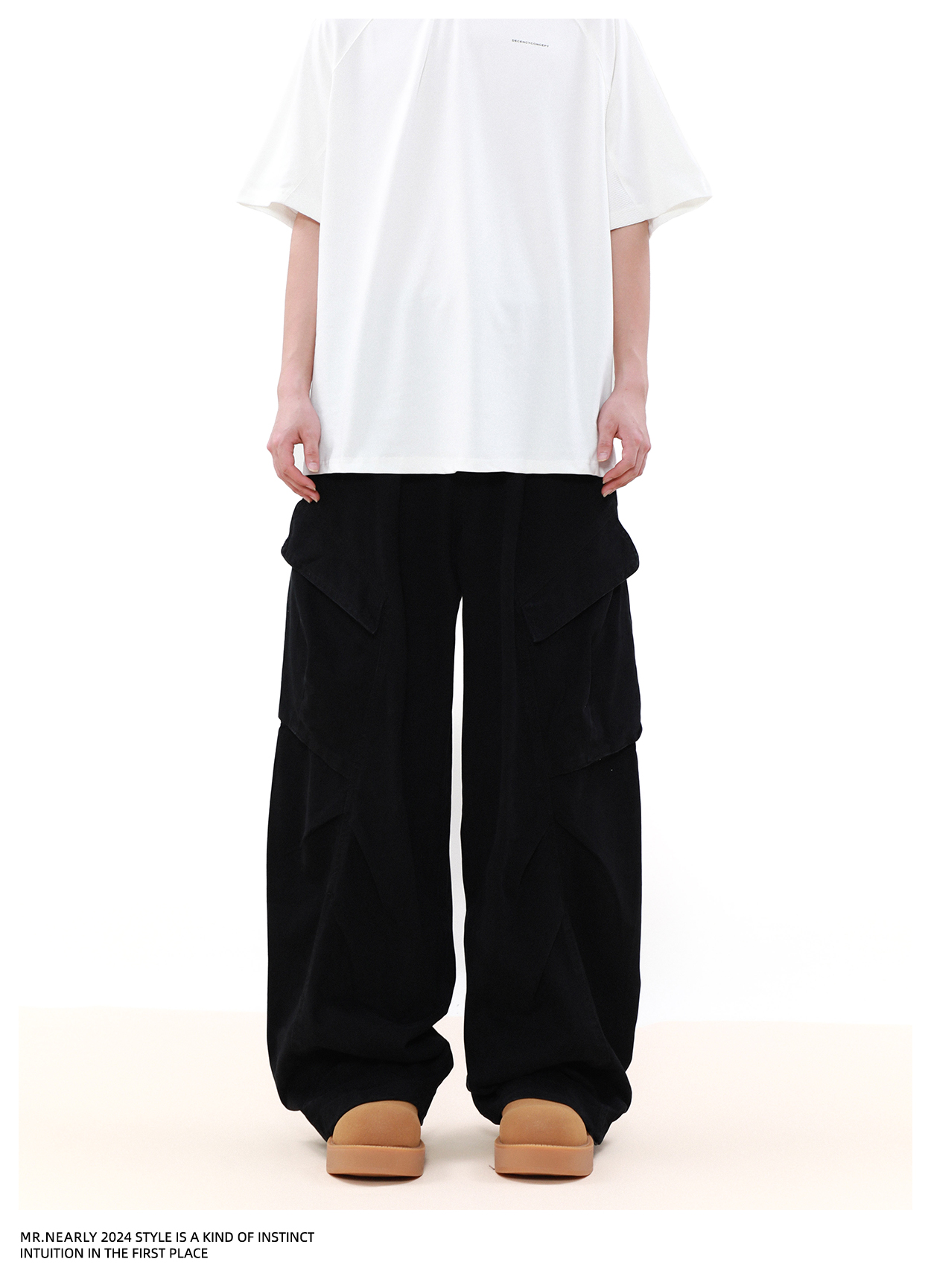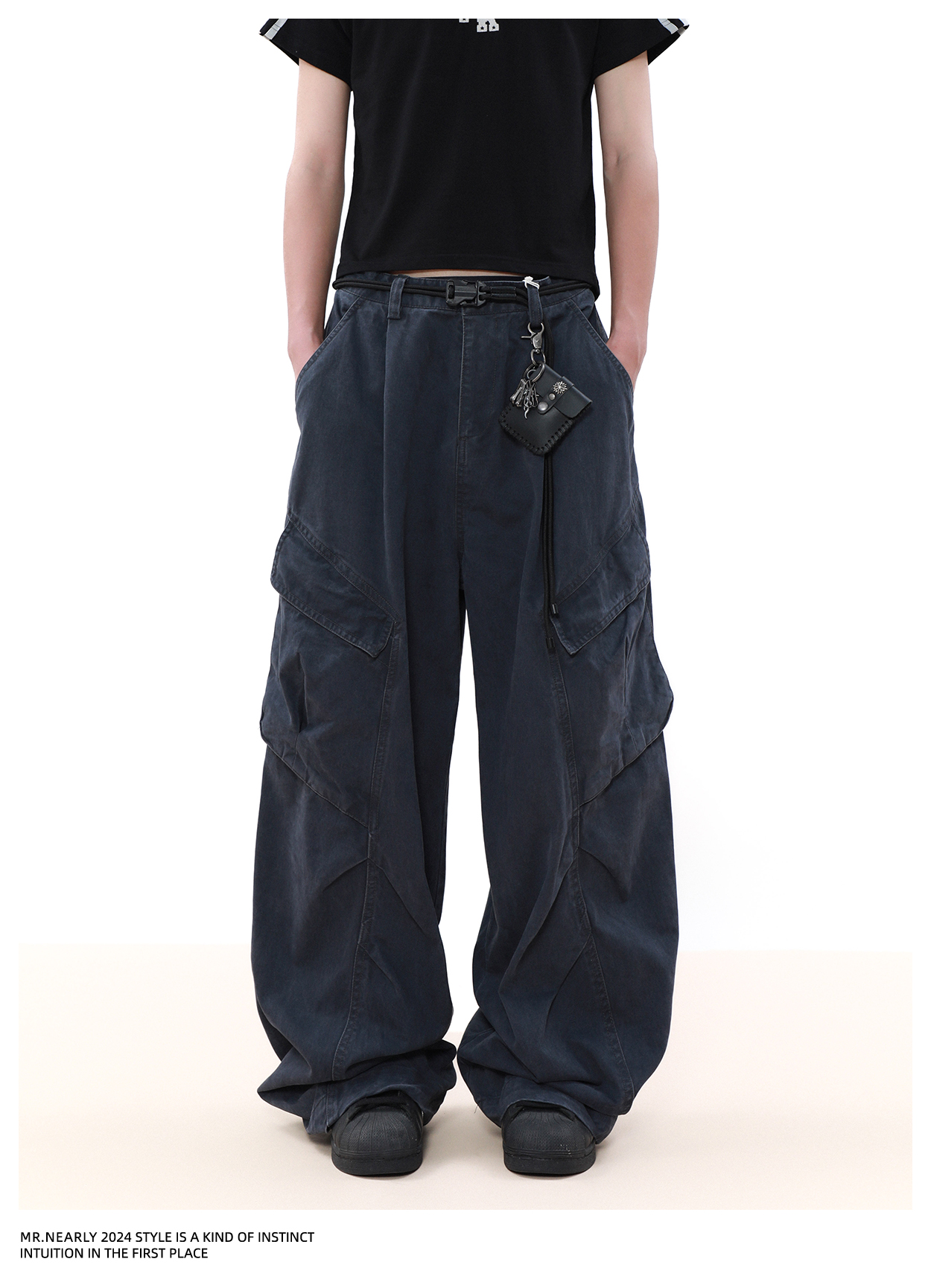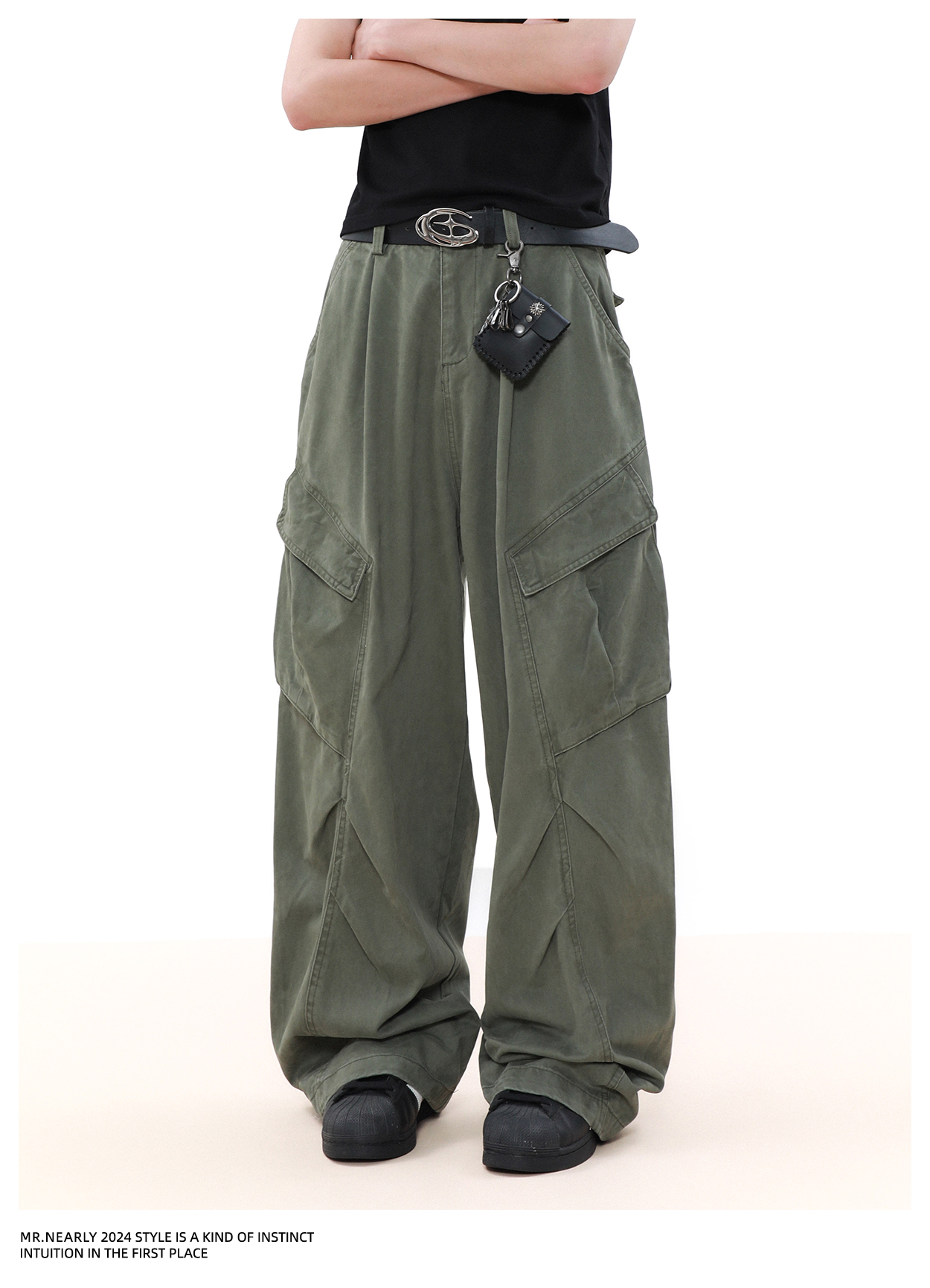 Pleated Design Wide Leg Cargo Pants WN7572