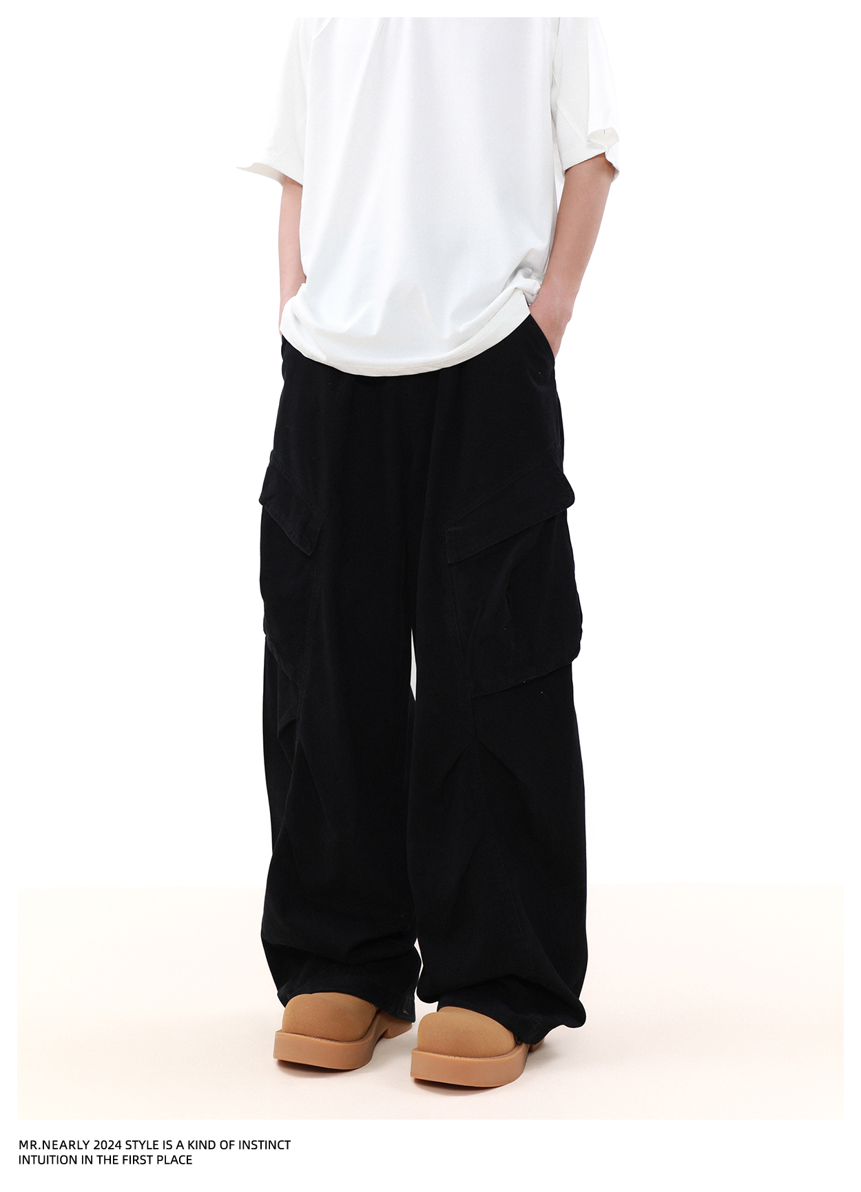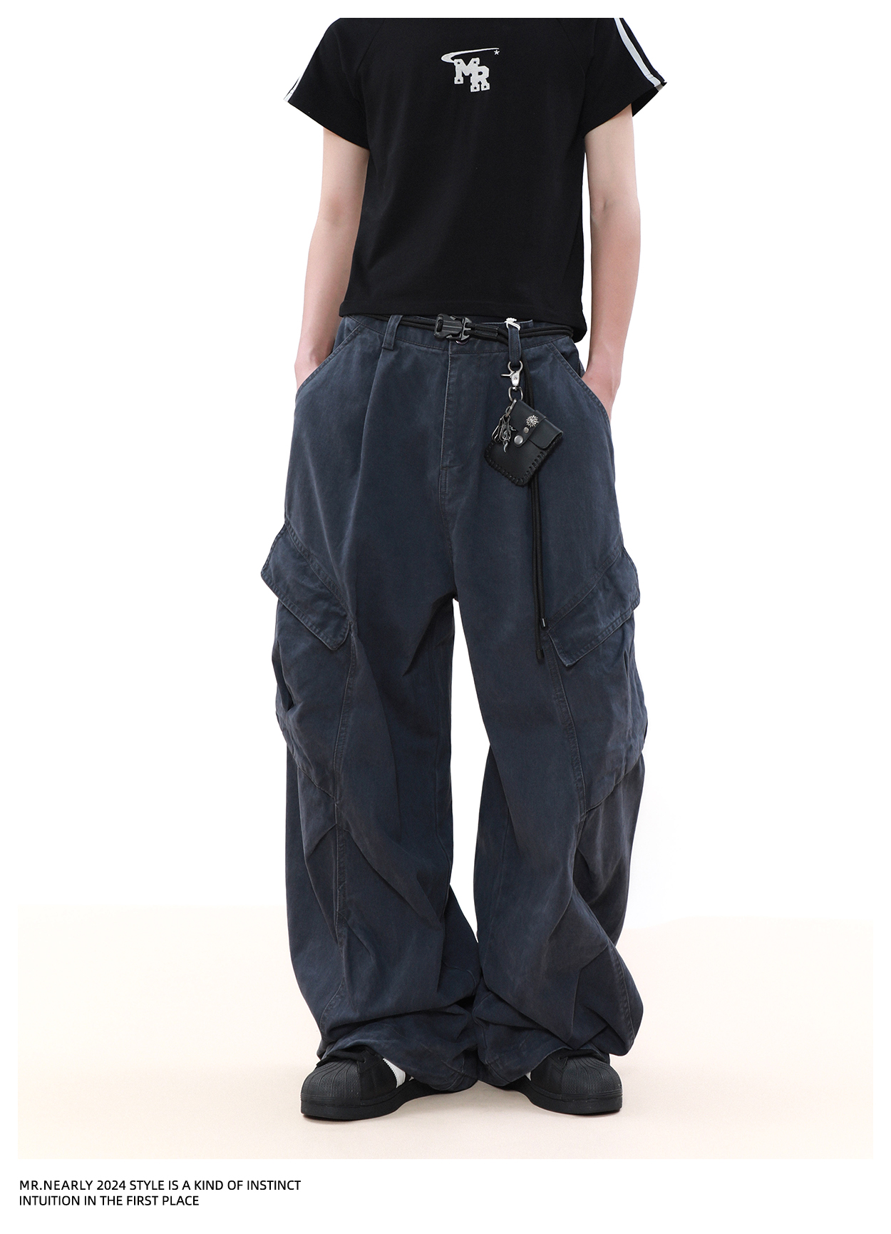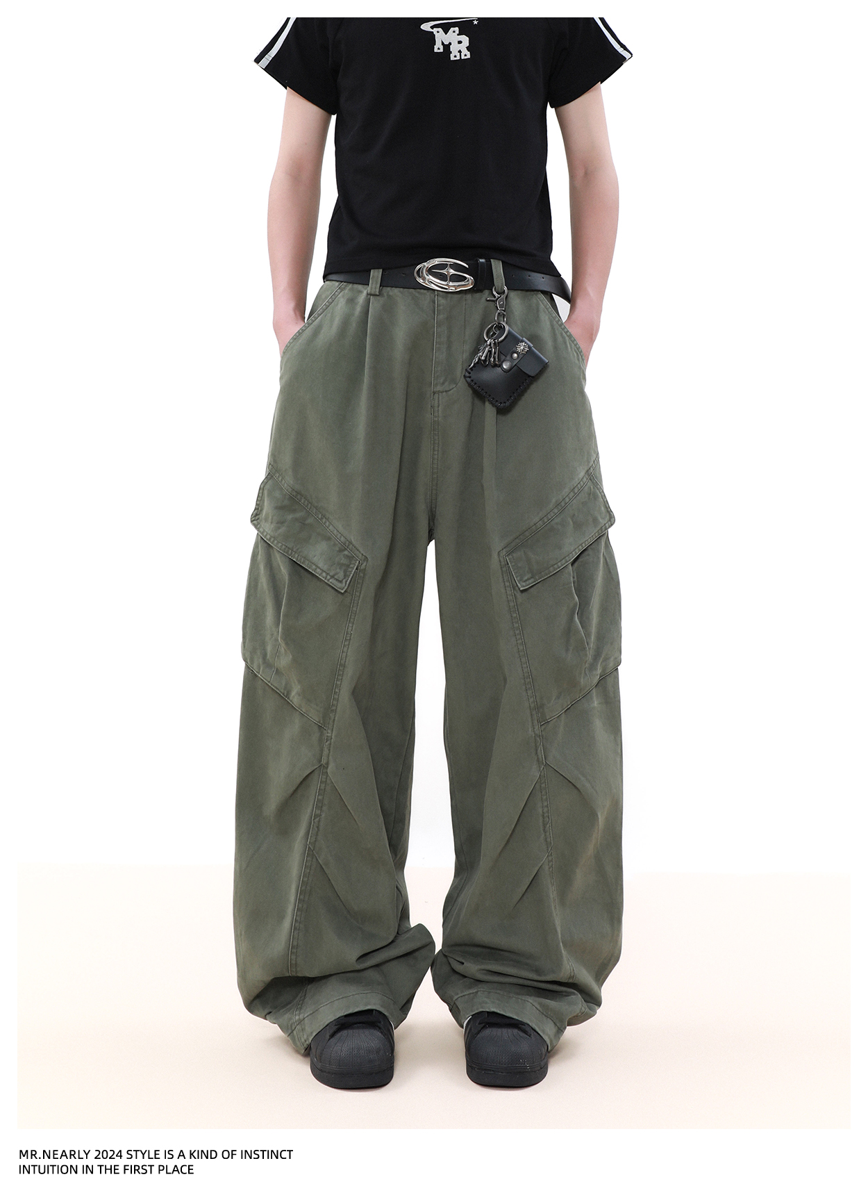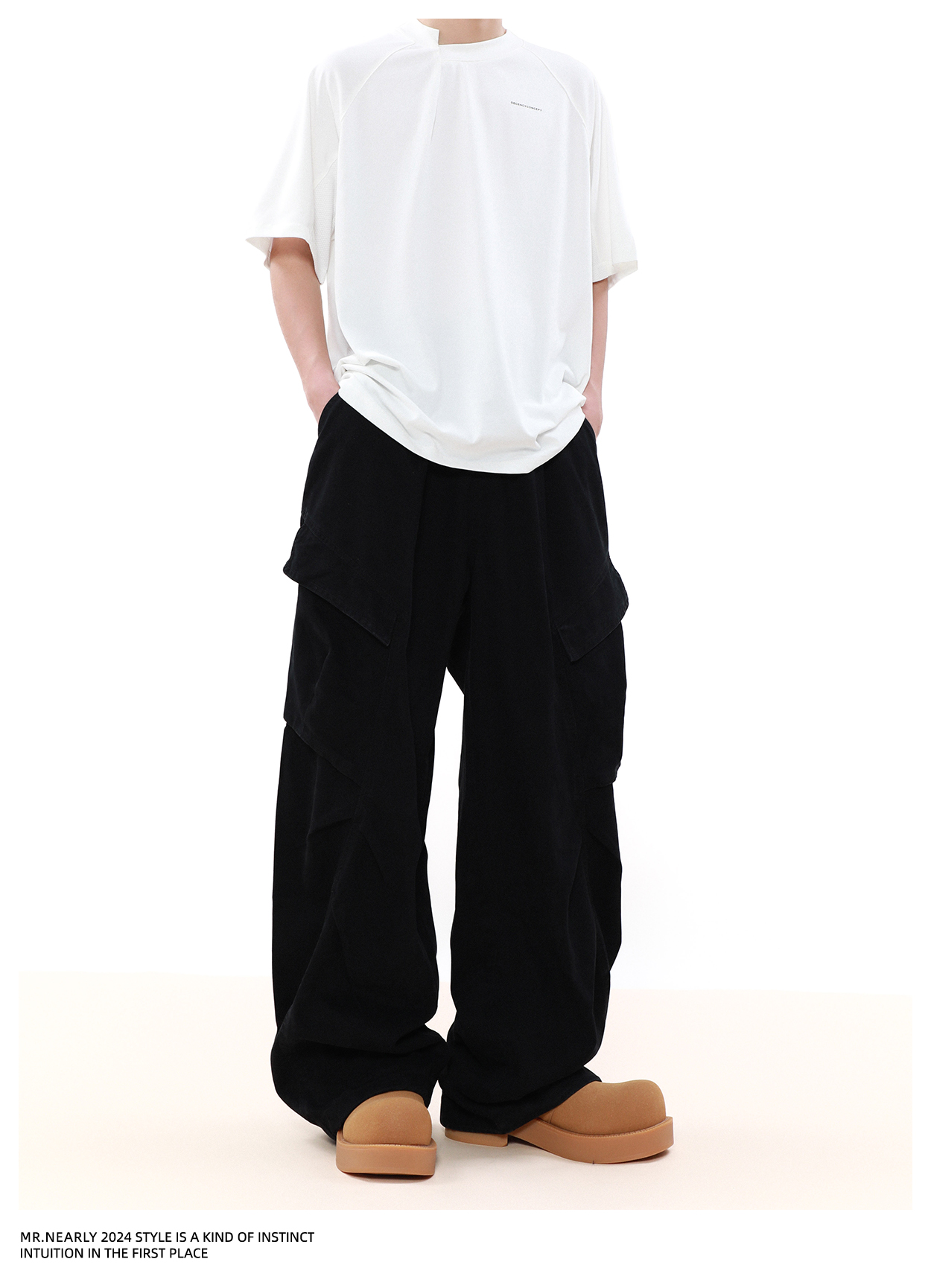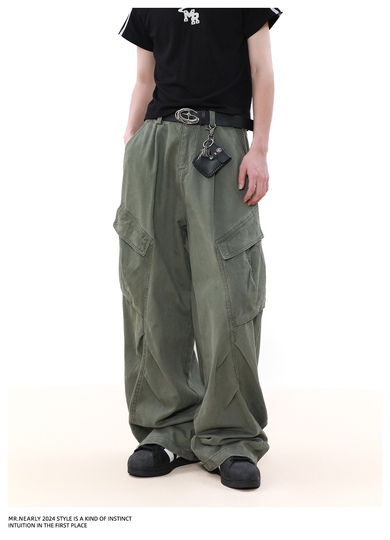 Pleated Design Wide Leg Cargo Pants WN7572