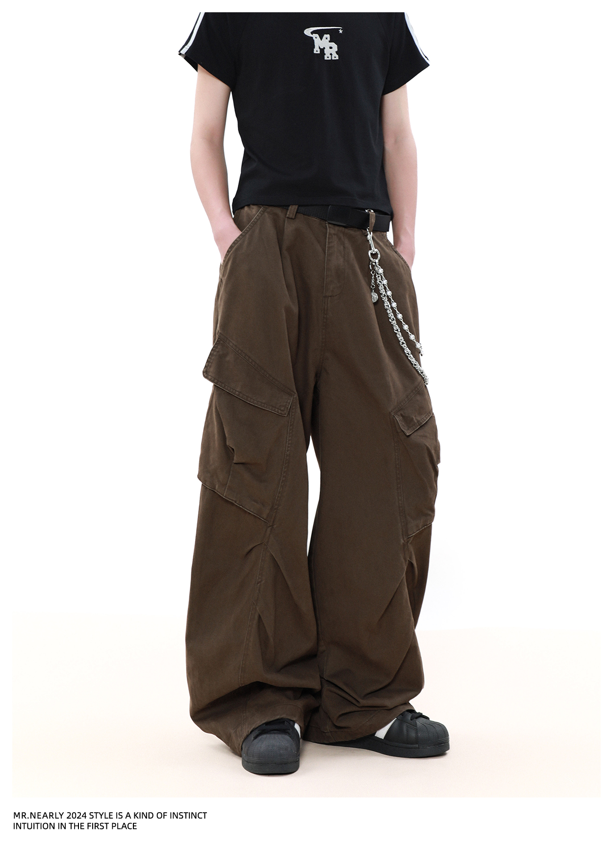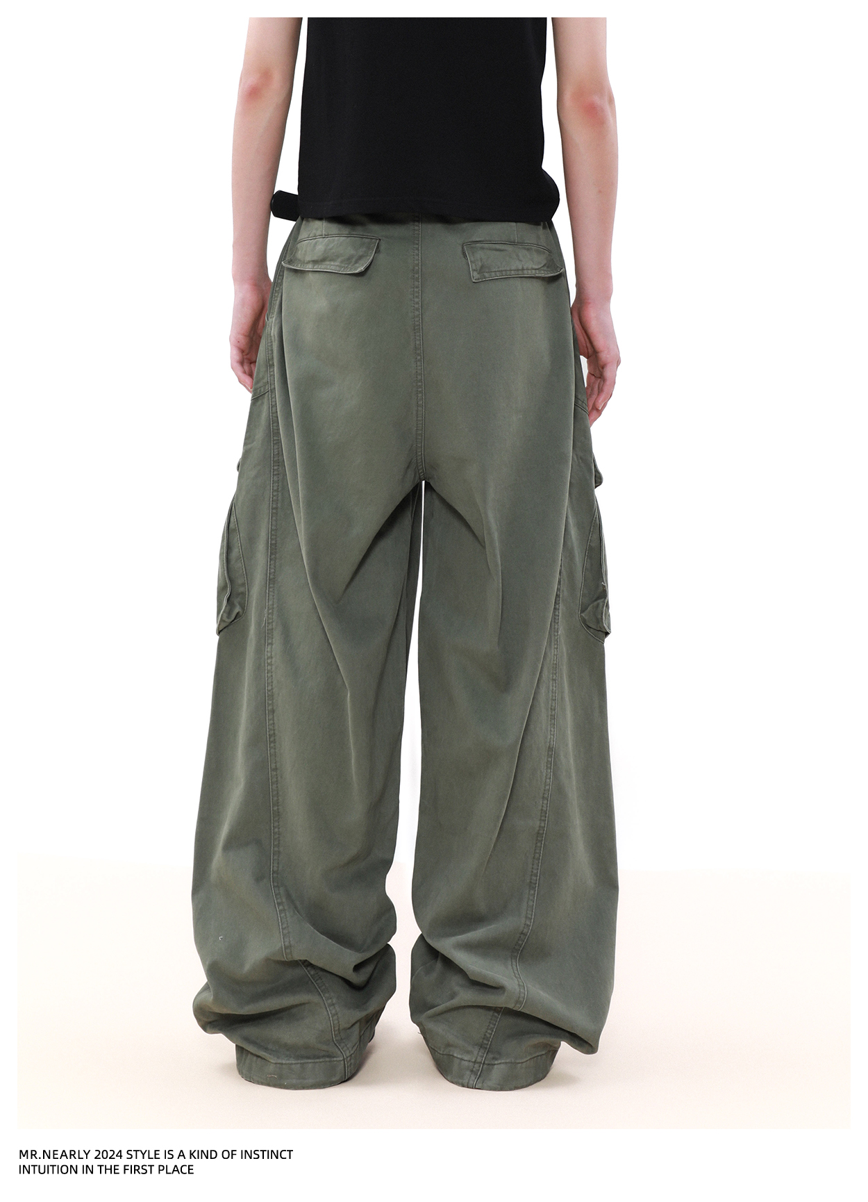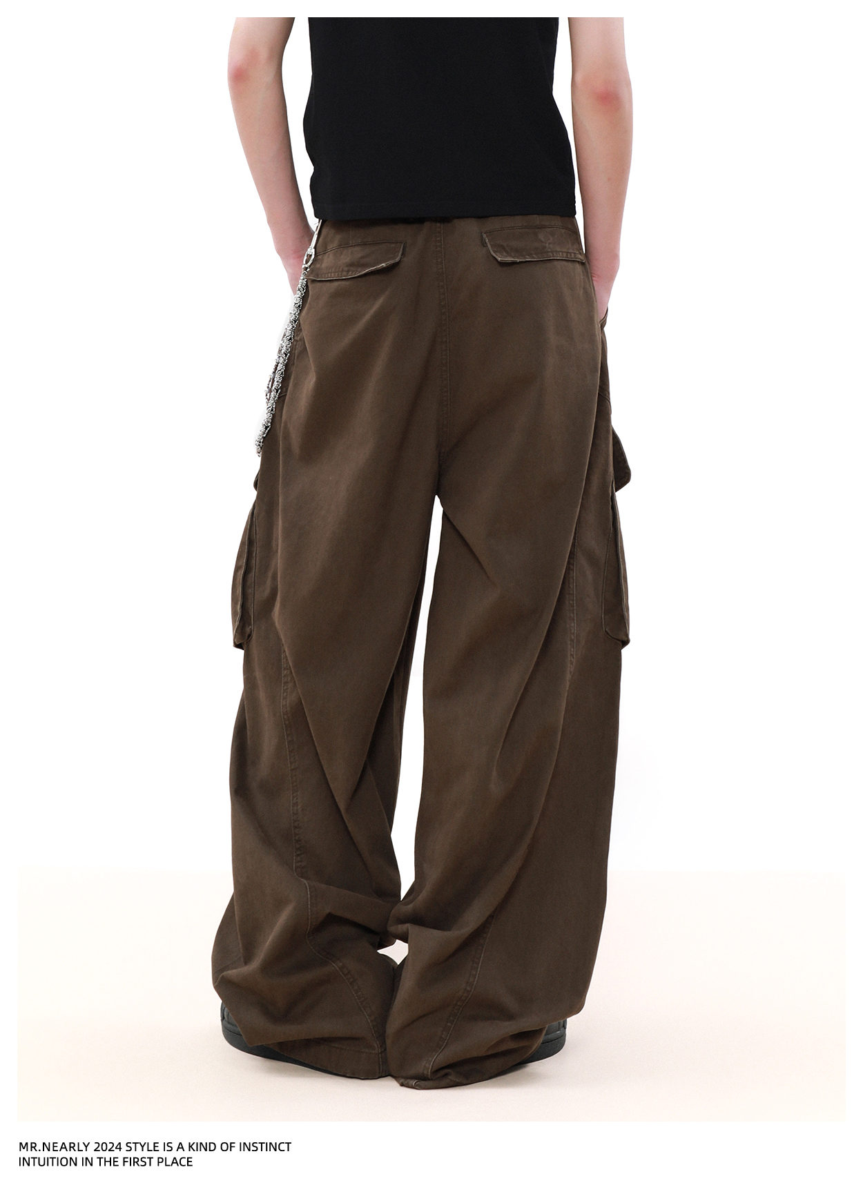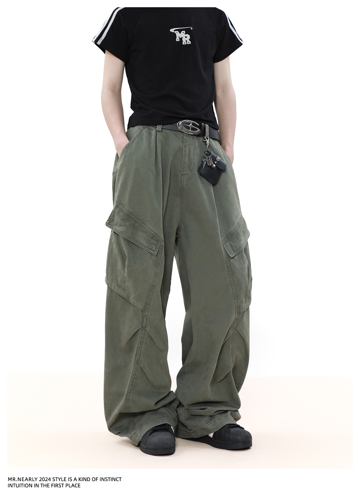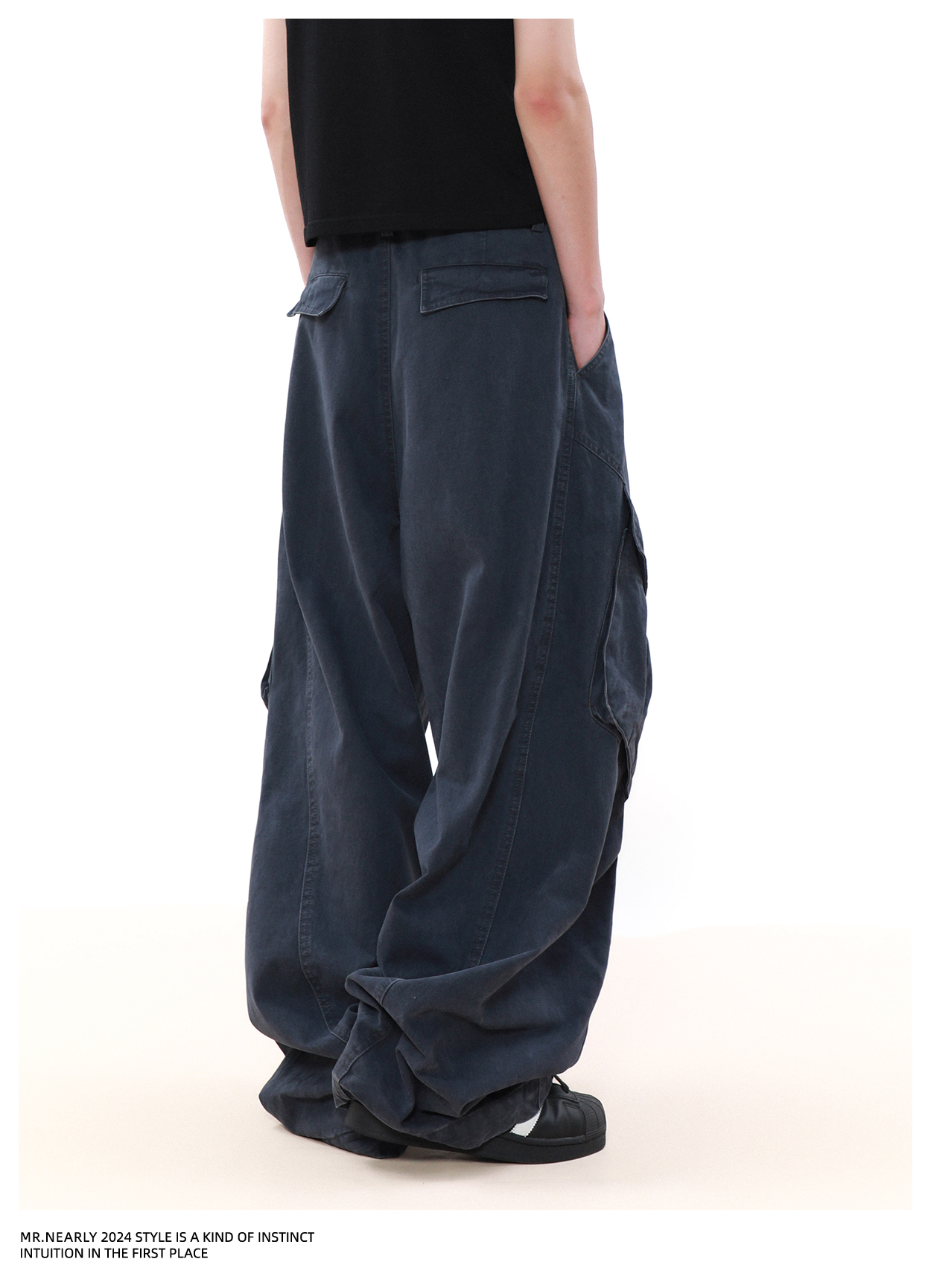 Pleated Design Wide Leg Cargo Pants WN7572
