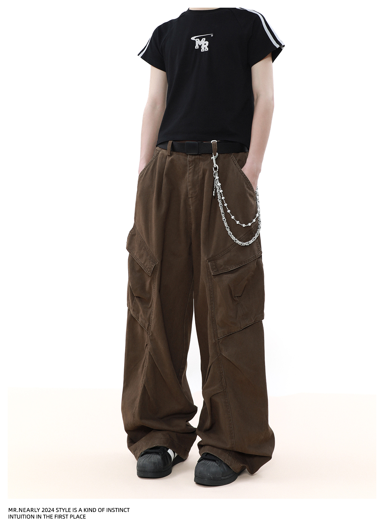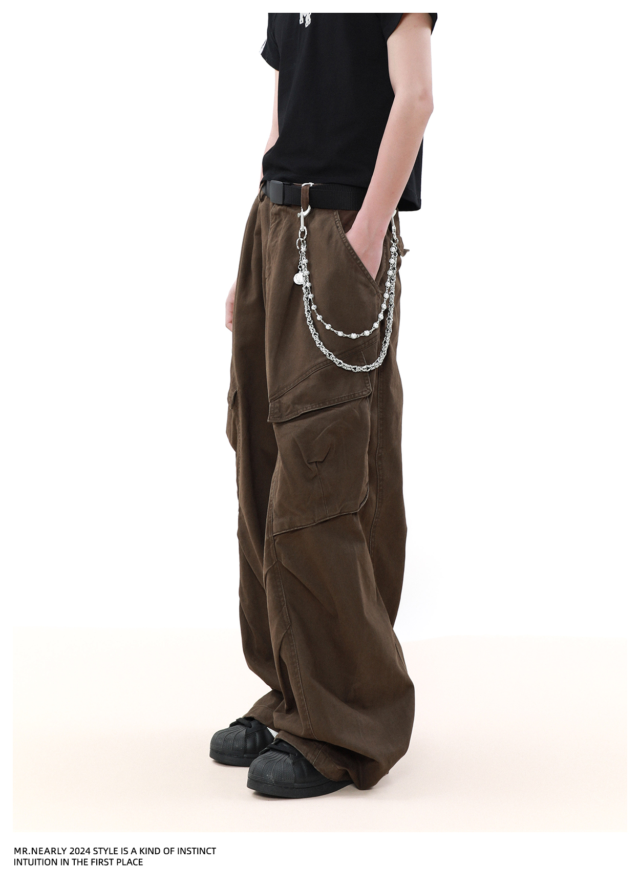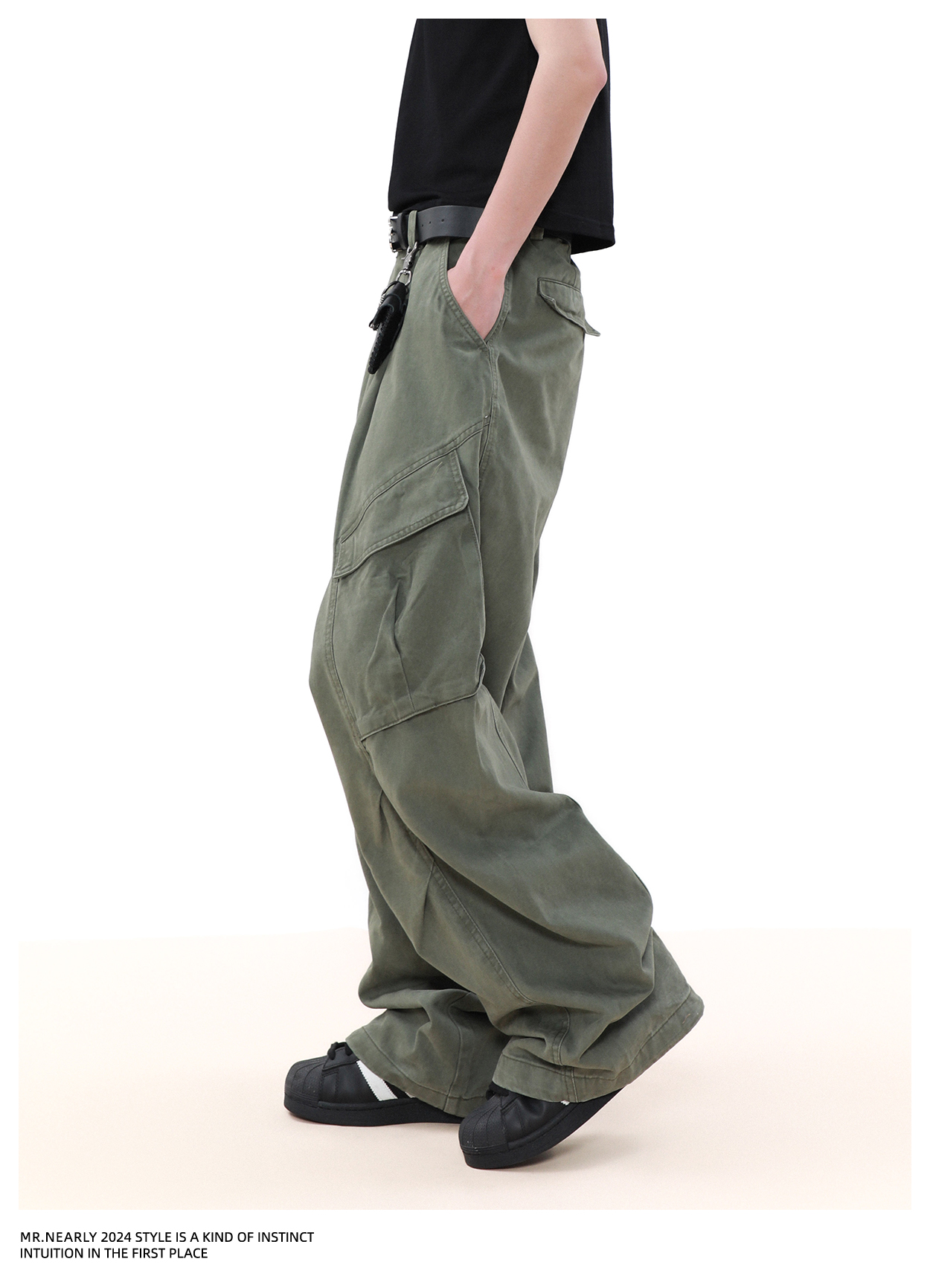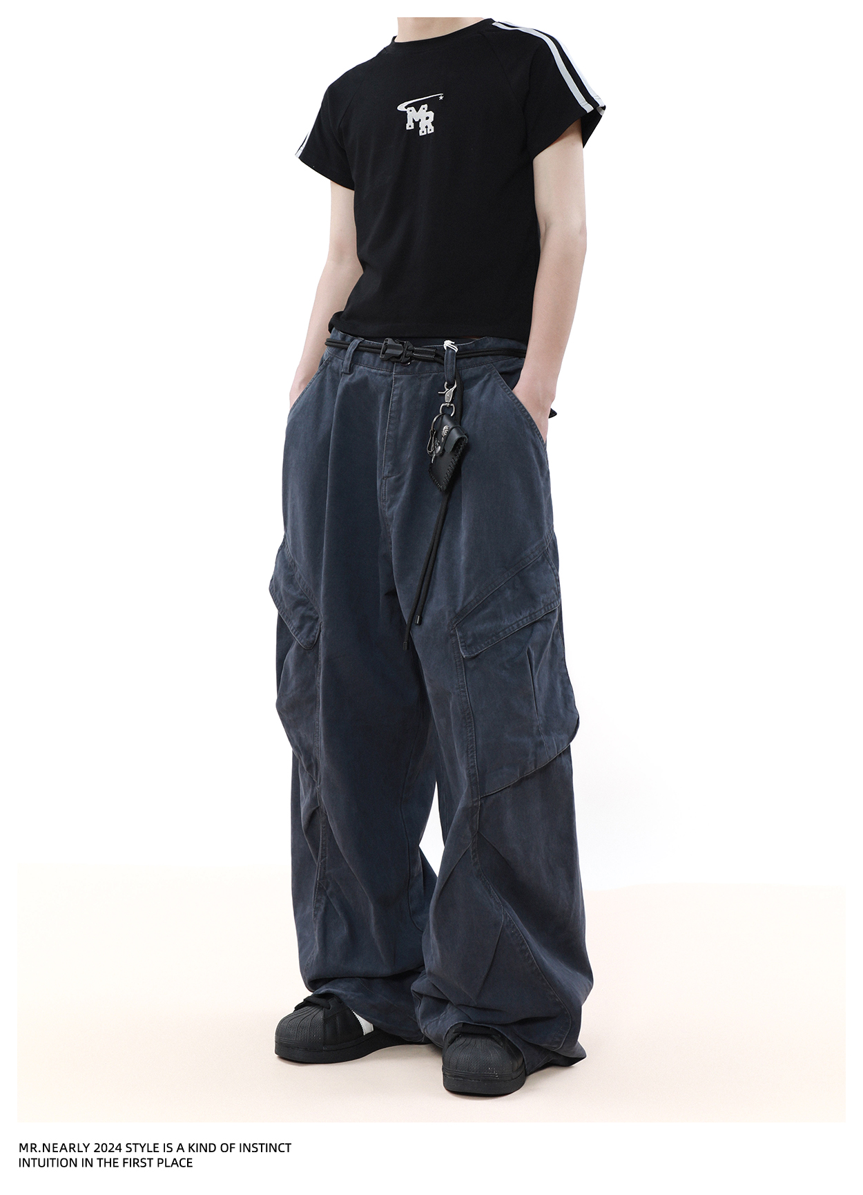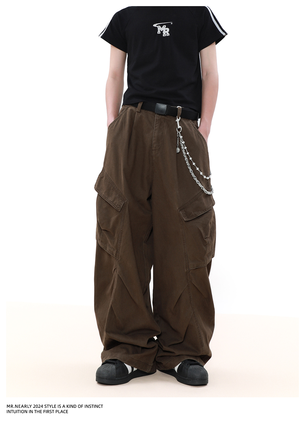 Pleated Design Wide Leg Cargo Pants WN7572