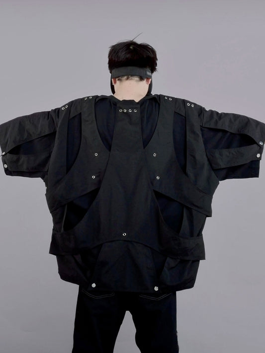 Asymmetrical Pleats Mud-Dyed Detachable Sleeve Short Sleeve T-Shirt WN13964