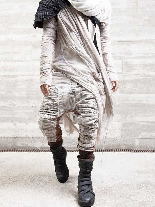 Deconstructed Layered Tapered Cotton Pants WN13955