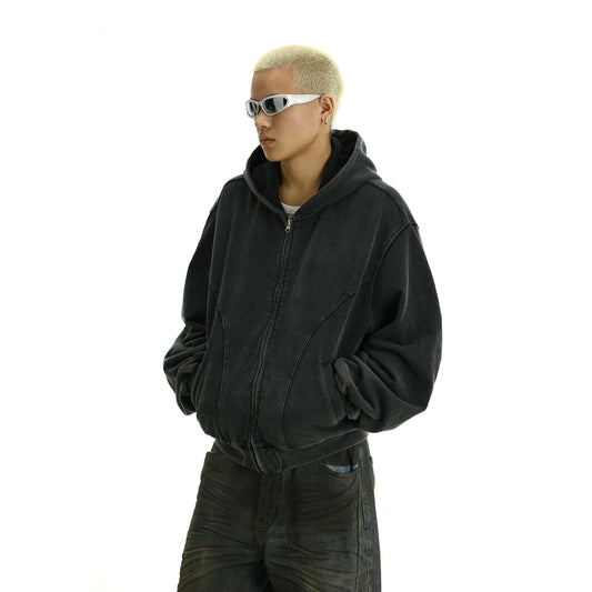 Washed Shoulder Pad Zipper Denim Jacket WN5820