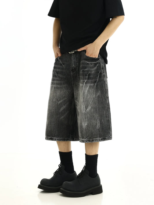 Washed Wide Leg Straight Denim Short Pants WN8265