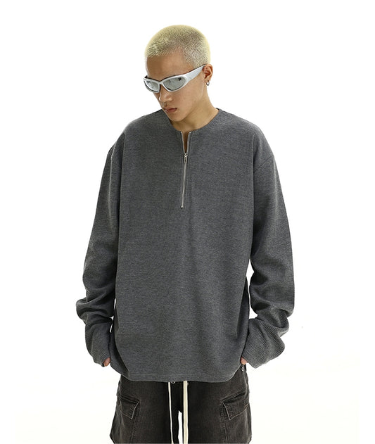 Oversize Half Zipper Long Sleeve T-Shirt WN5765