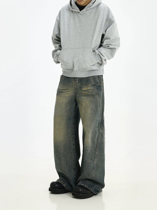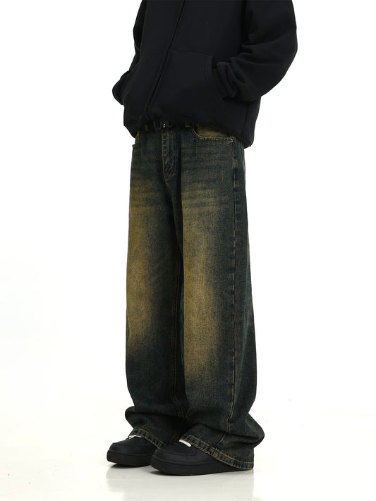 Washed Damage Wide-Leg Straight Denim Jeans WN5783