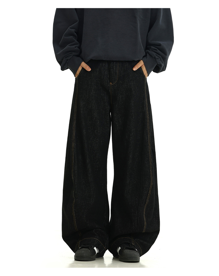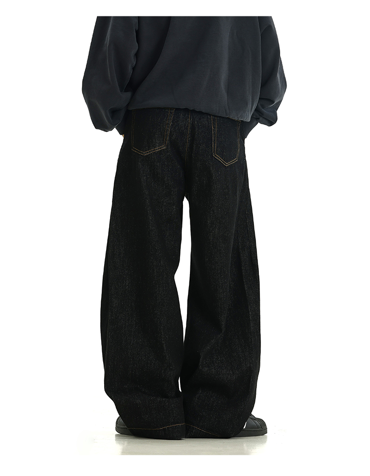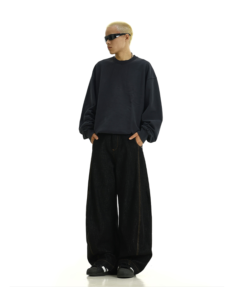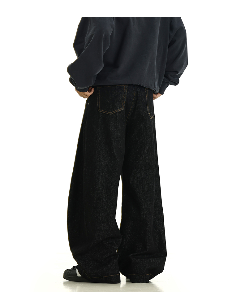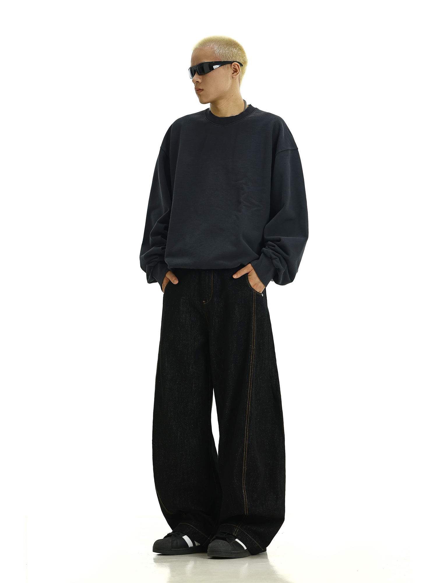 Washed Scimitar Cut Wide-Leg Straight Denim Jeans WN10612