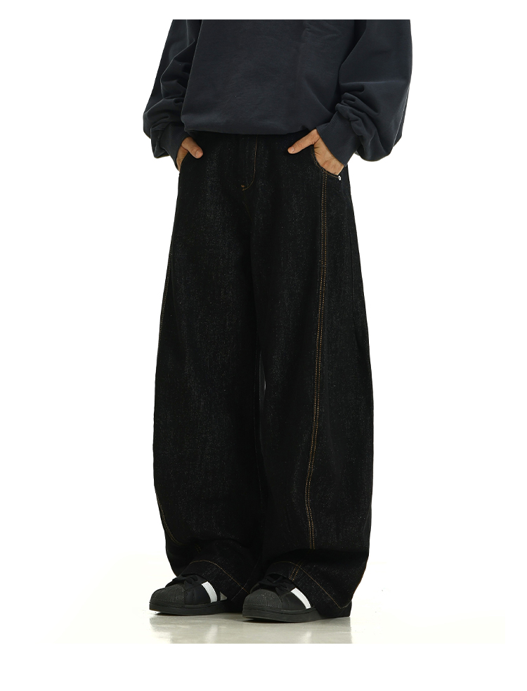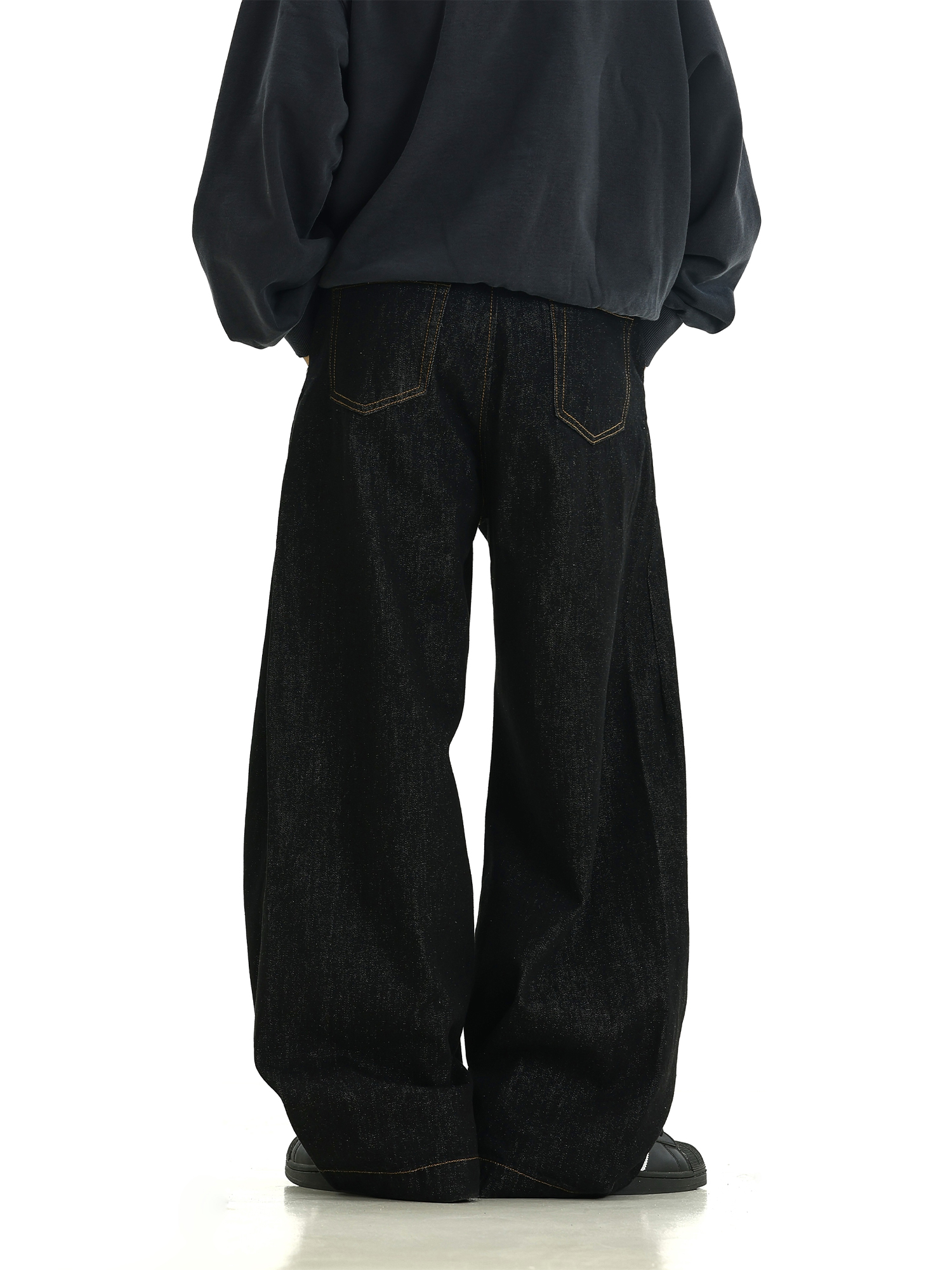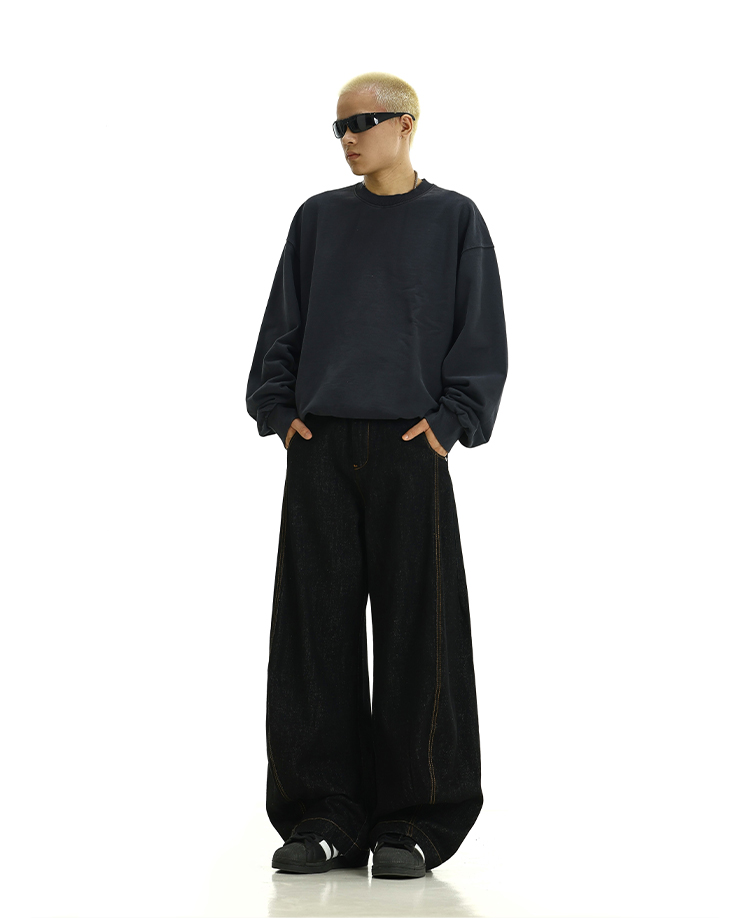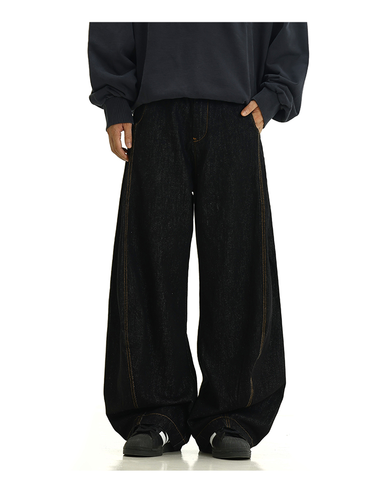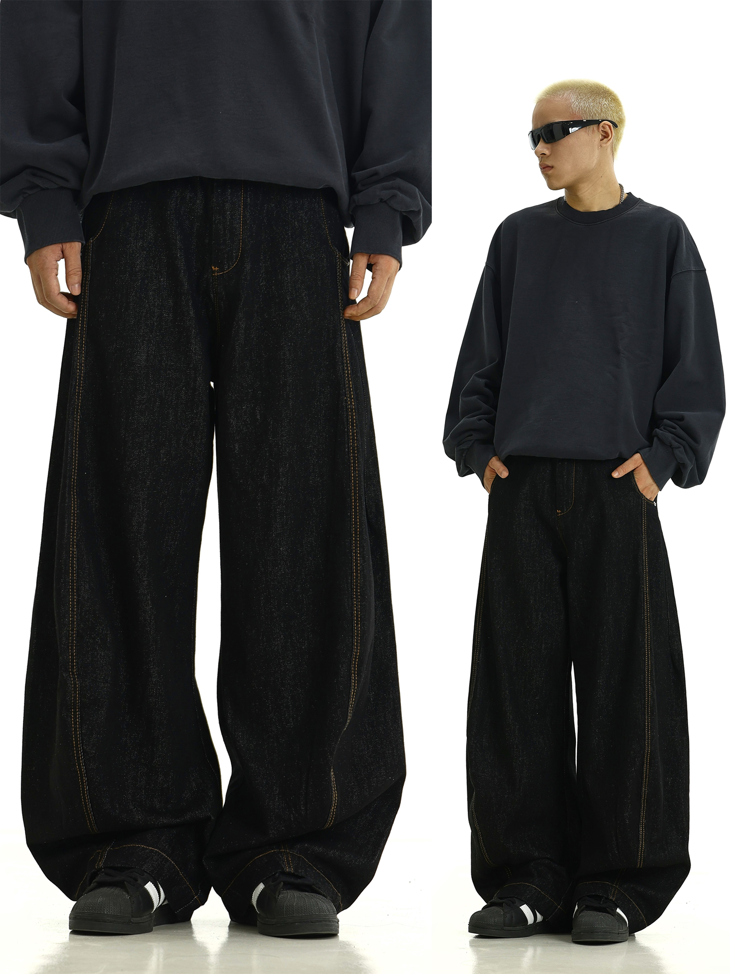 Washed Scimitar Cut Wide-Leg Straight Denim Jeans WN10612