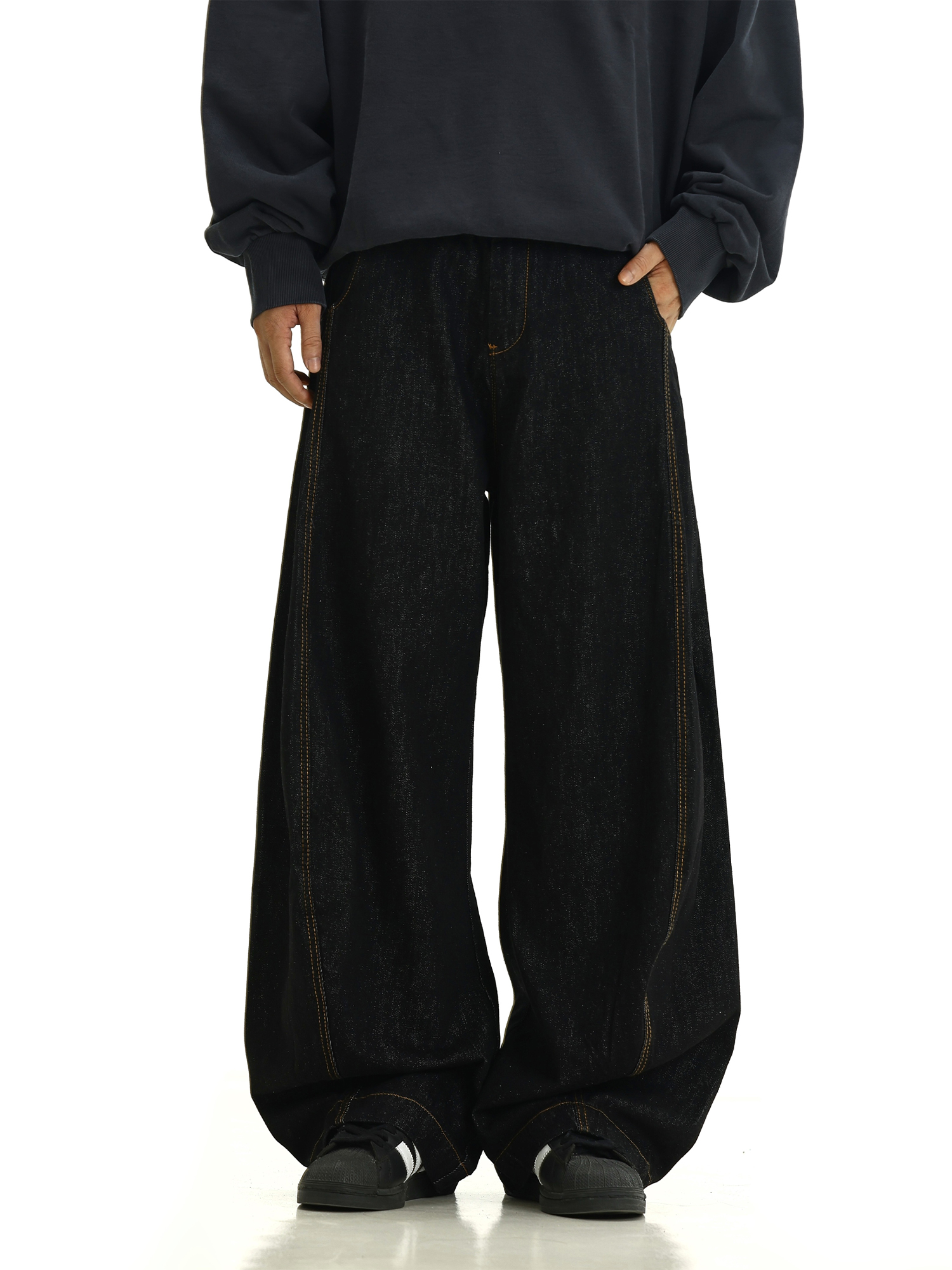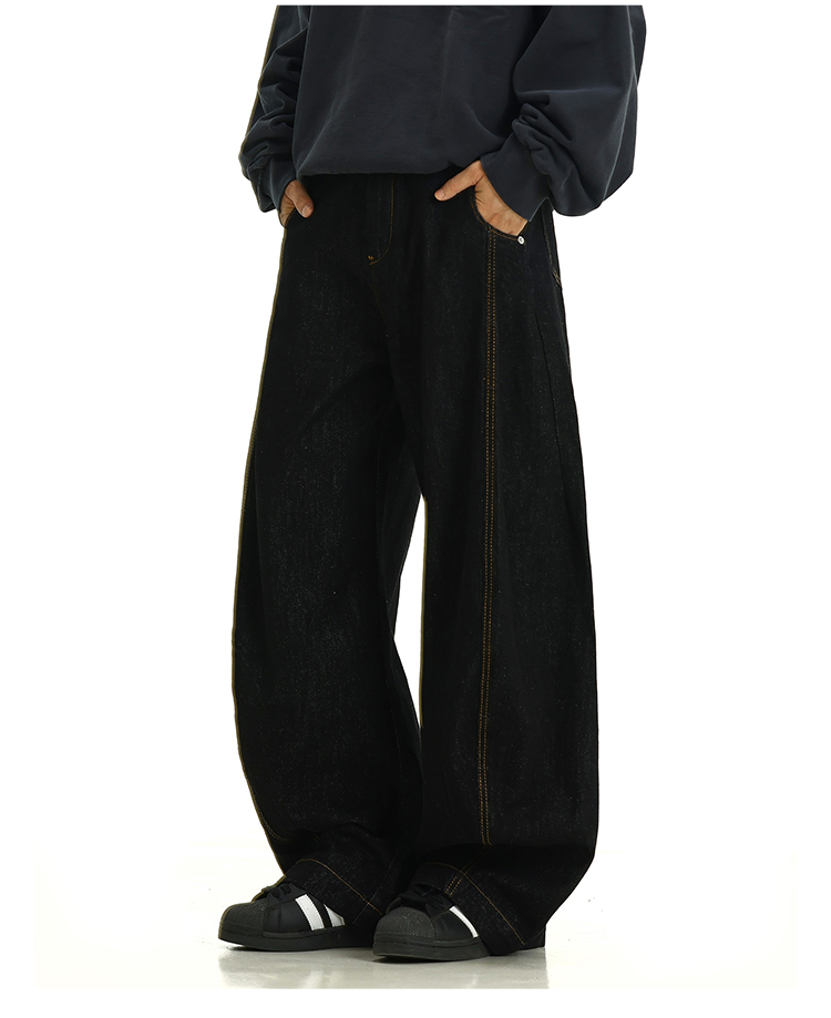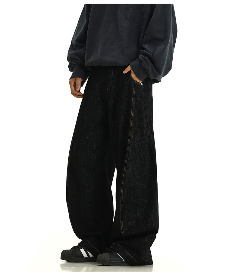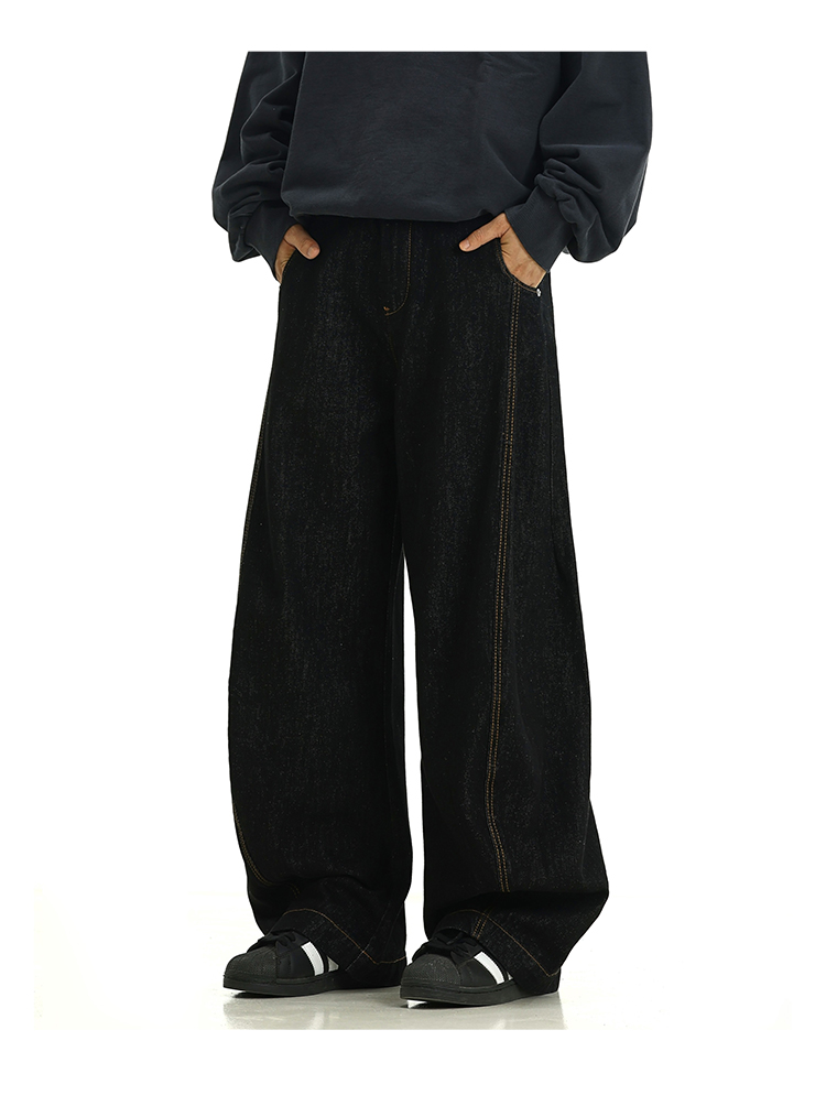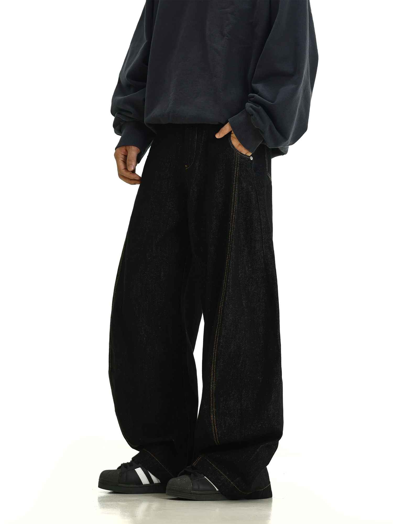 Washed Scimitar Cut Wide-Leg Straight Denim Jeans WN10612