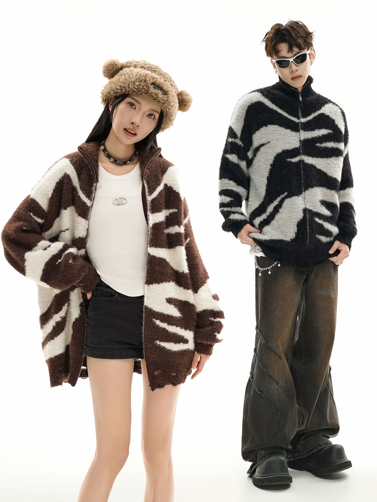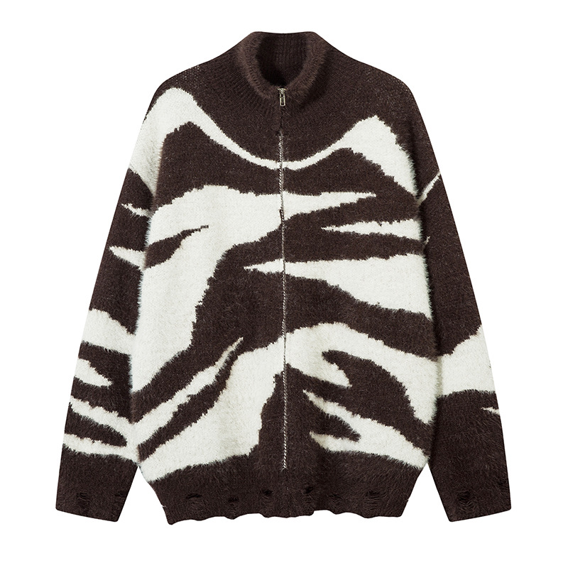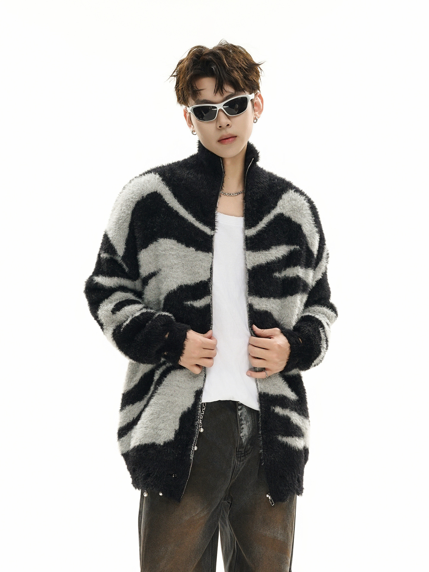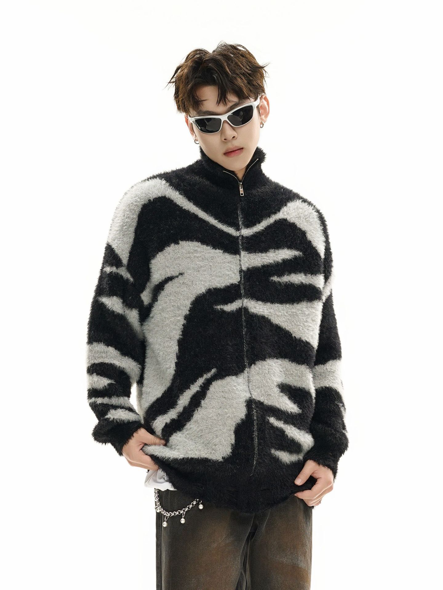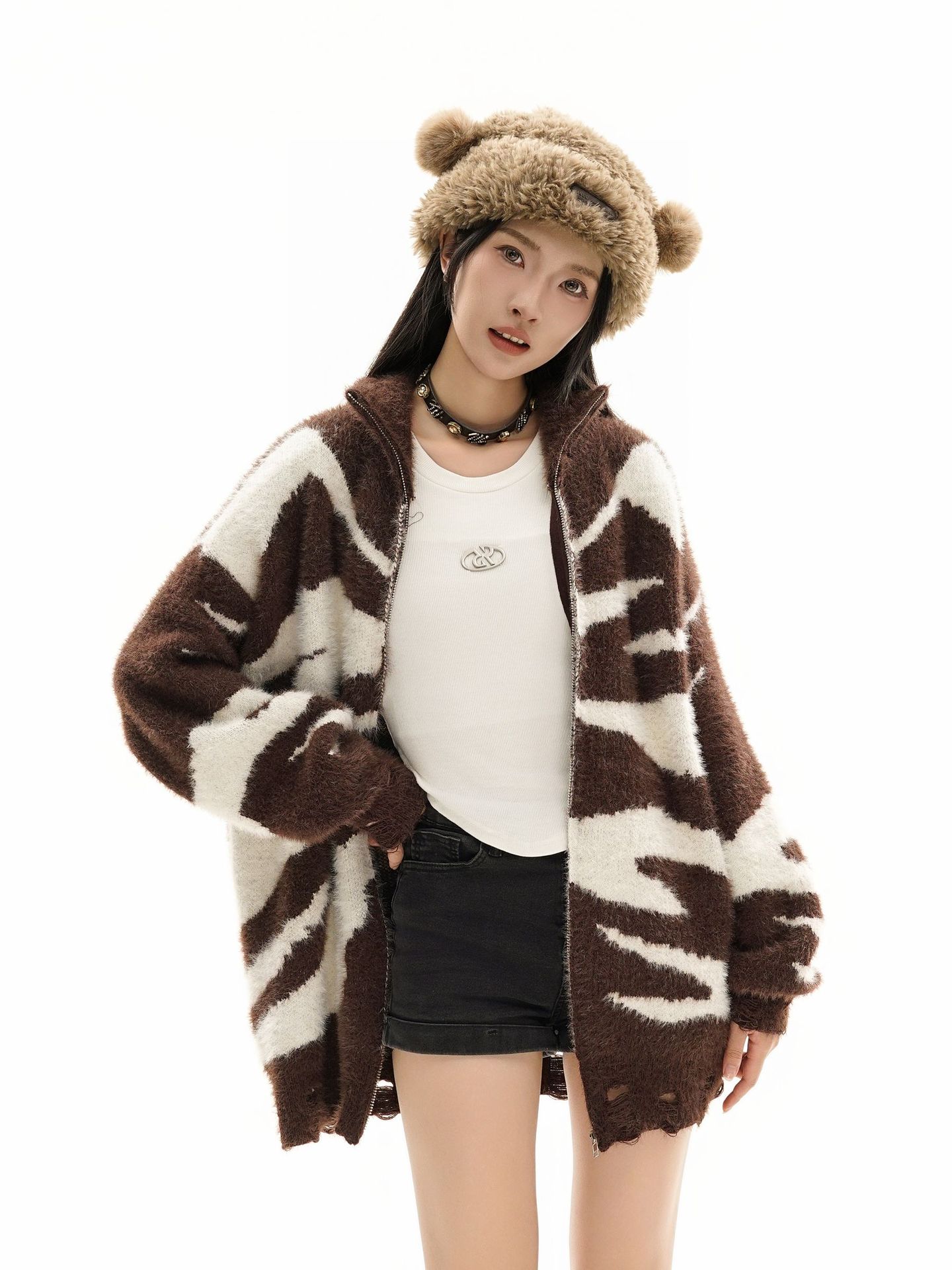Zebra Print Oversize Zipper Knit Cardigan WN11176