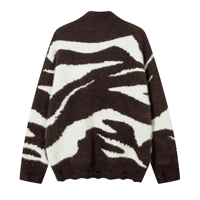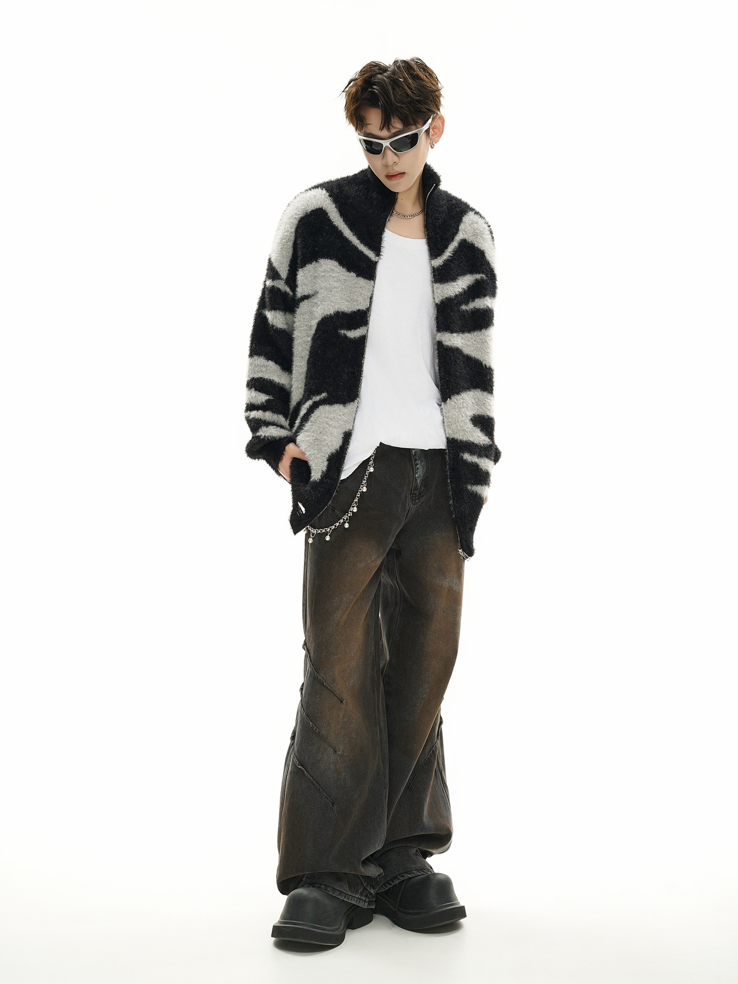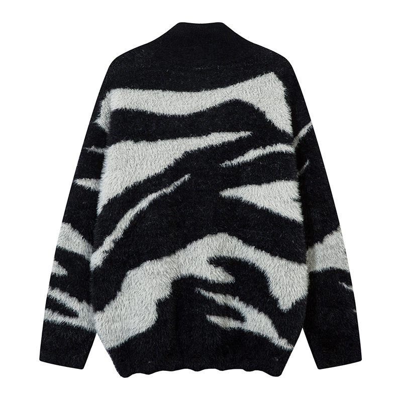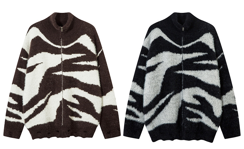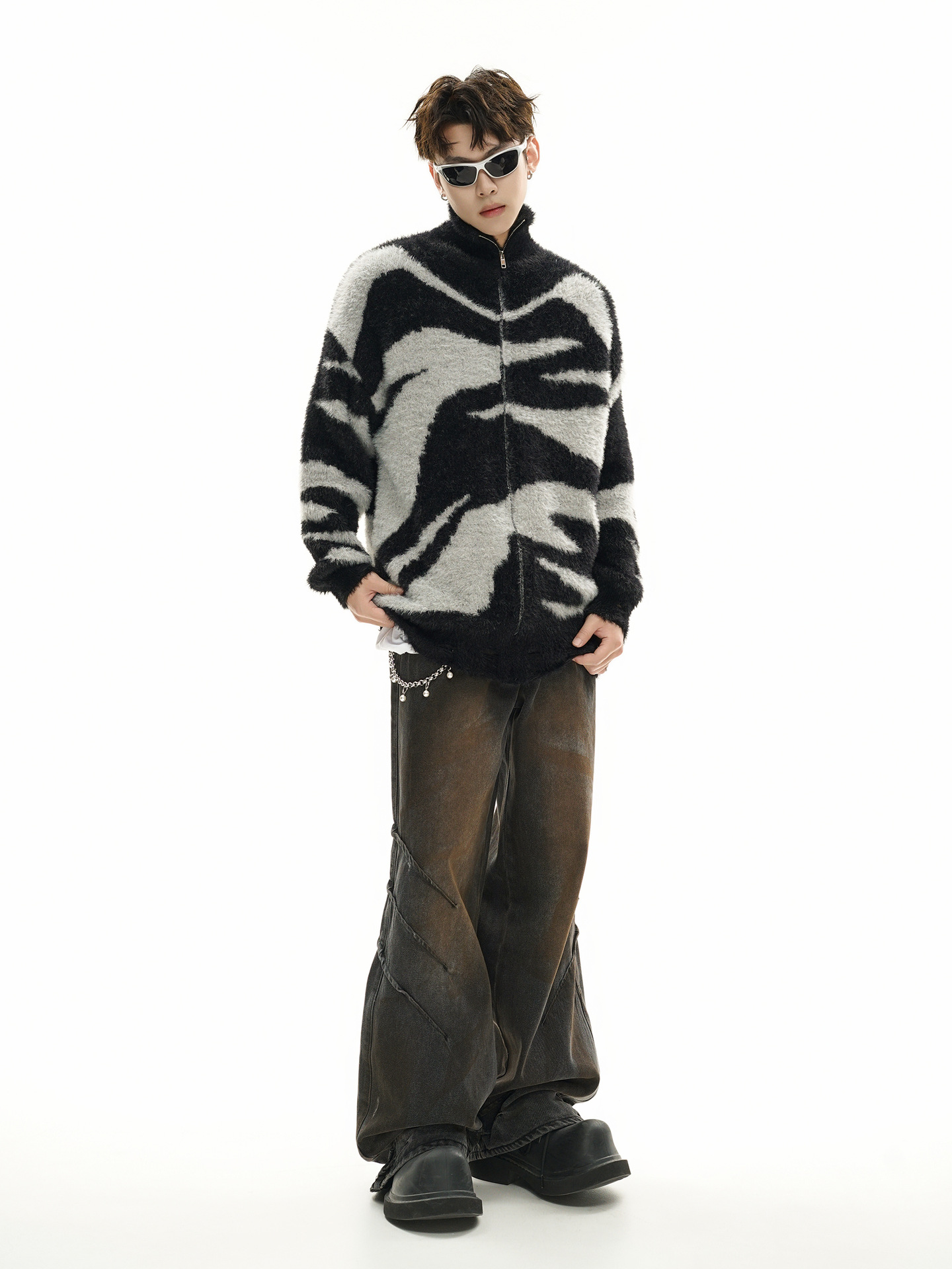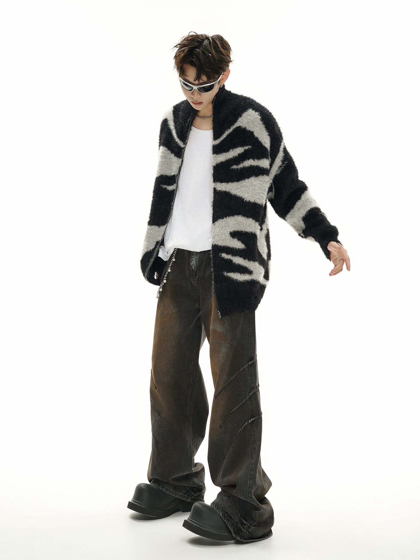 Zebra Print Oversize Zipper Knit Cardigan WN11176