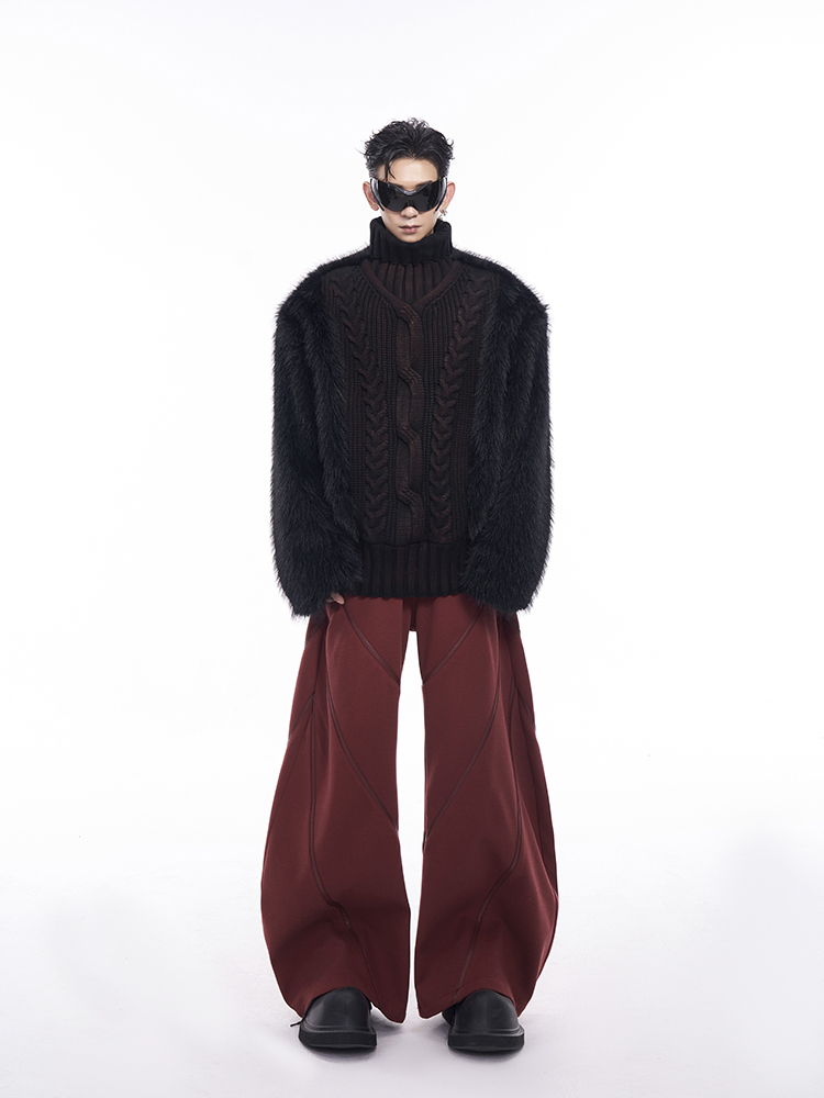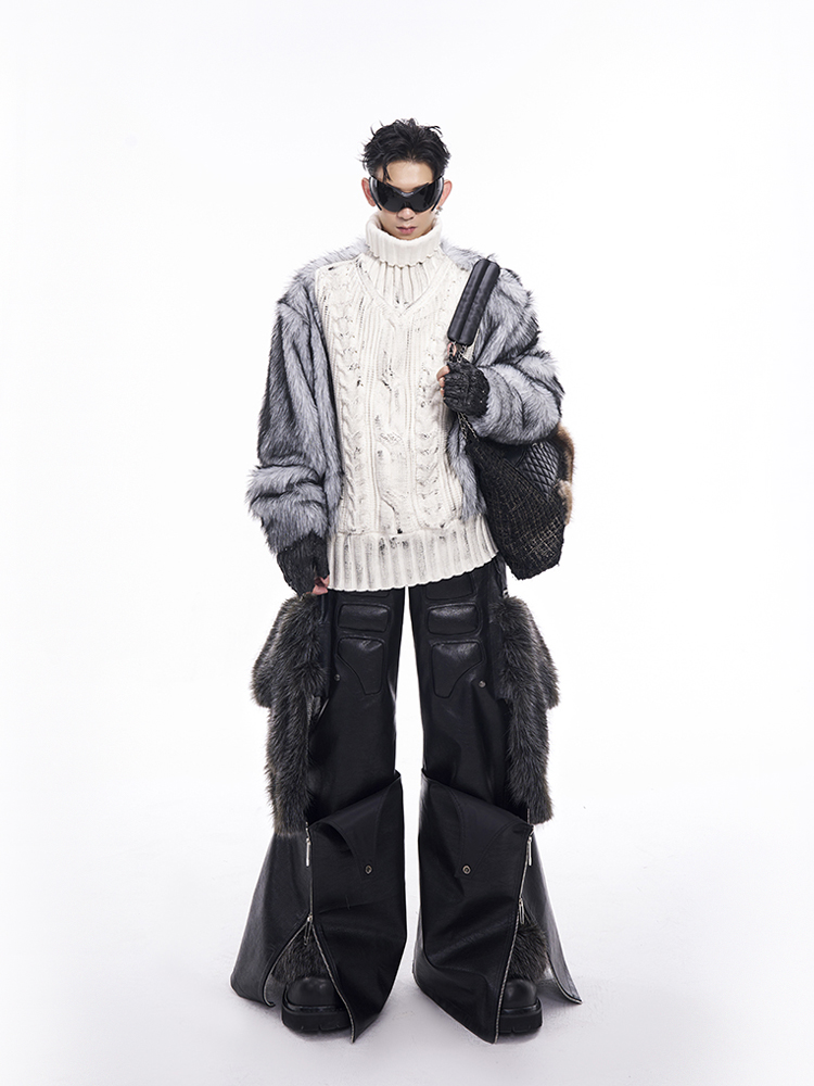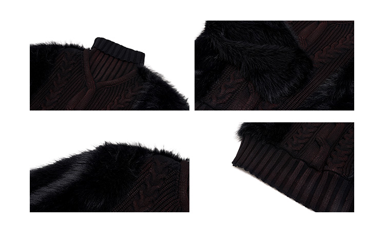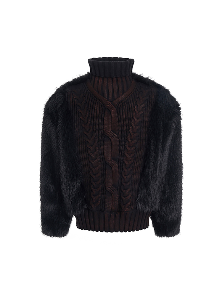 Fake Fur Patchwork High-Neck Knit Sweater WN11686