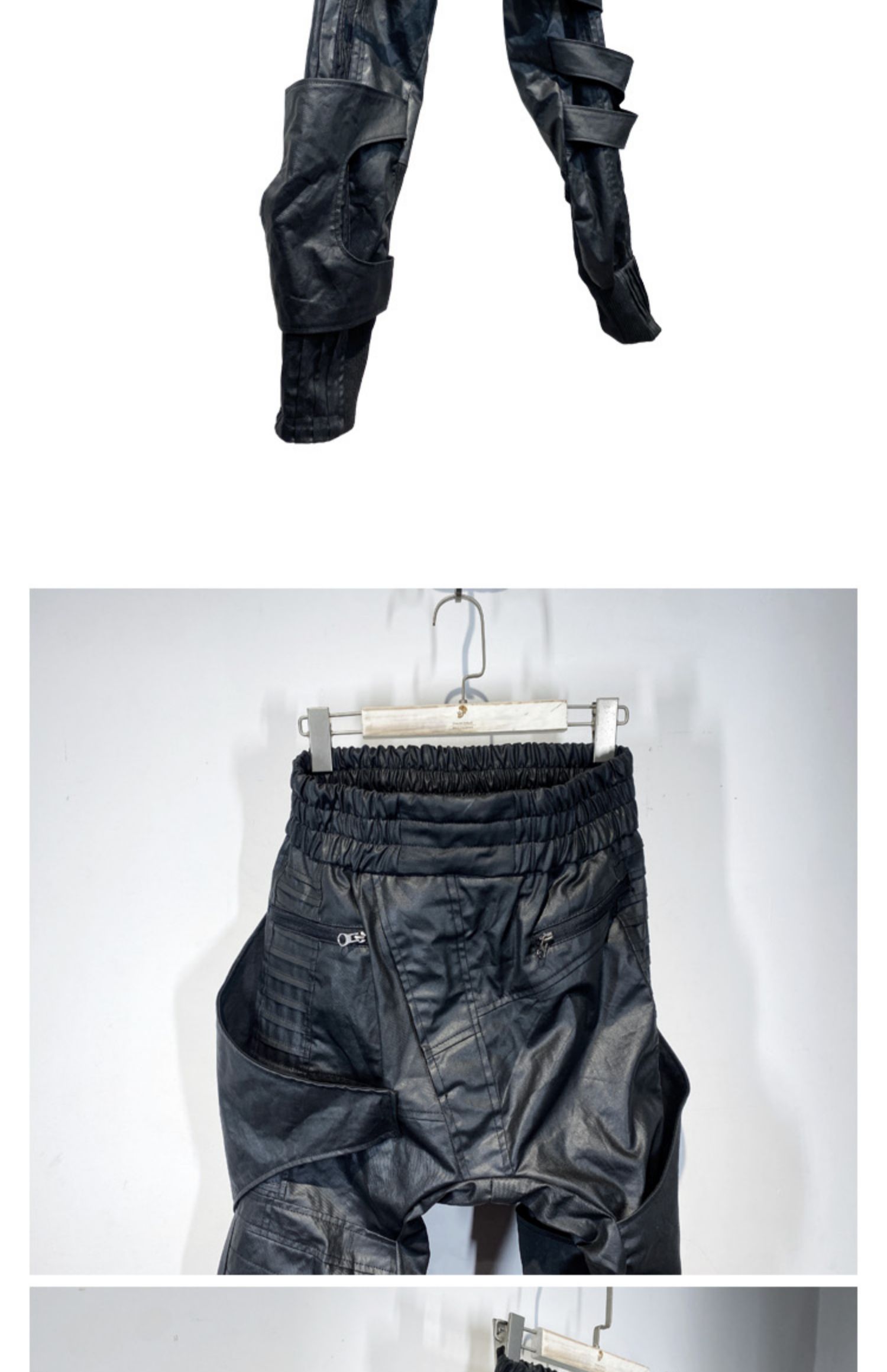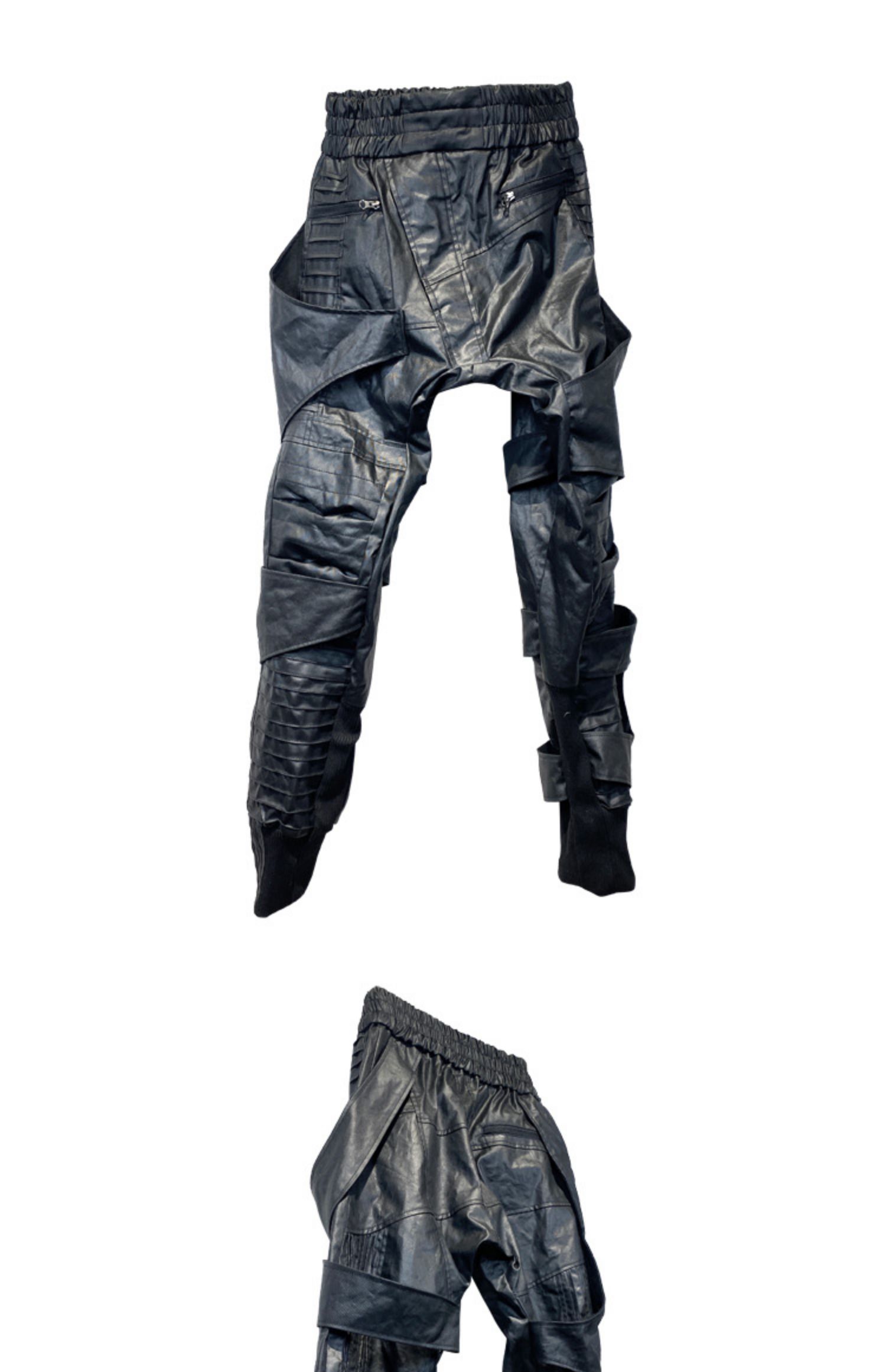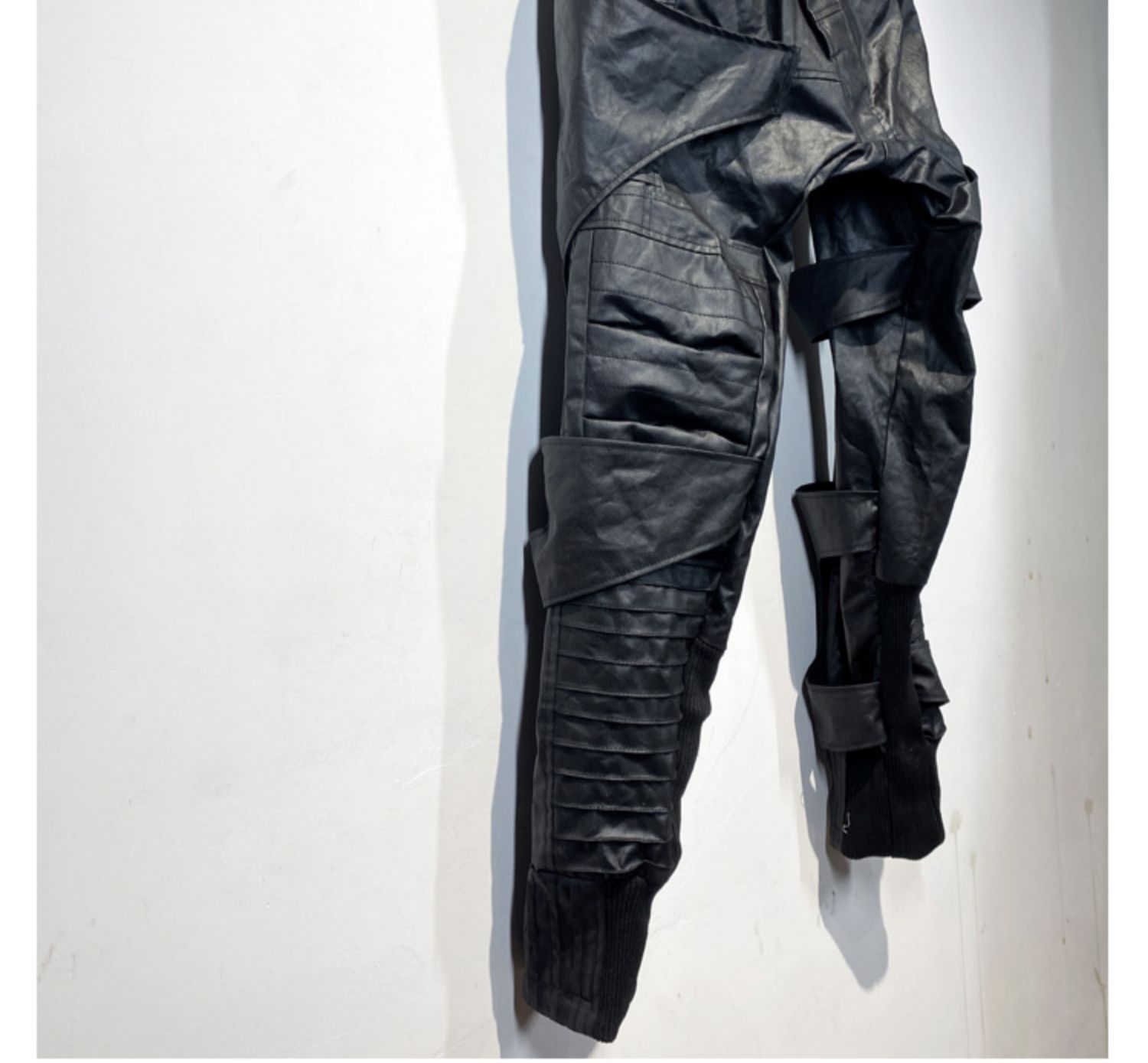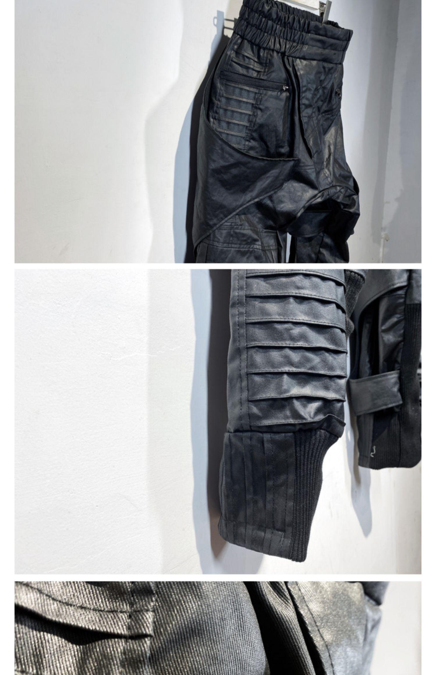 Asymmetric Waxed 3D Structured Motorcycle Style Pants WN13940