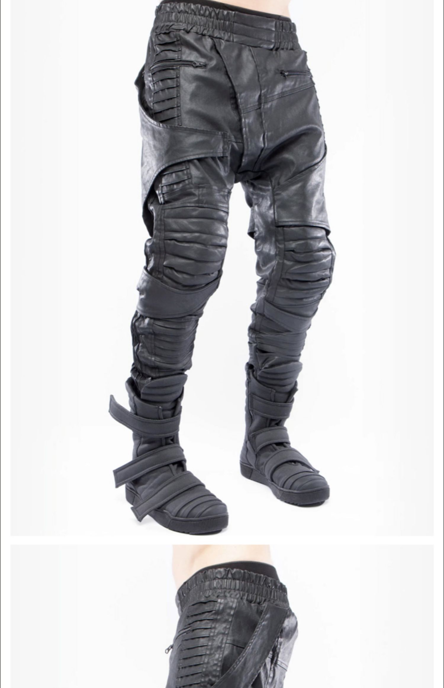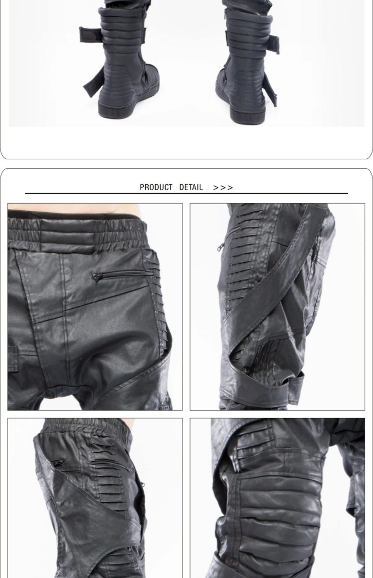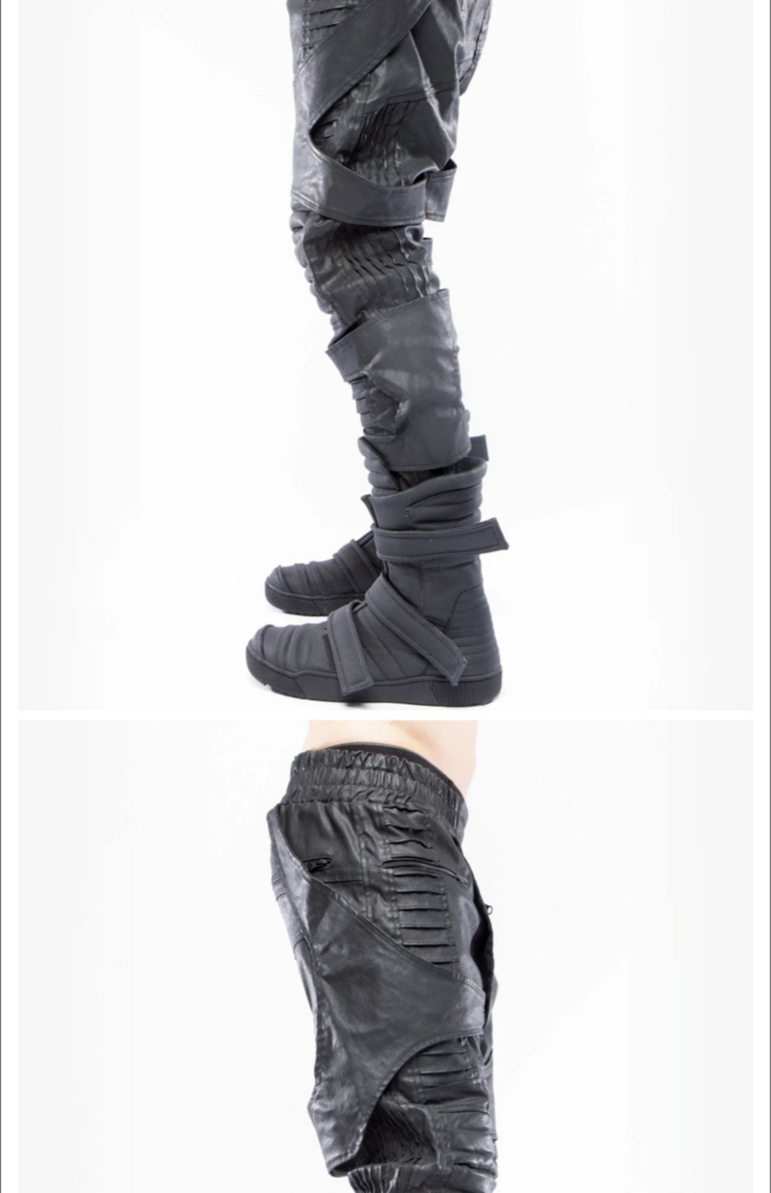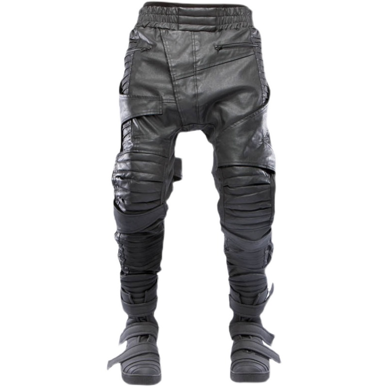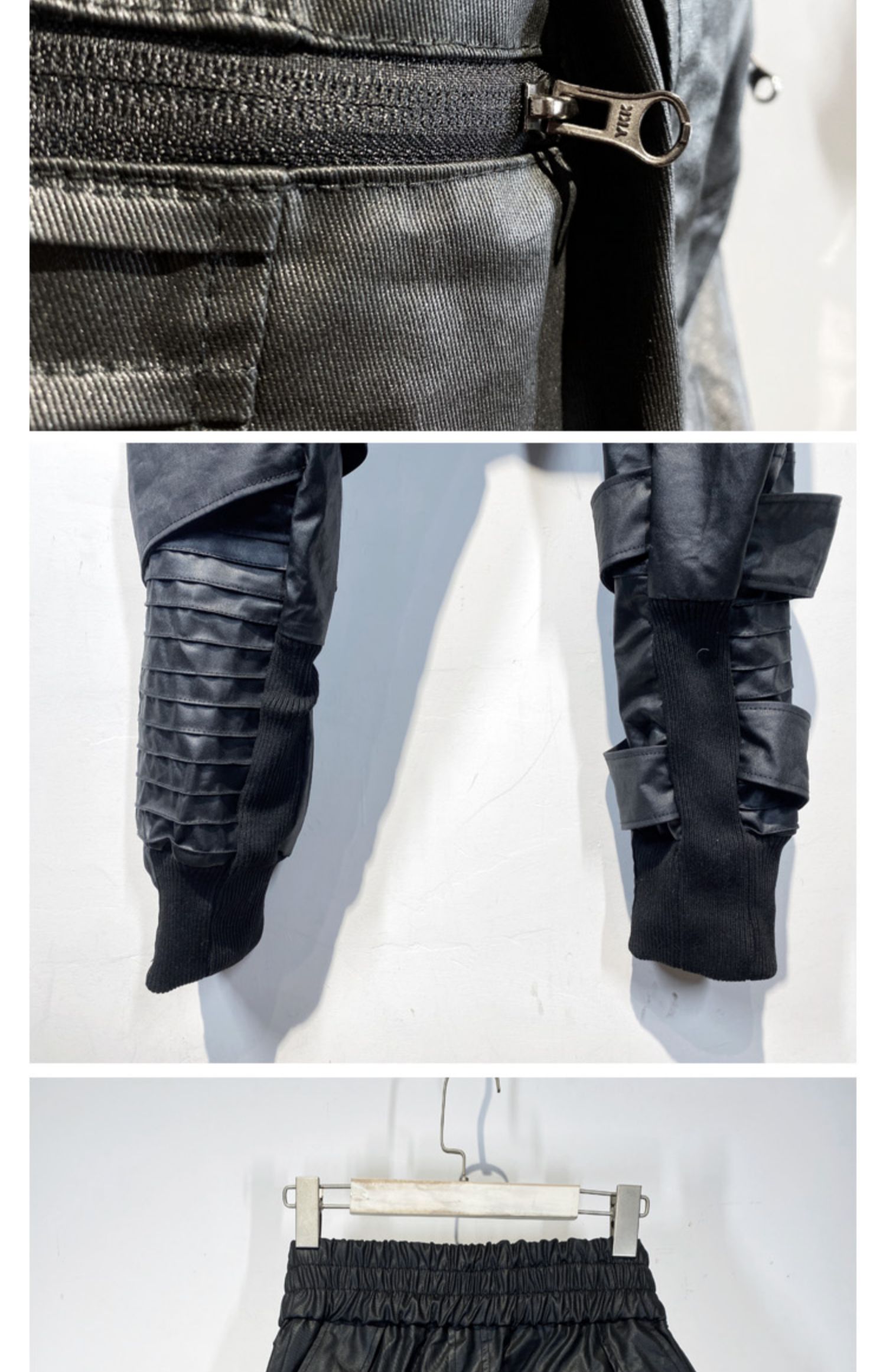 Asymmetric Waxed 3D Structured Motorcycle Style Pants WN13940