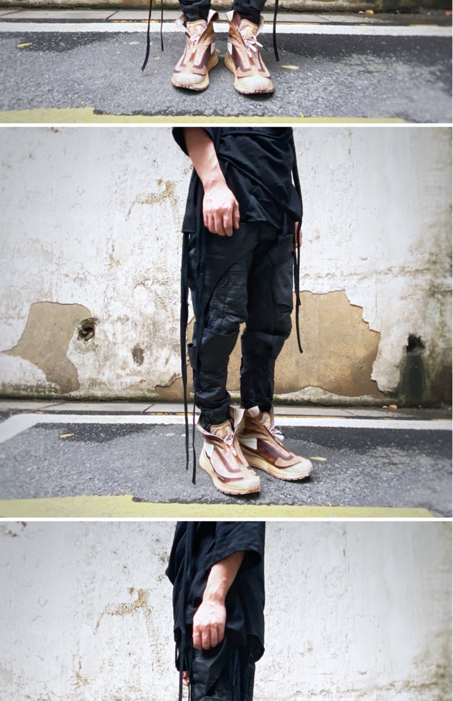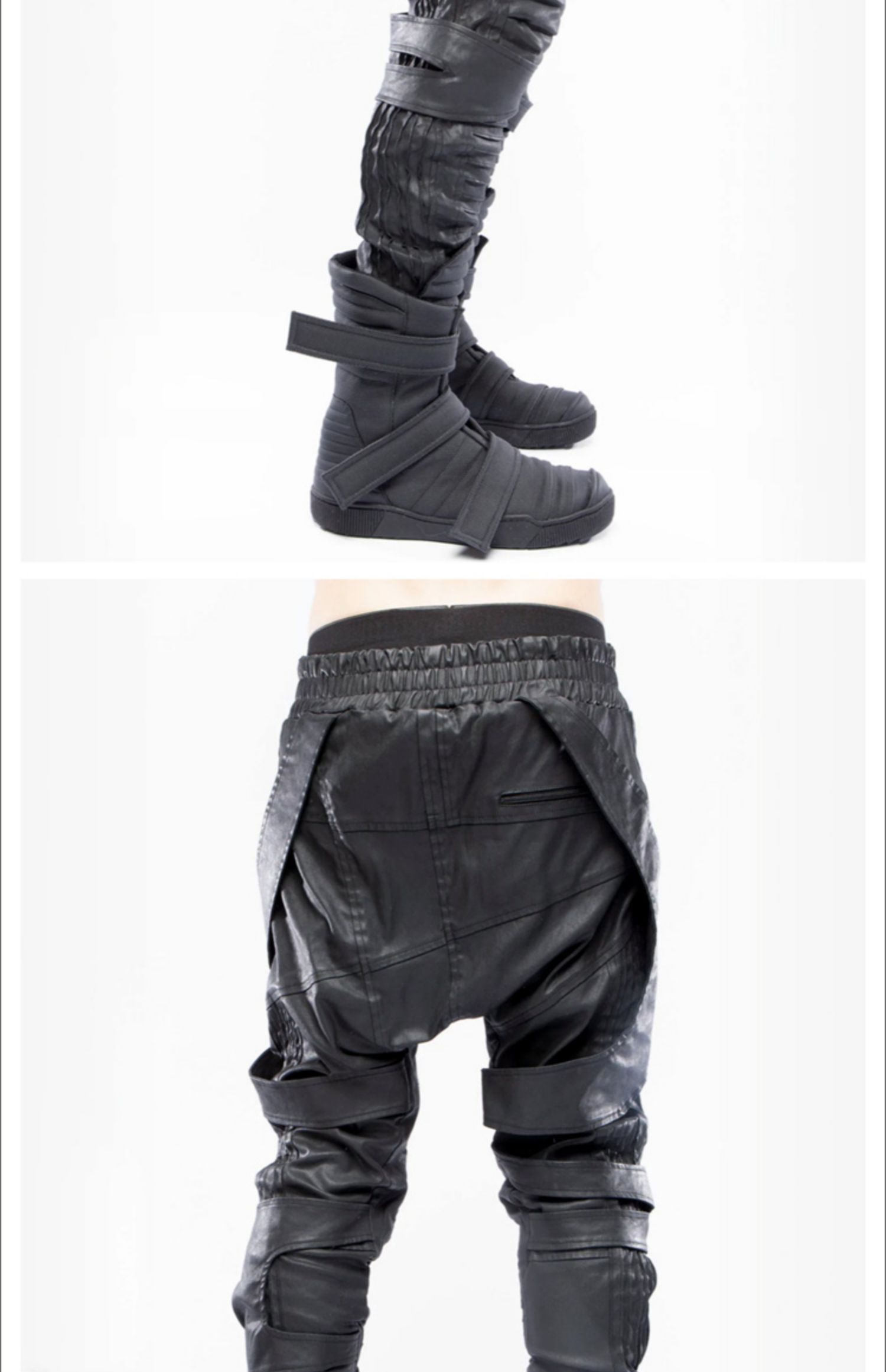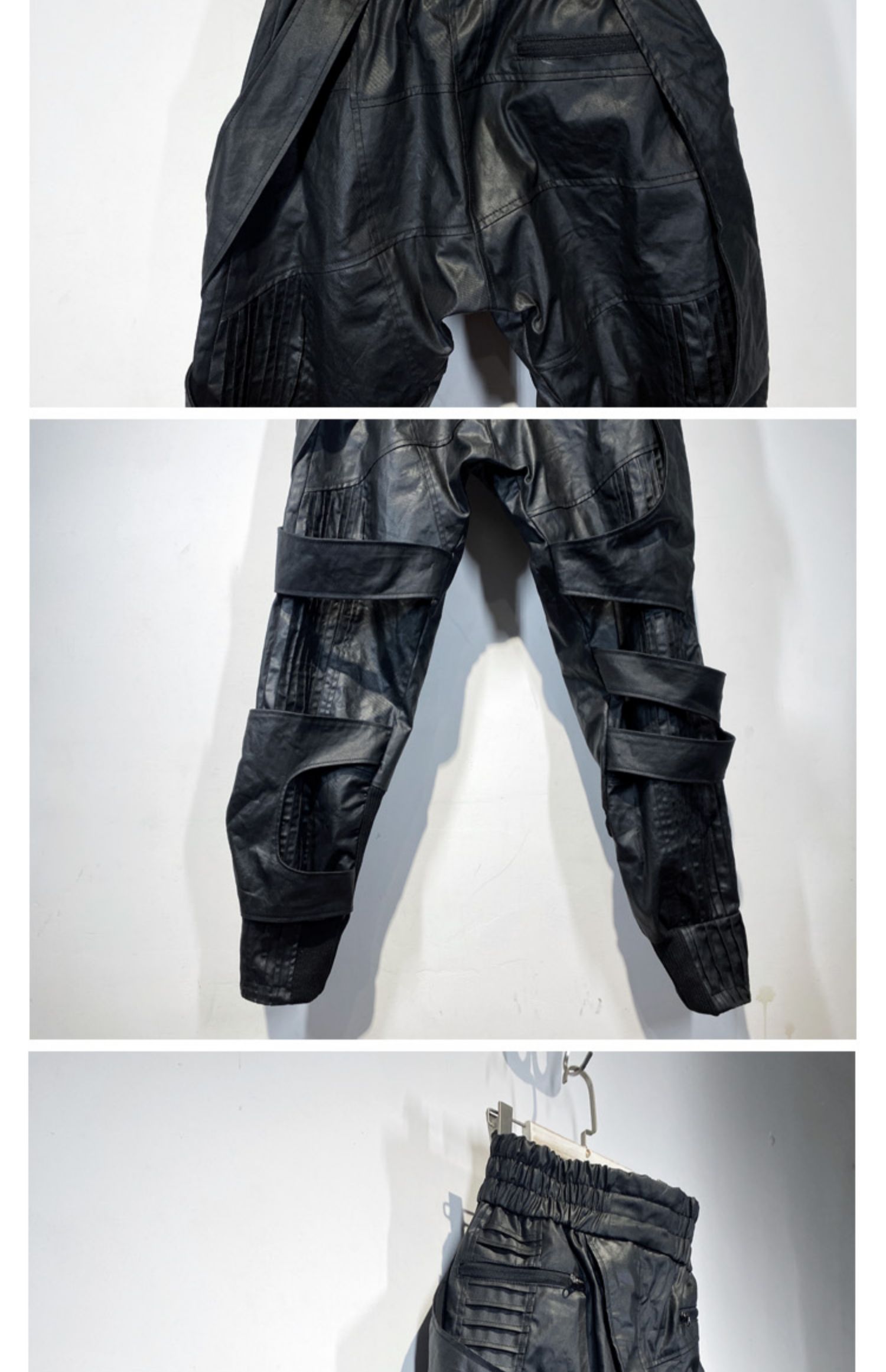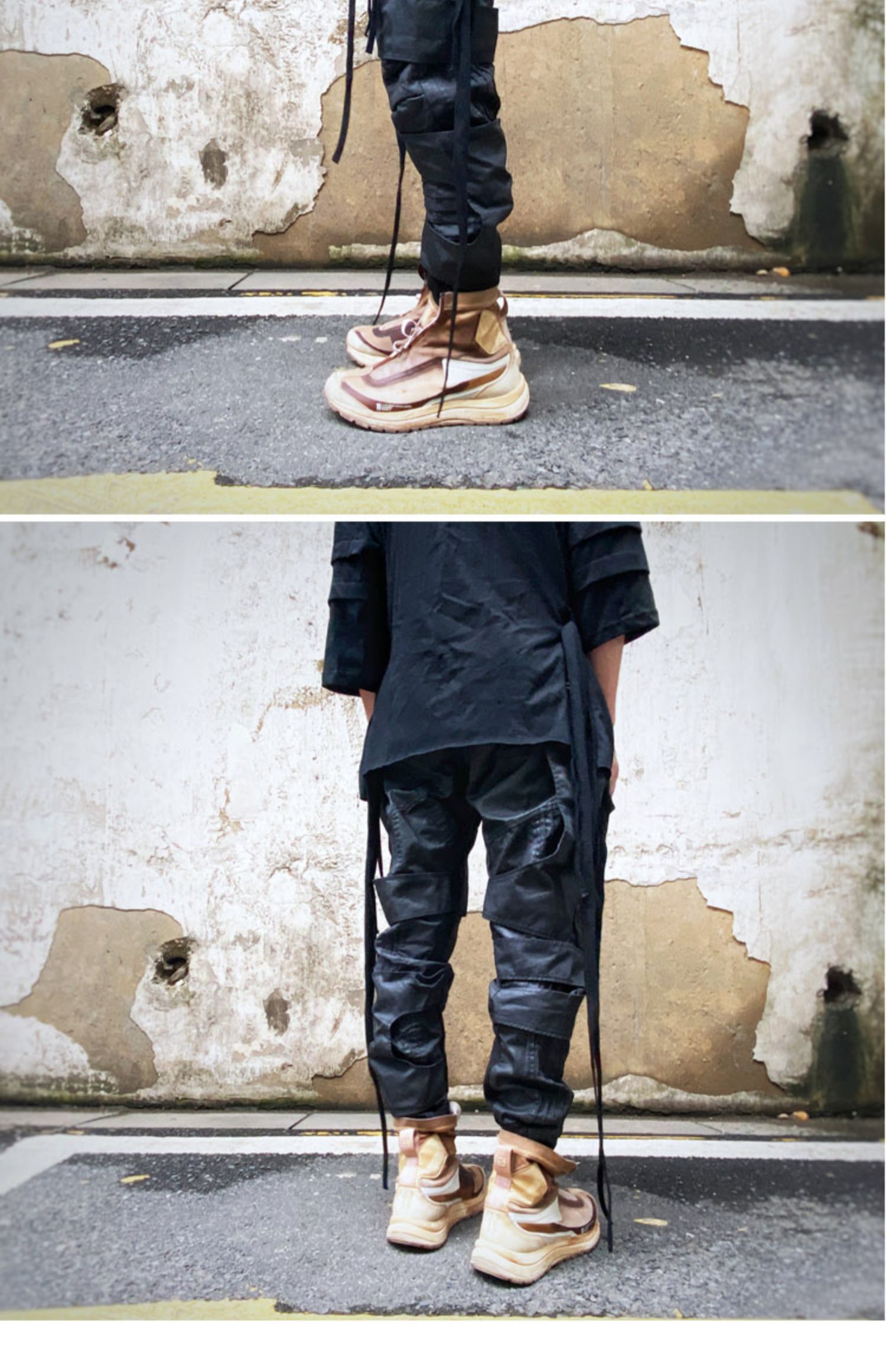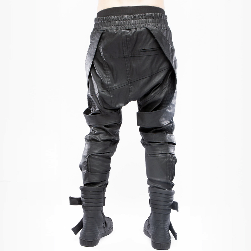 Asymmetric Waxed 3D Structured Motorcycle Style Pants WN13940