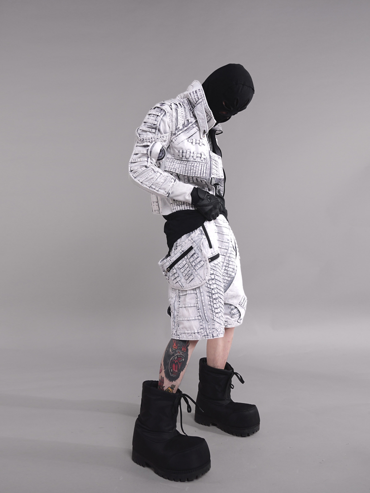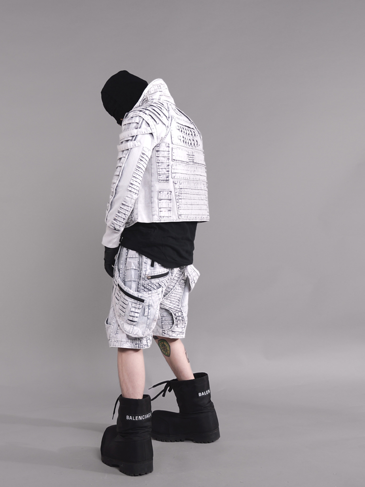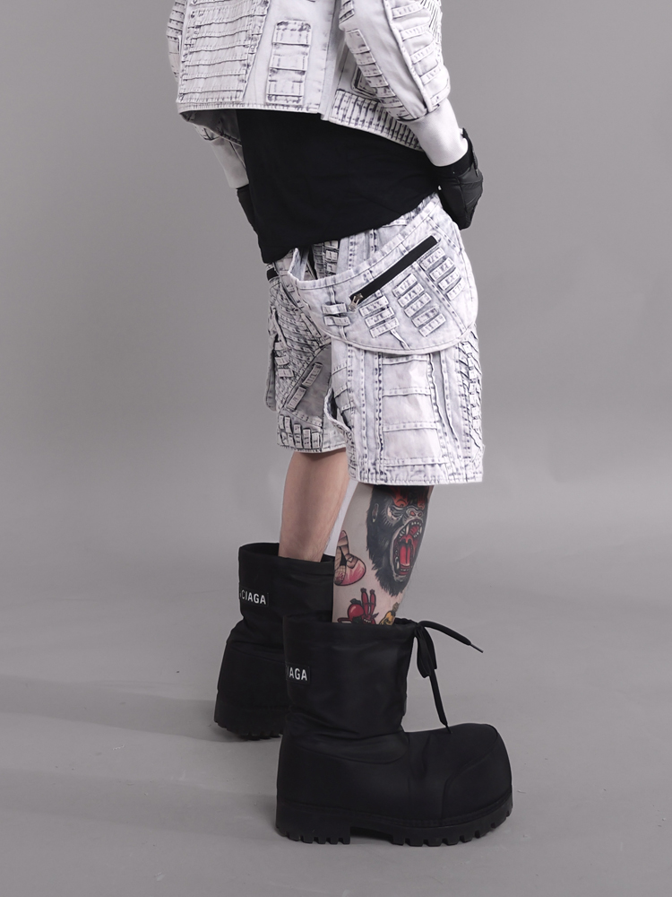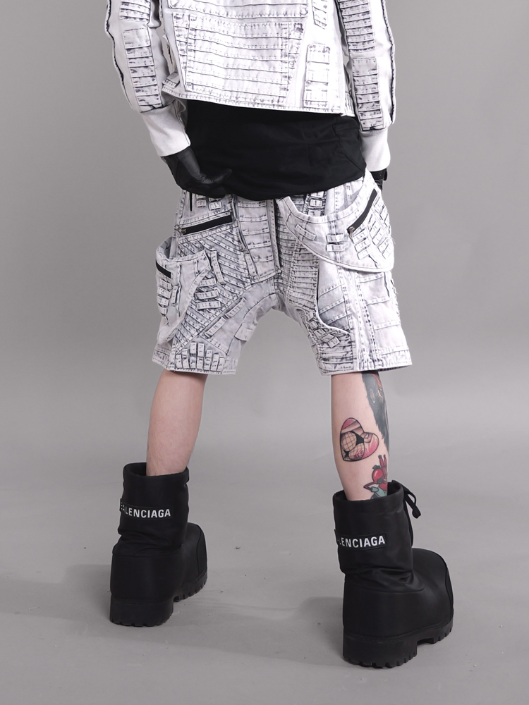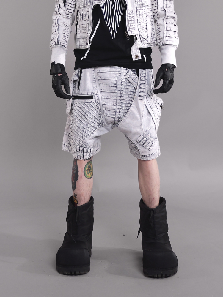 Asymmetric Utility Pocket Drop-Crotch Half Pants WN13950
