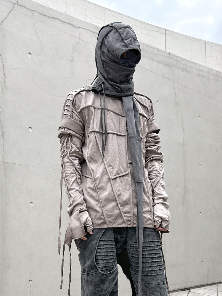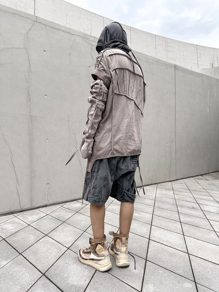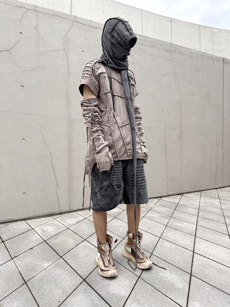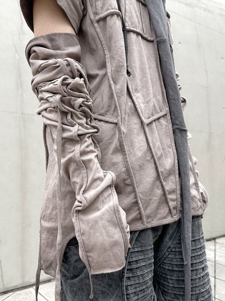 Asymmetrical Pleats Mud-Dyed Detachable Sleeve Short Sleeve T-Shirt WN13964