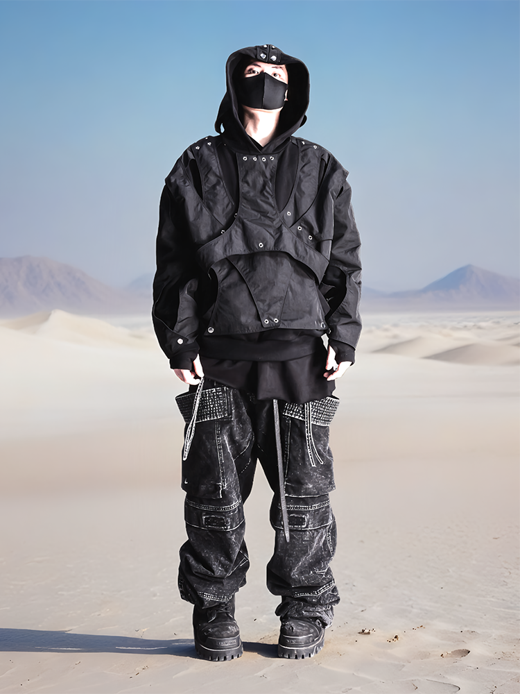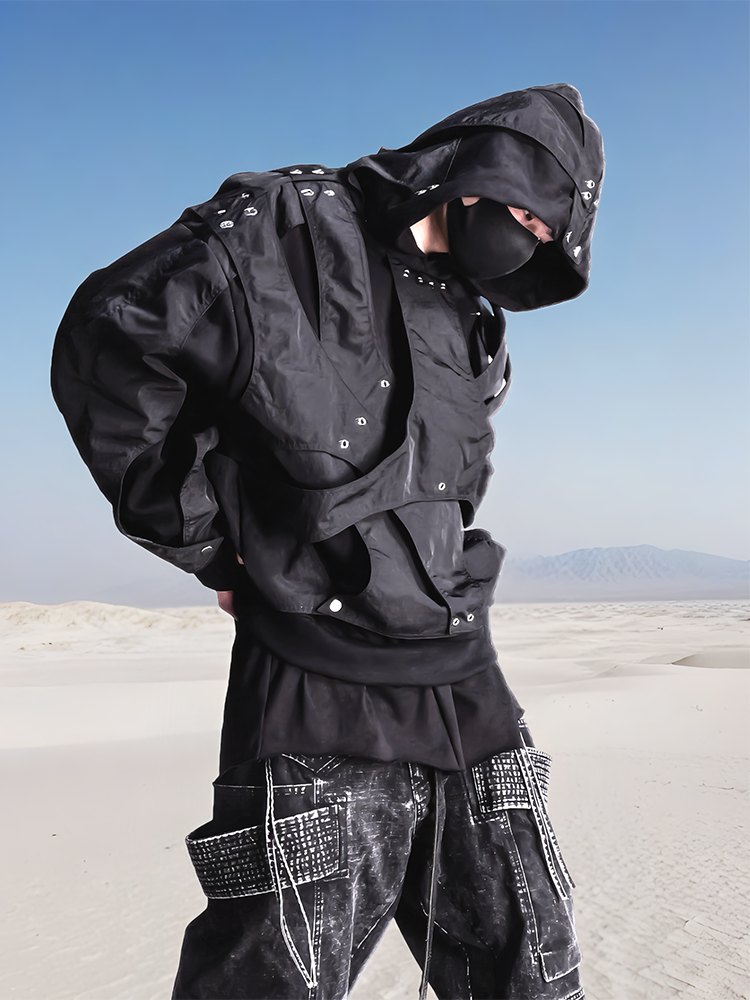 Hollow Layered Oversize Pullover Hoodie WN14001