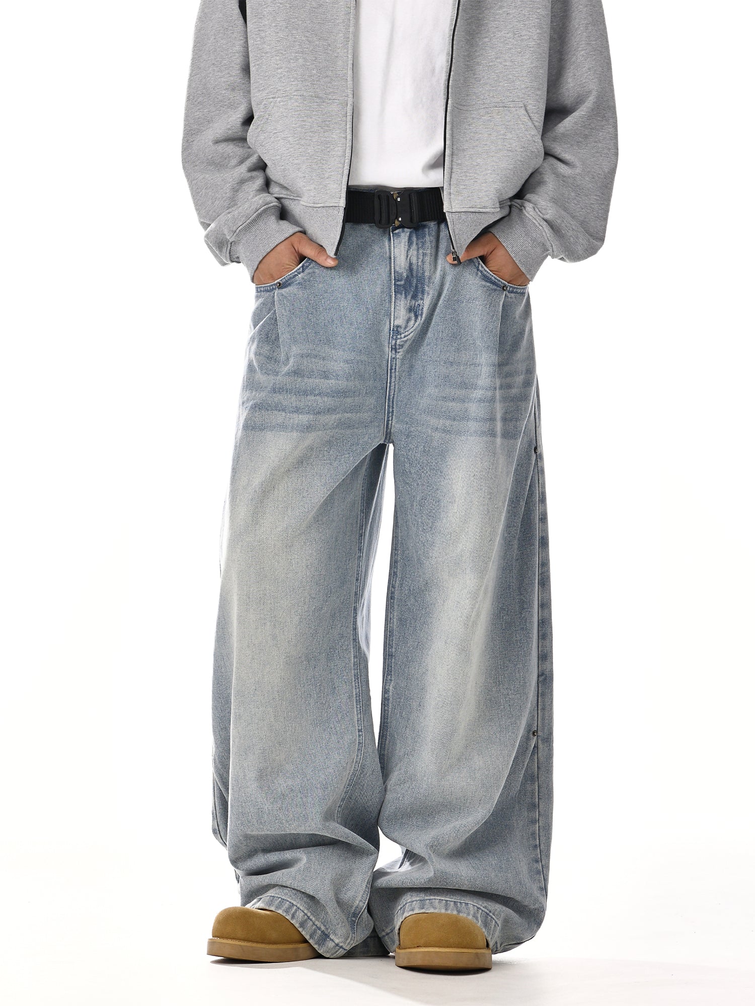 Washed Wide-Leg Straight Denim Jeans WN15119