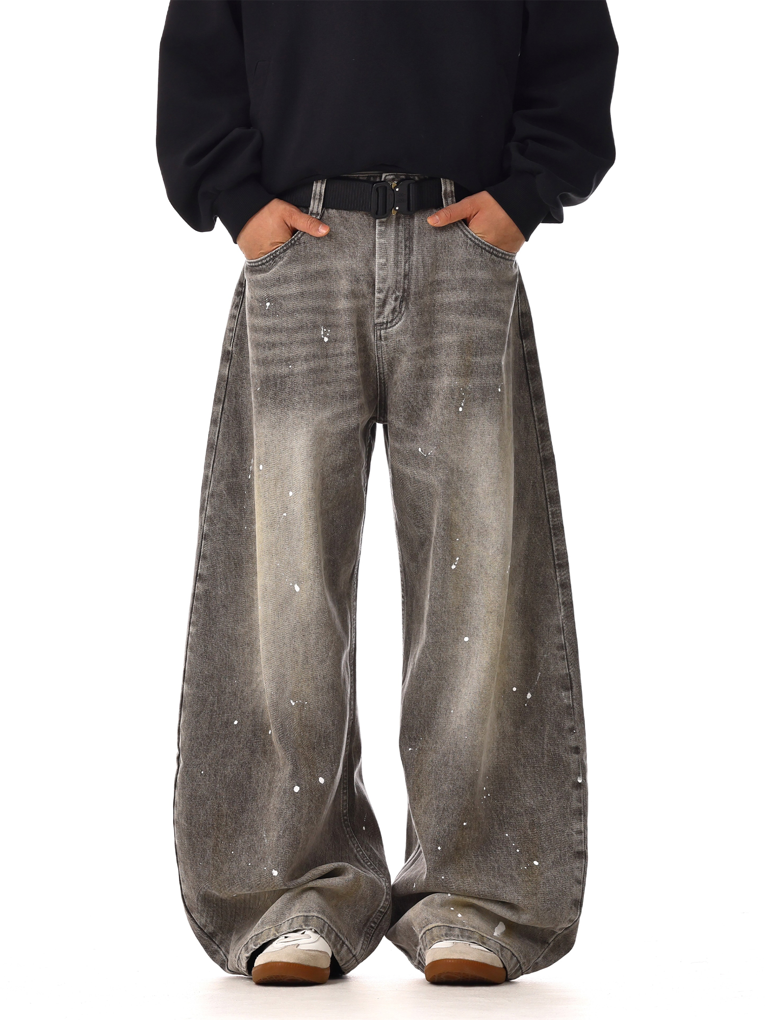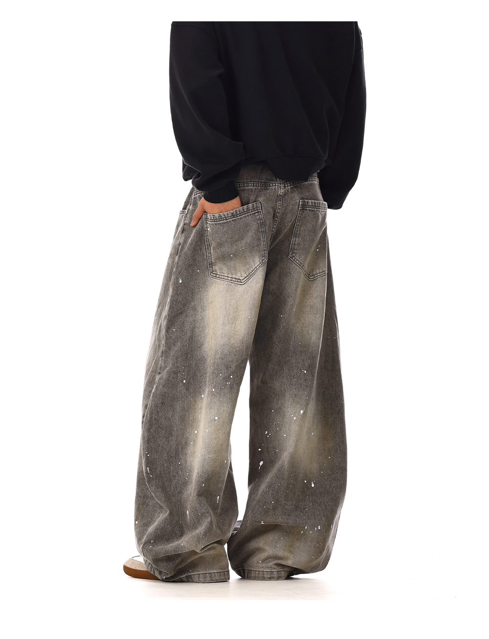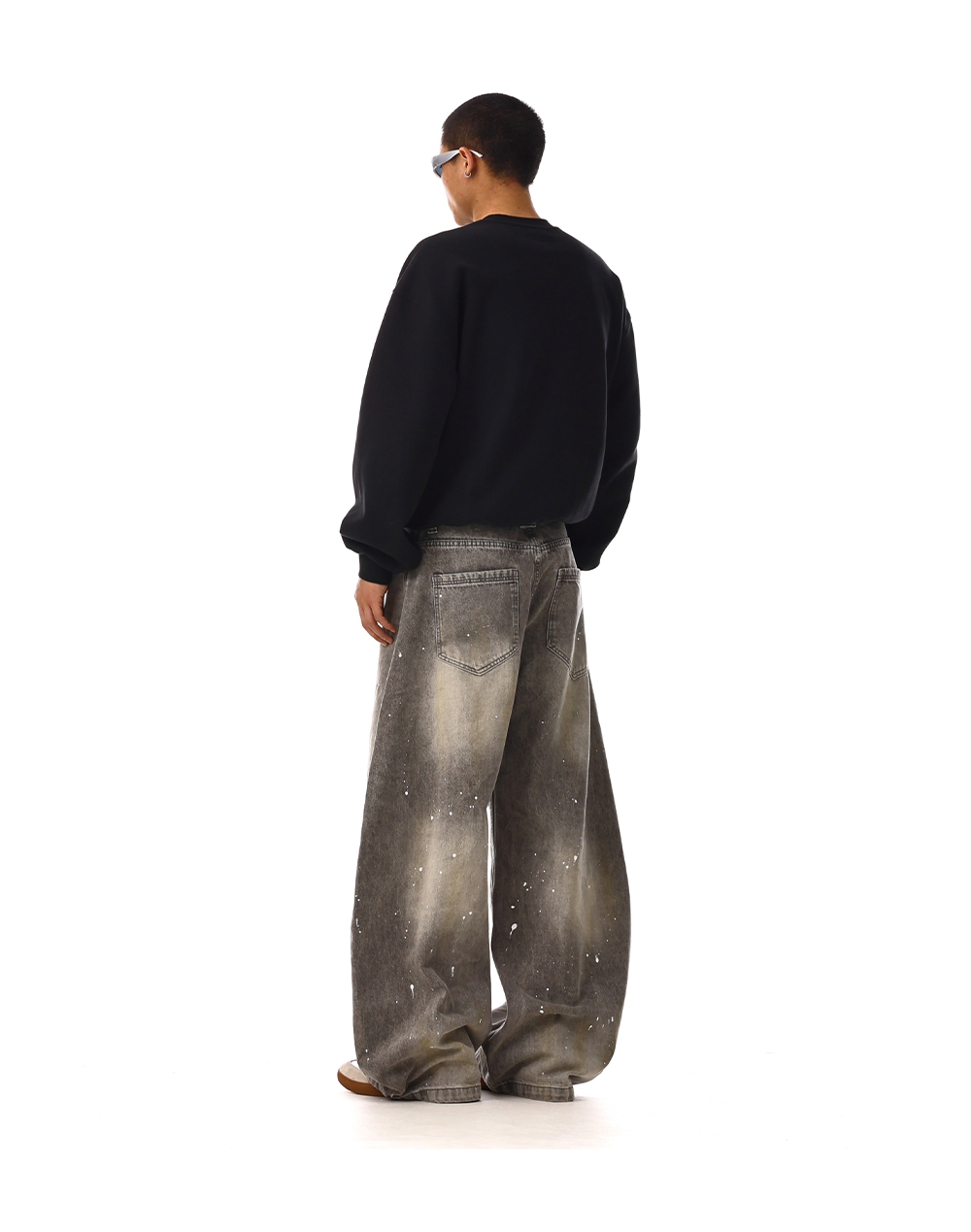 Washed Paint Wide-Leg Denim Jeans WN15131