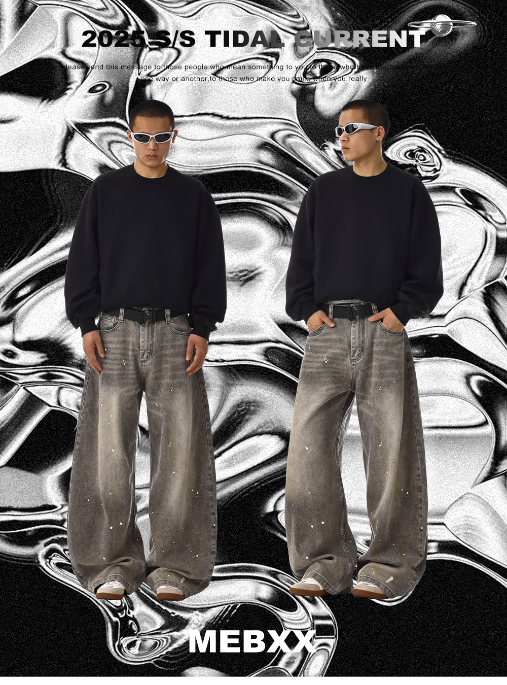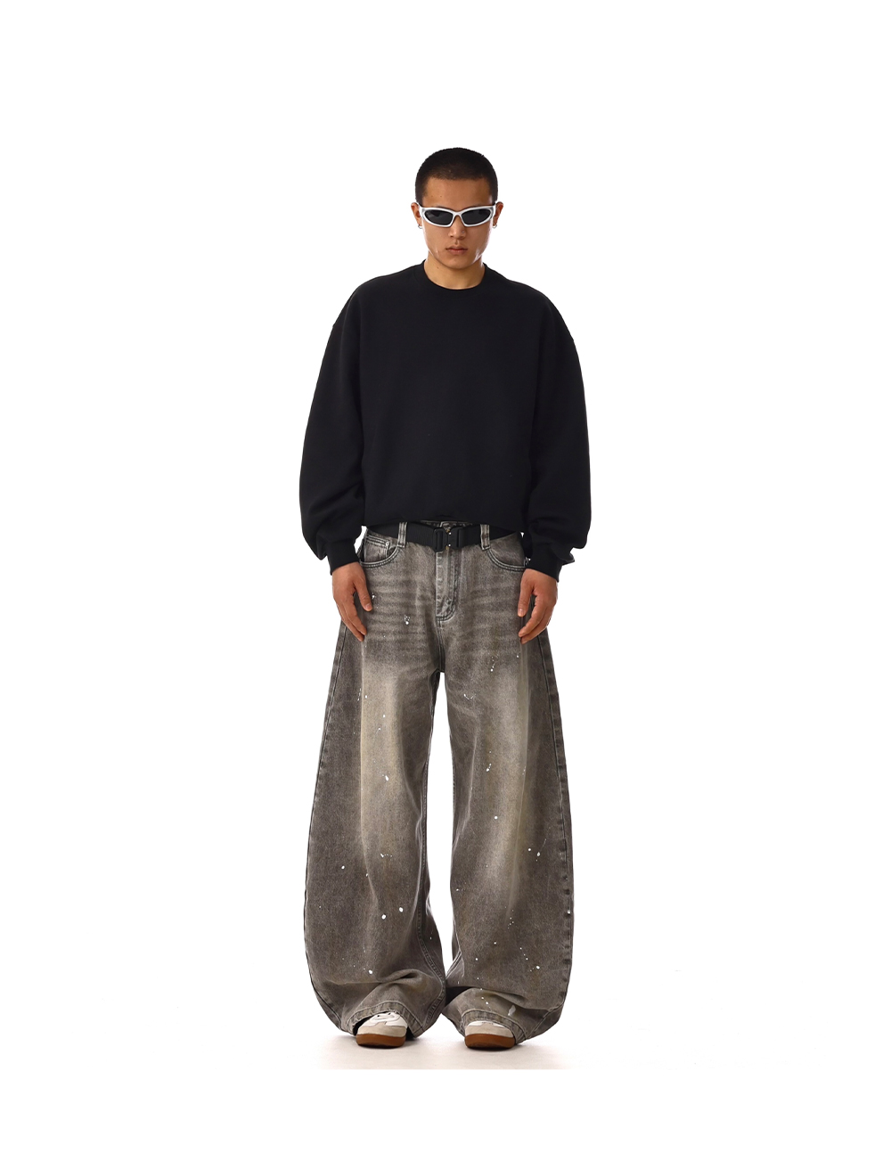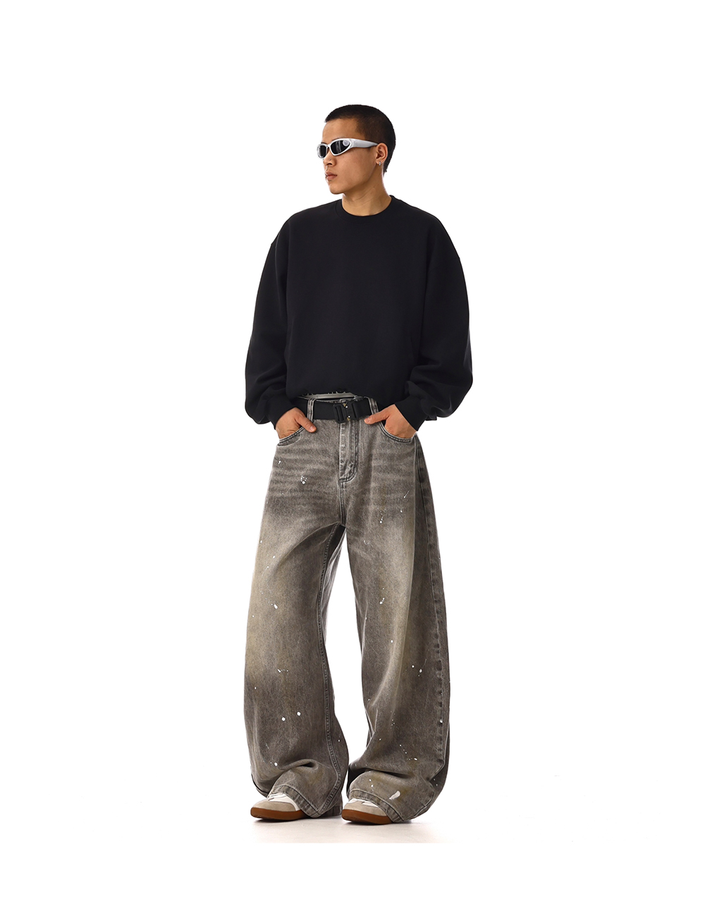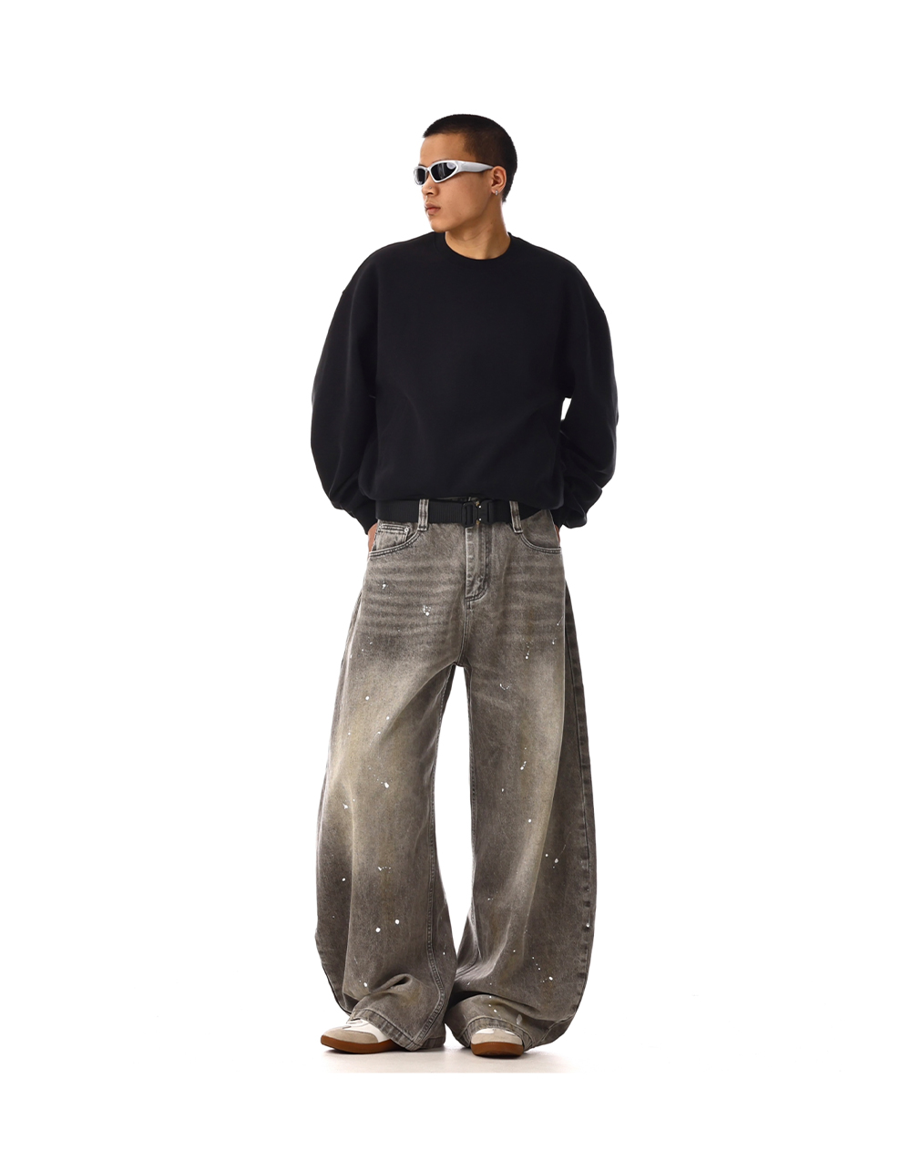 Washed Paint Wide-Leg Denim Jeans WN15131
