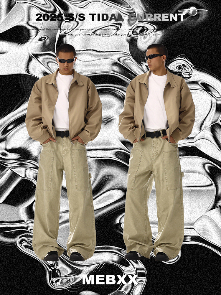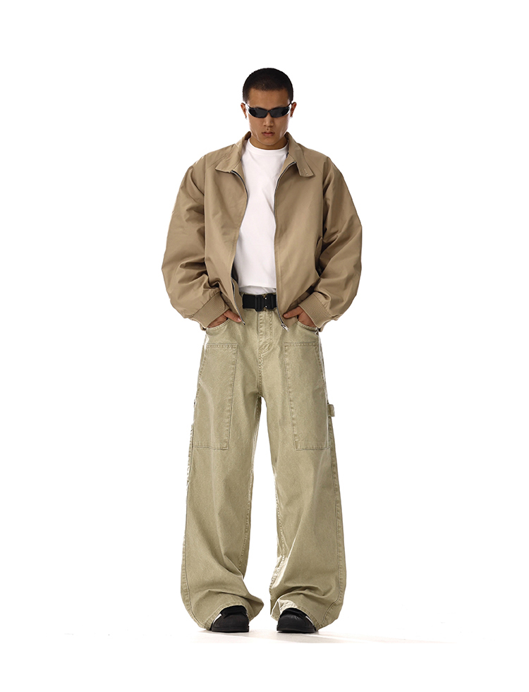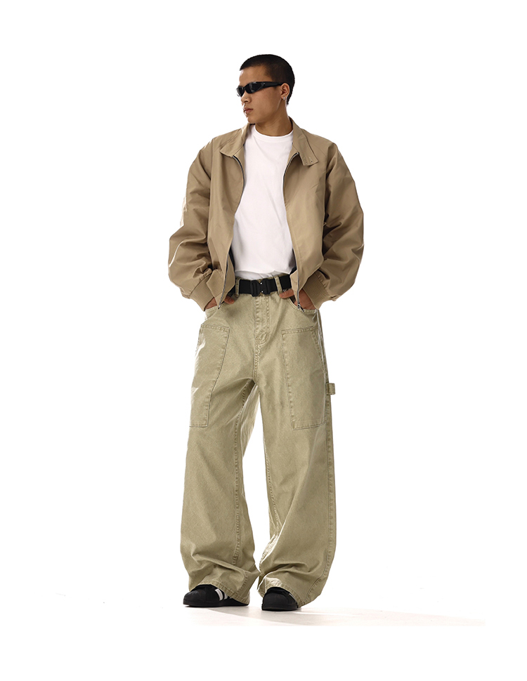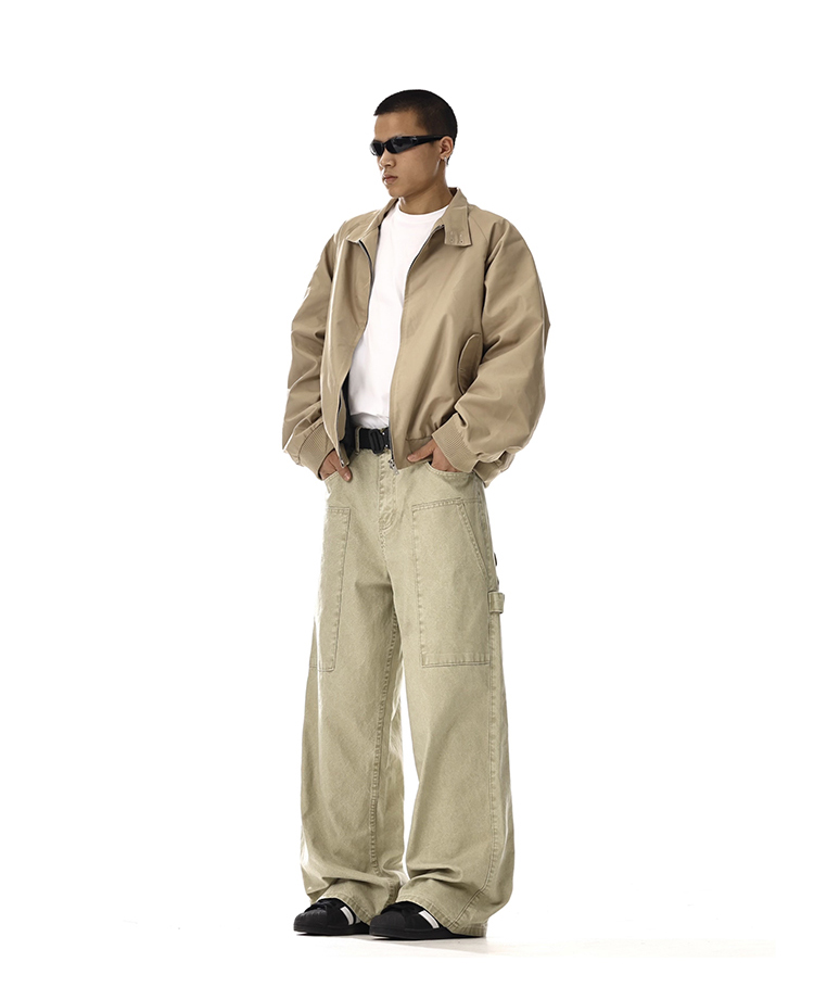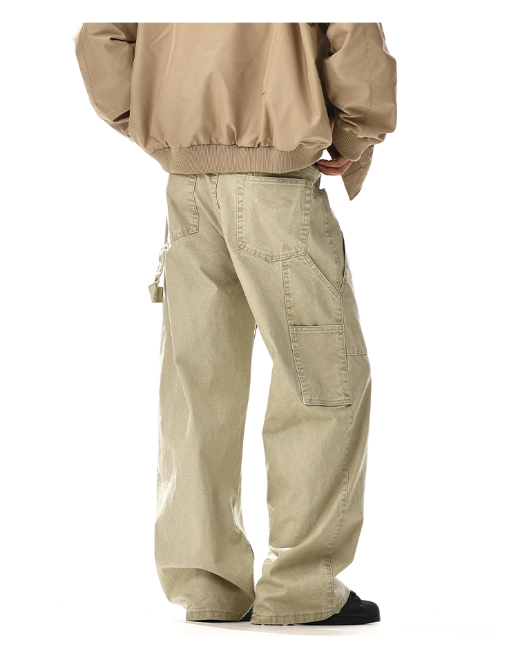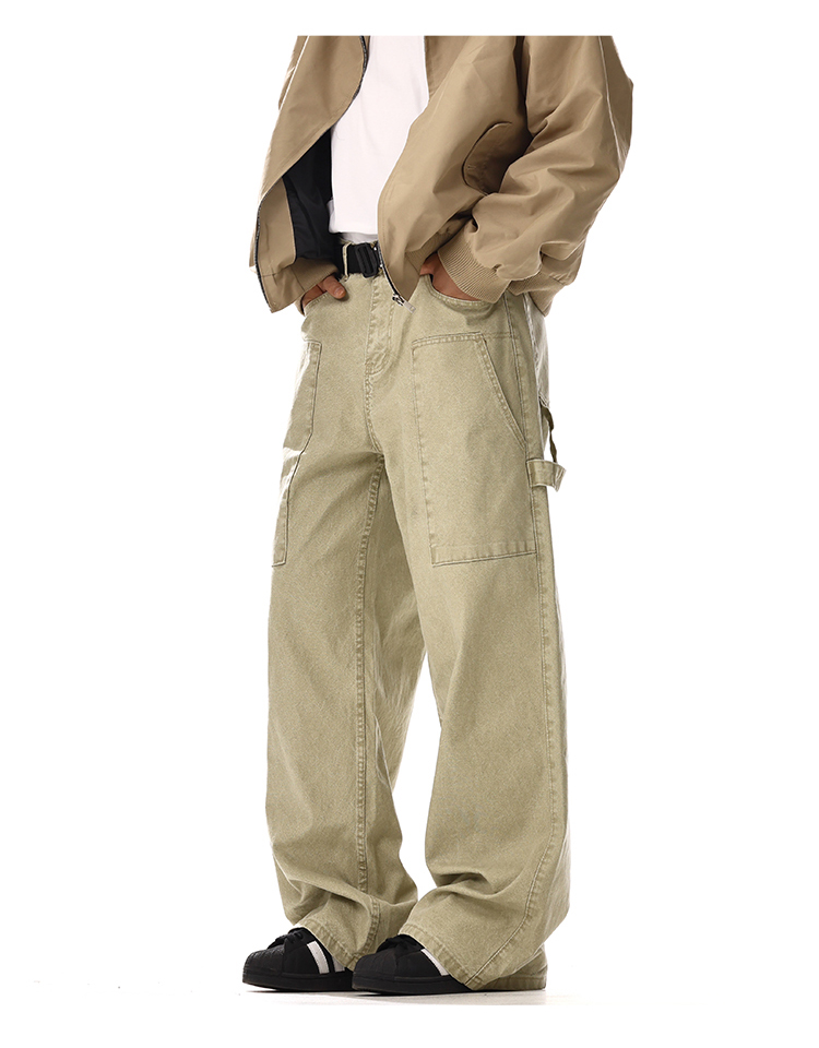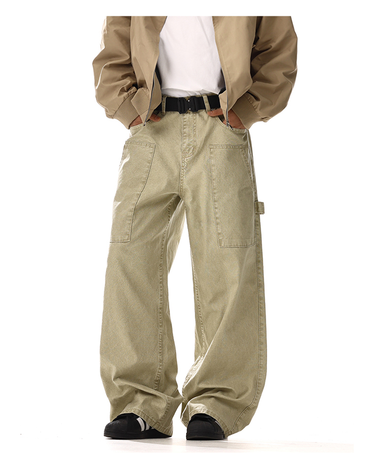Patchwork Washed Wide-Leg Straight Cargo Denim Jeans WN15134