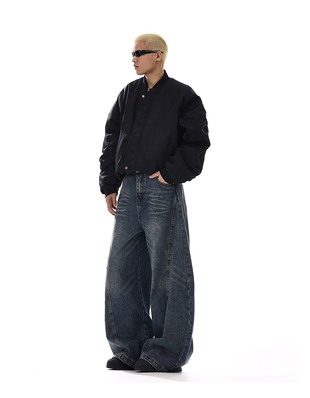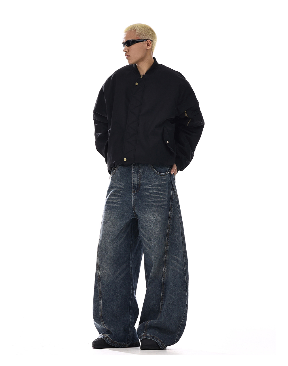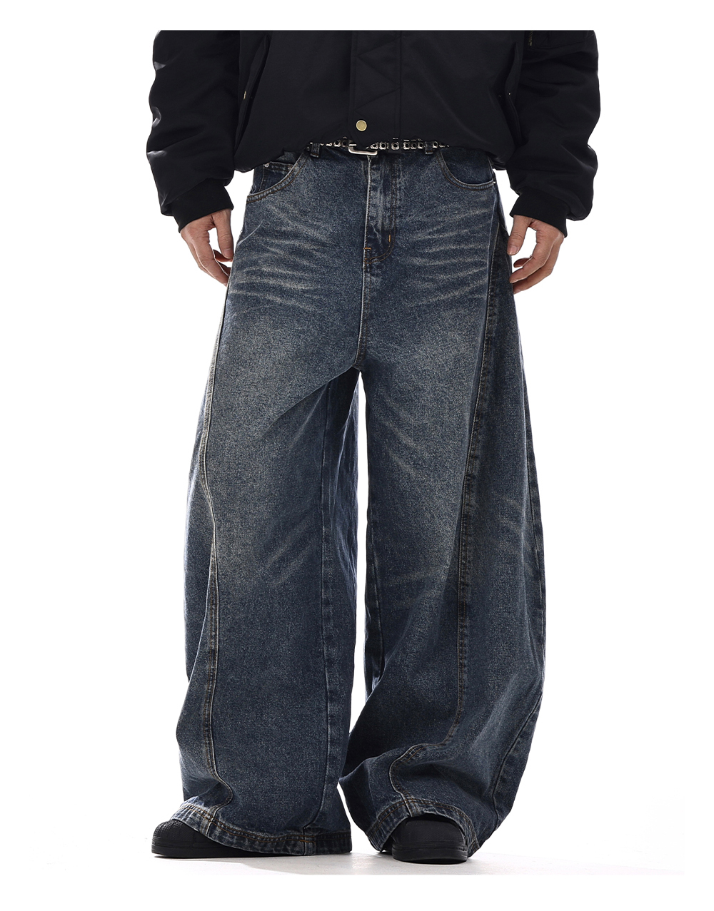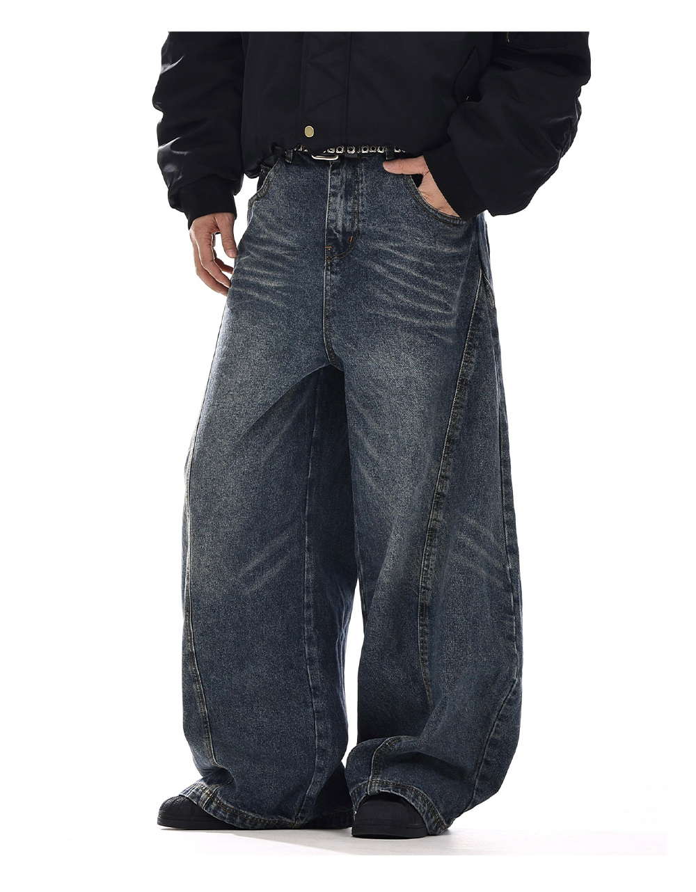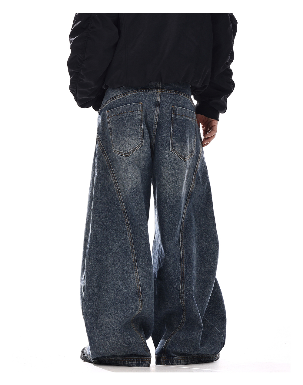 Wash Structured Wide-Leg Straight Denim Jeans WN15136
