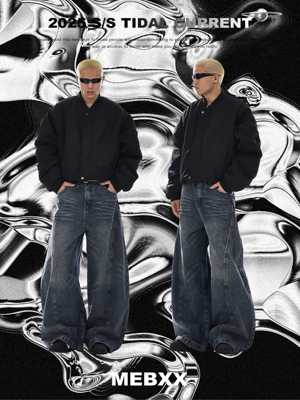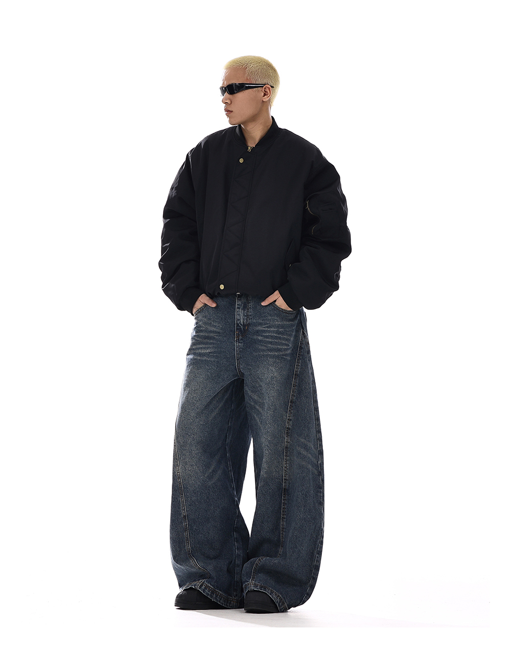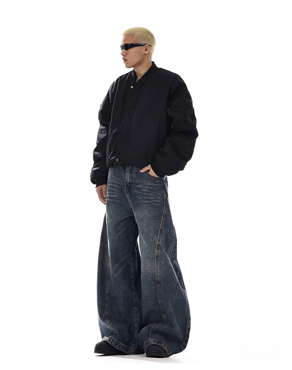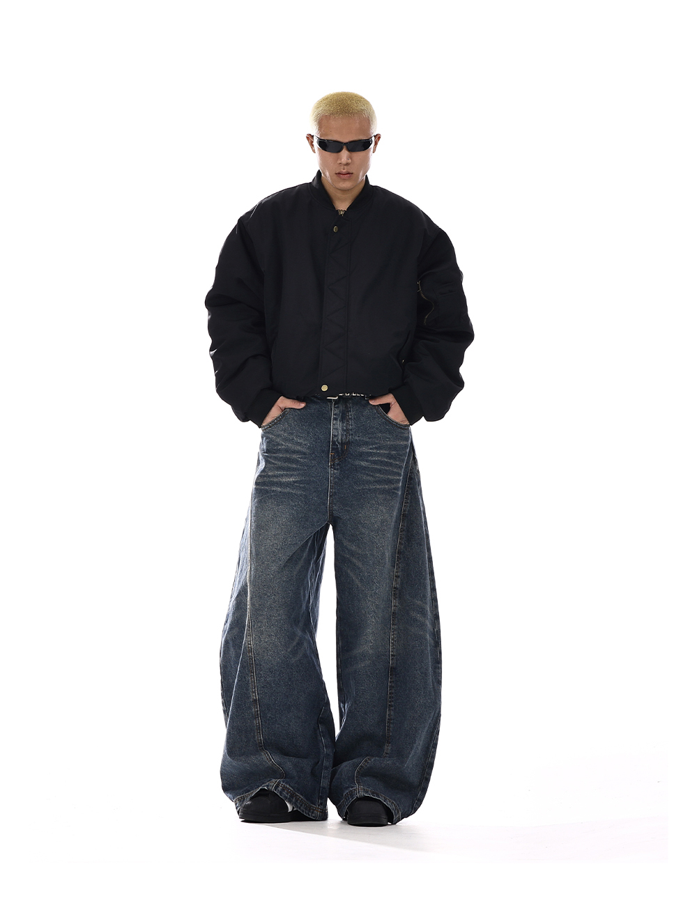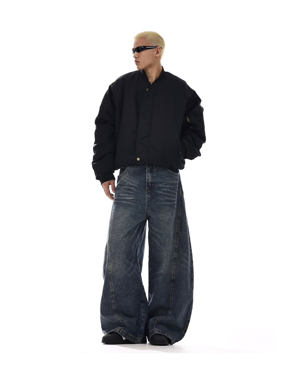 Wash Structured Wide-Leg Straight Denim Jeans WN15136