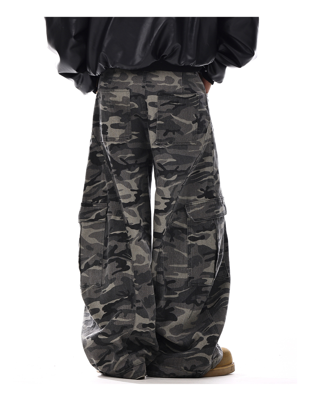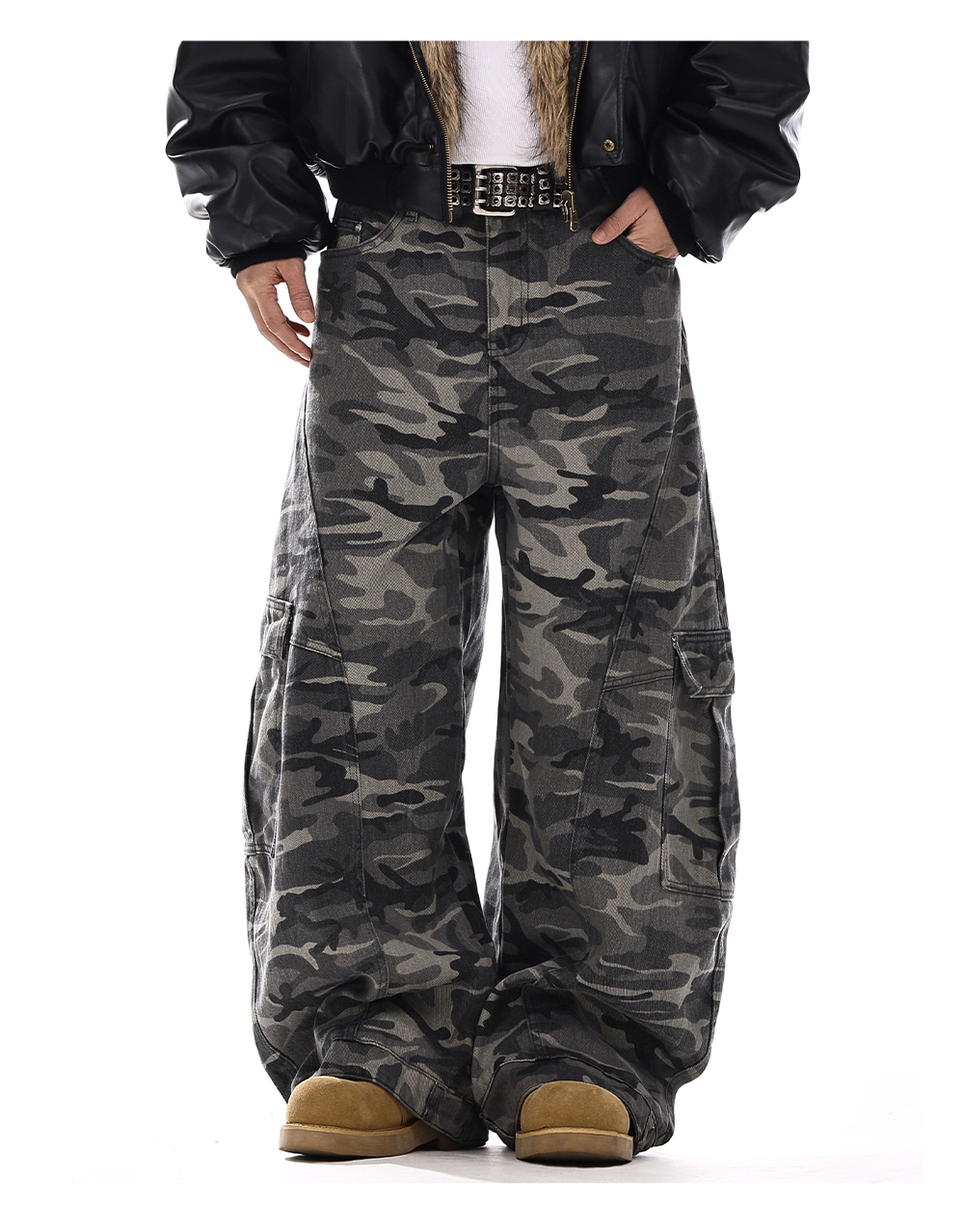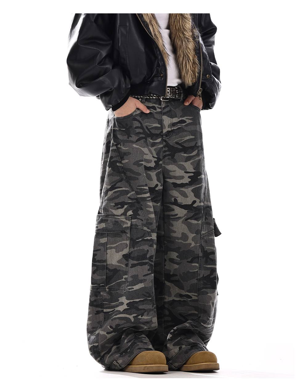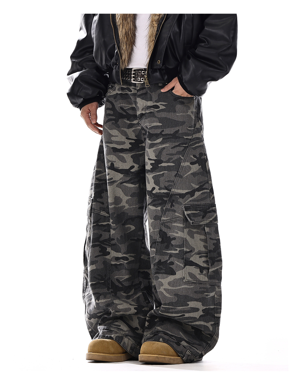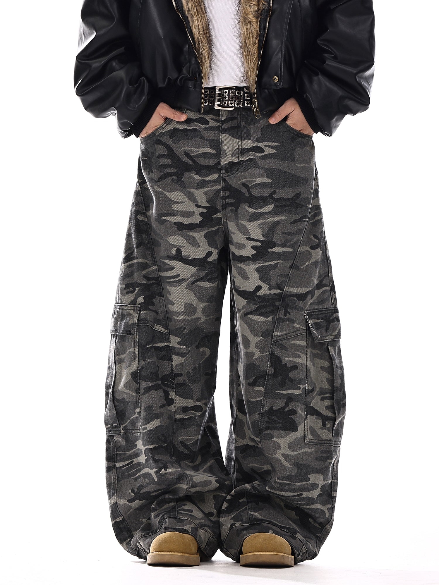Camouflage Wide-Leg Cargo Denim Jeans WN15139