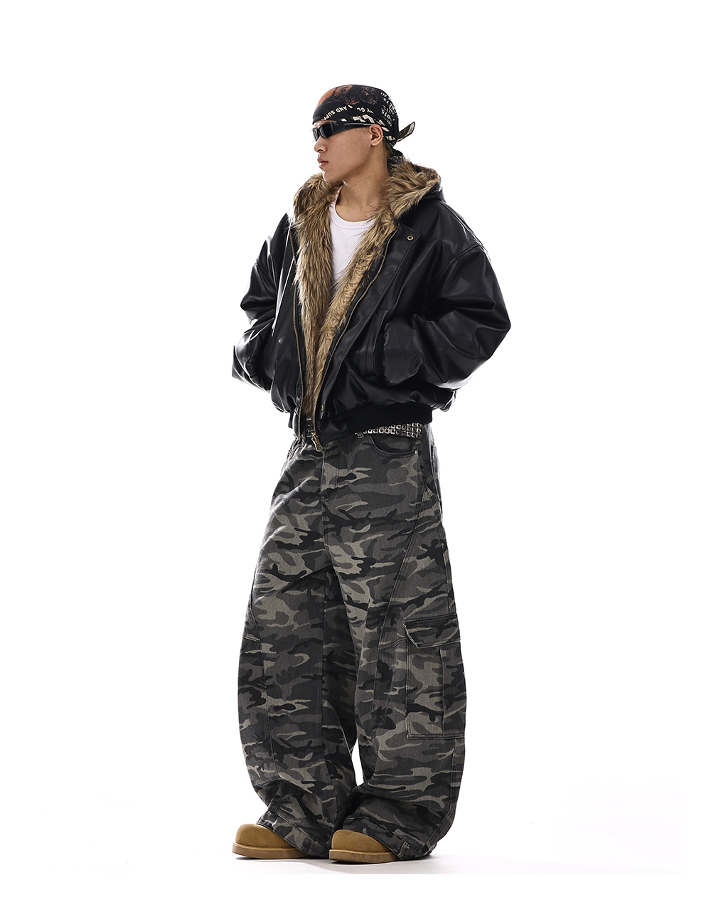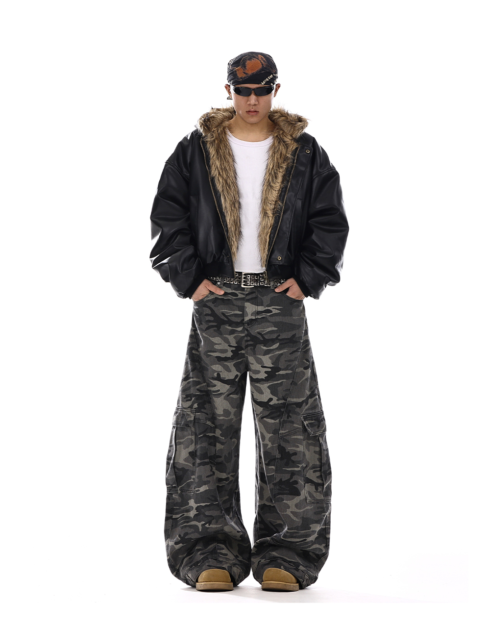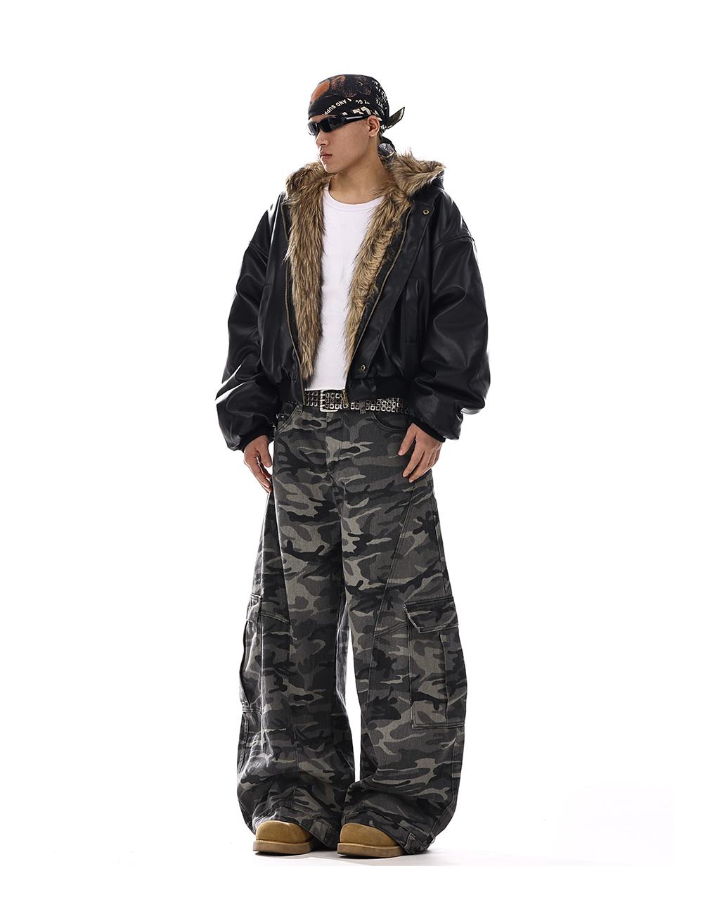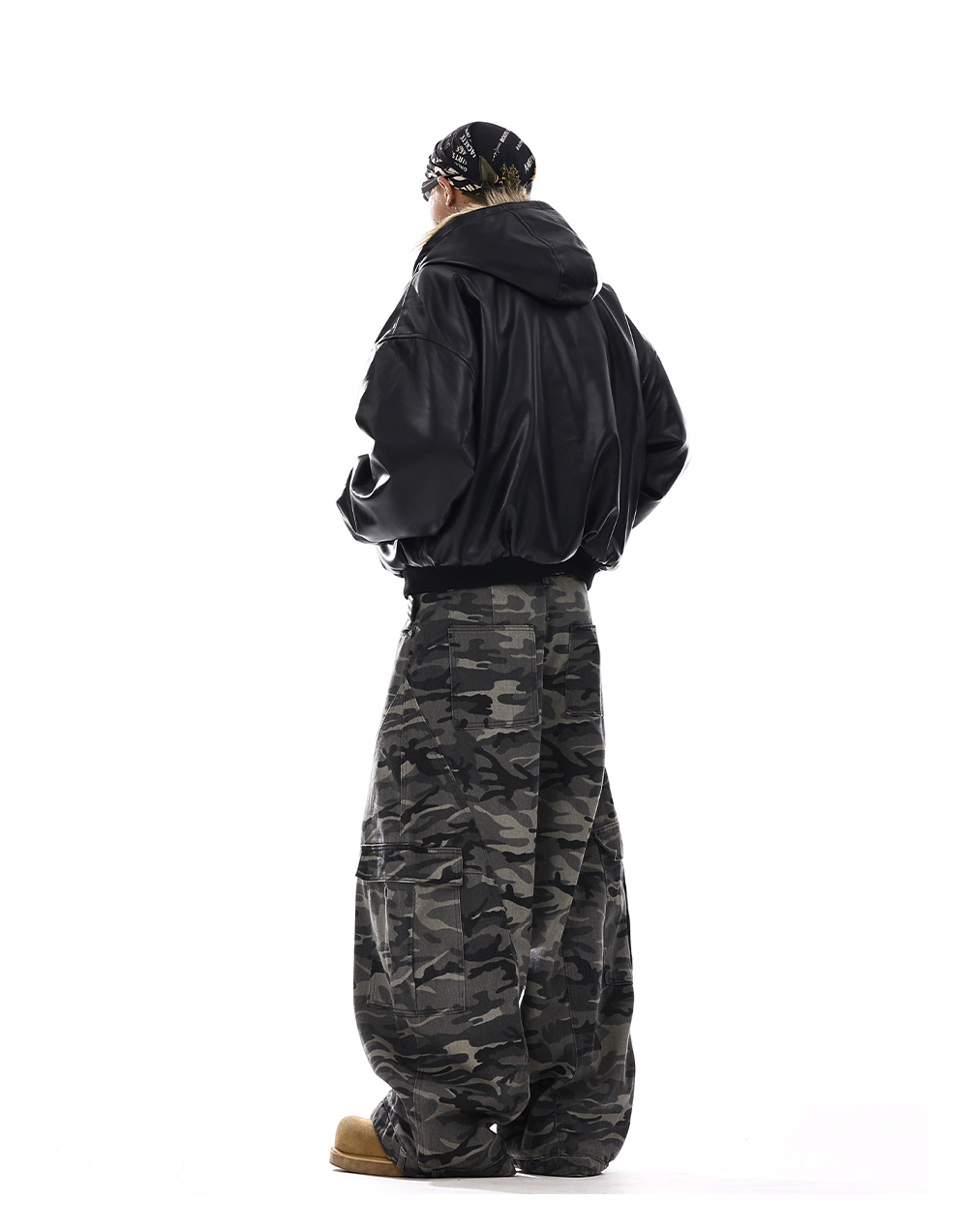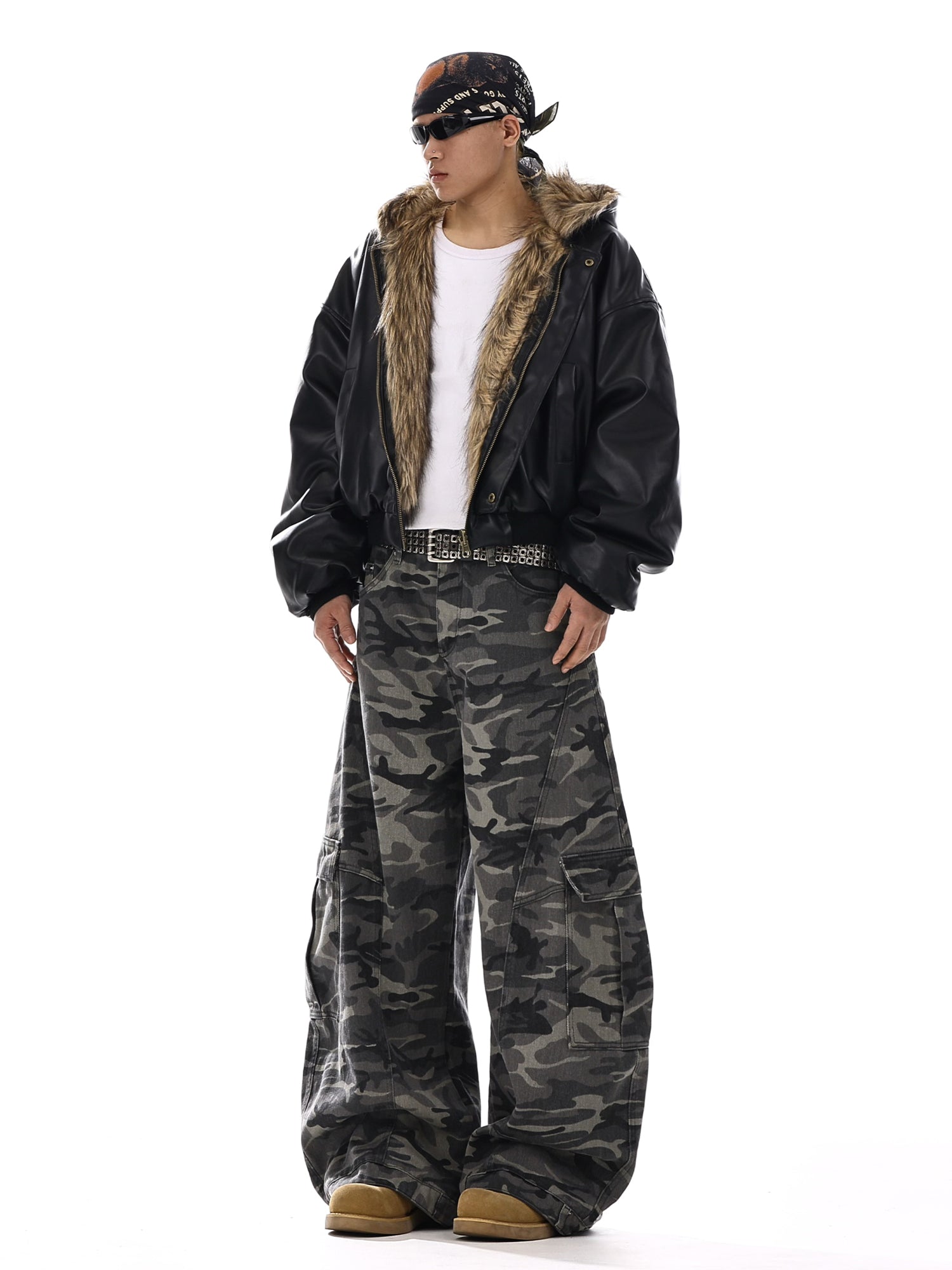 Camouflage Wide-Leg Cargo Denim Jeans WN15139