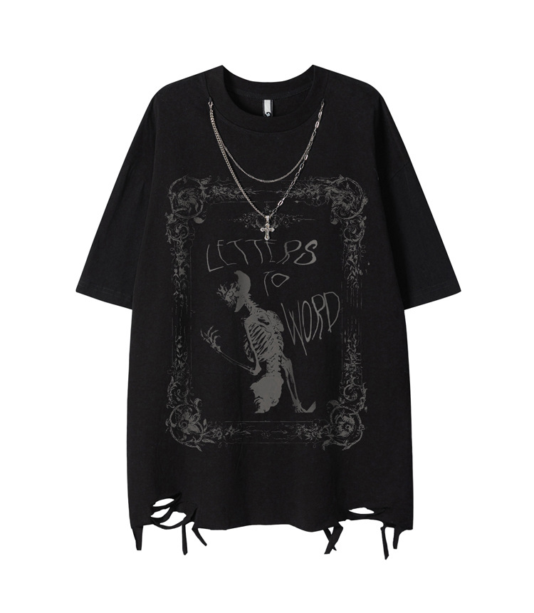 Oversize Damage Chain Short Sleeve T-Shirt WN16506
