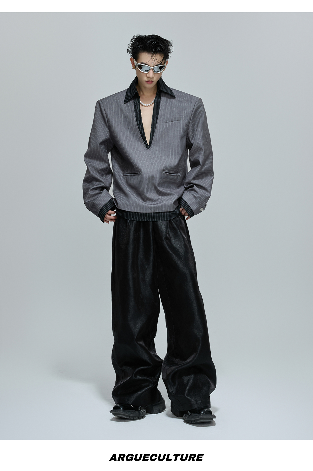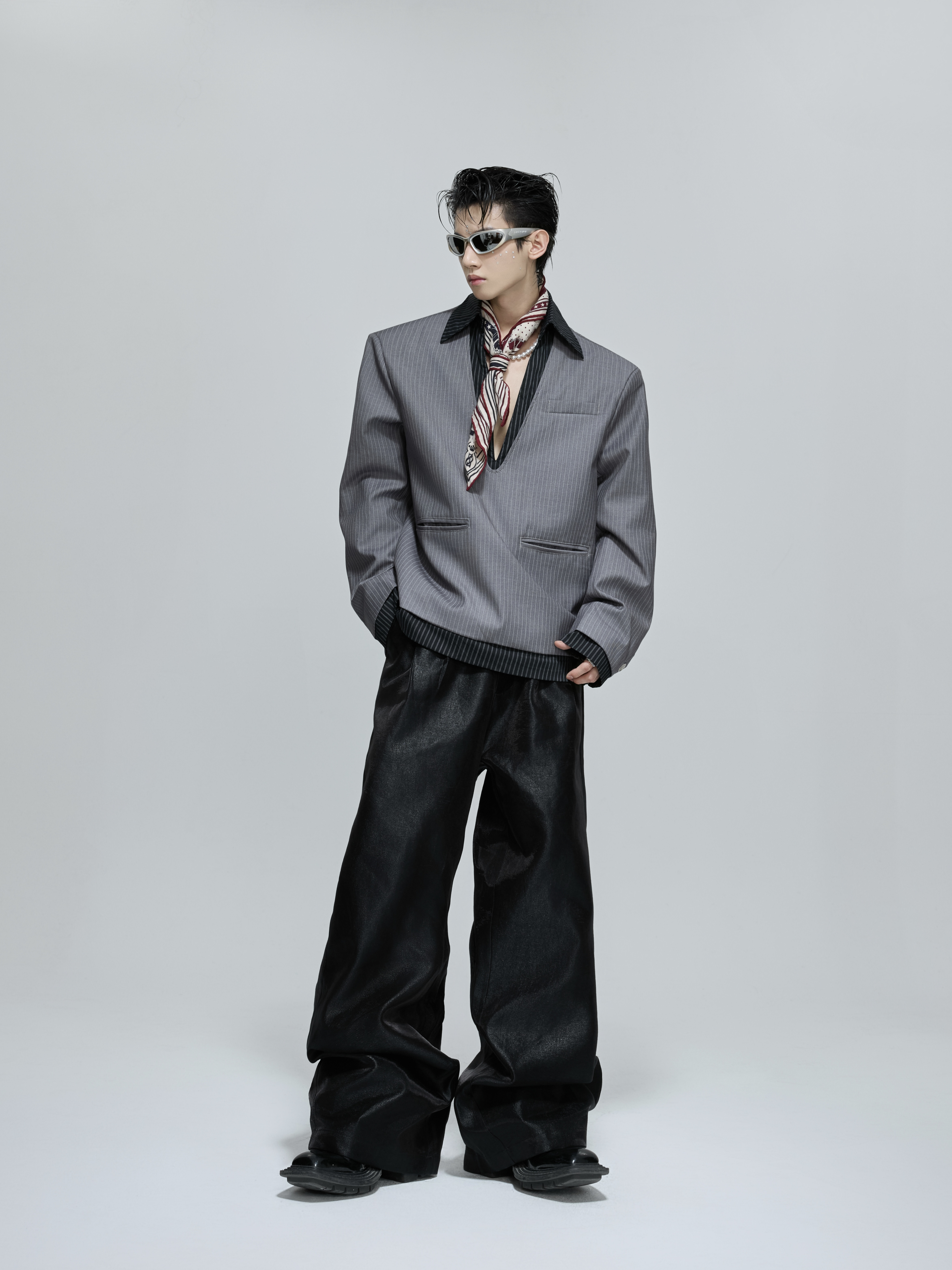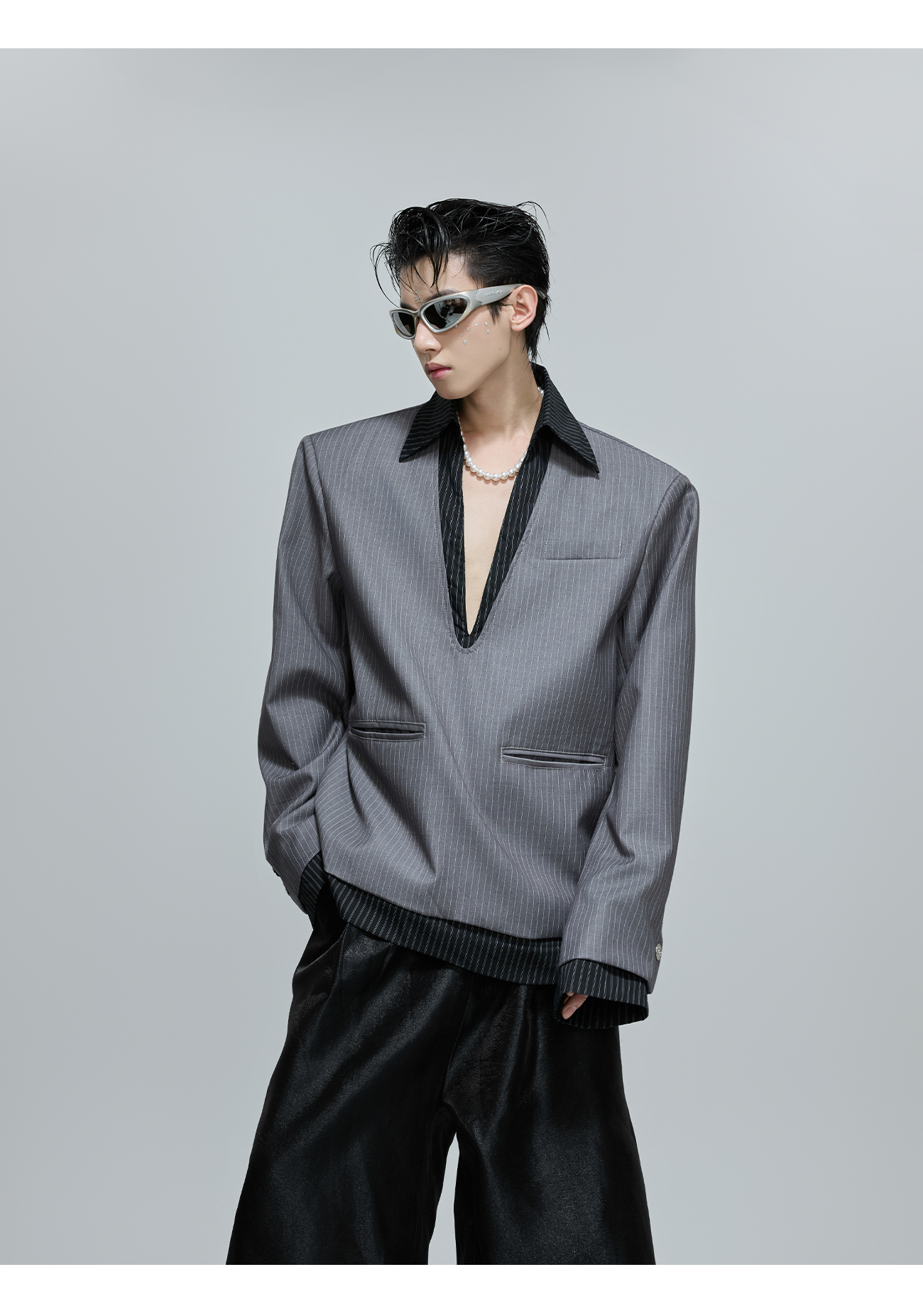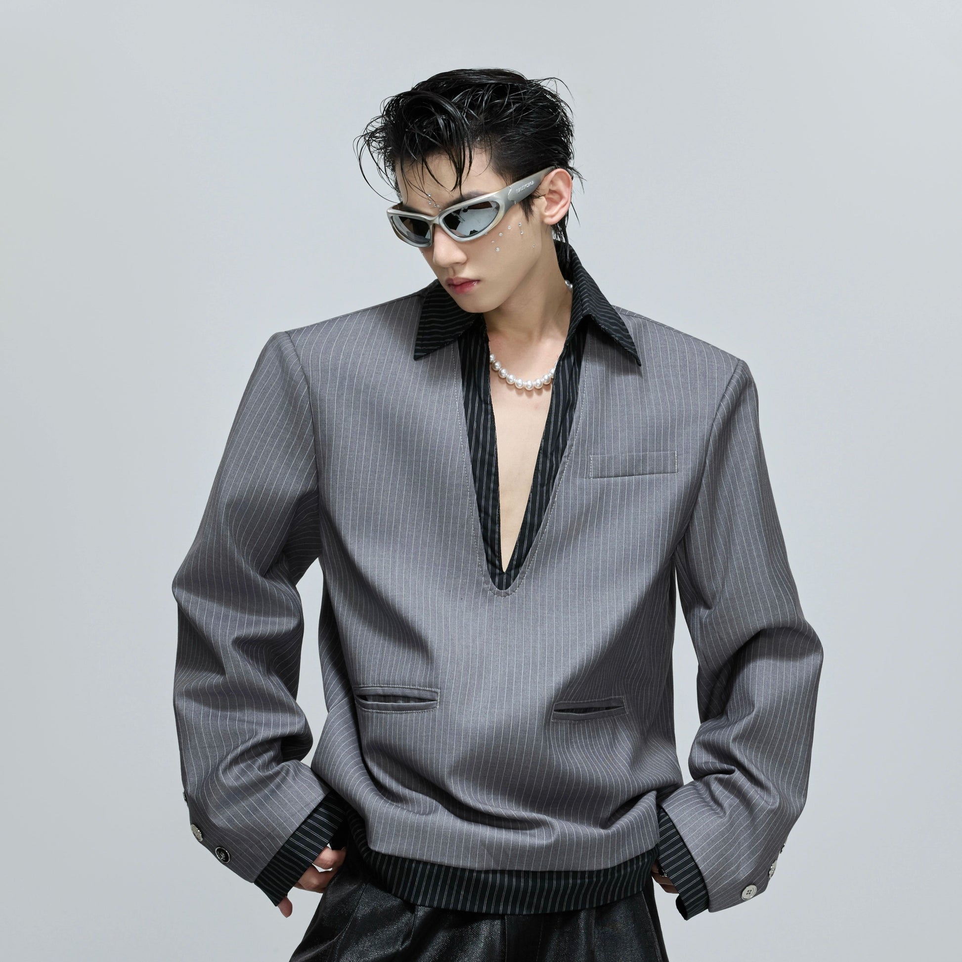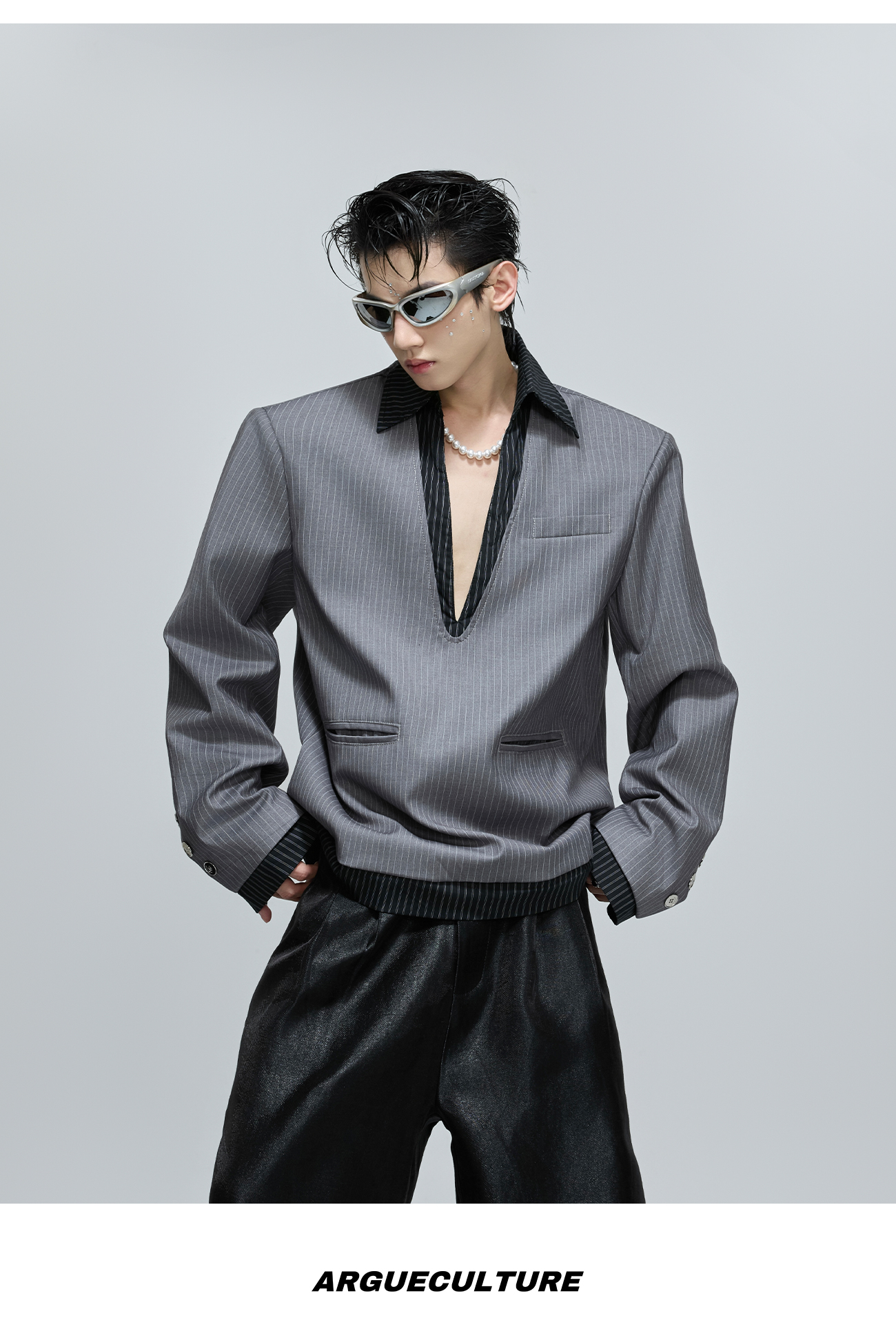 V-Neck Striped Shoulder-Pad Polo Shirt WN21689