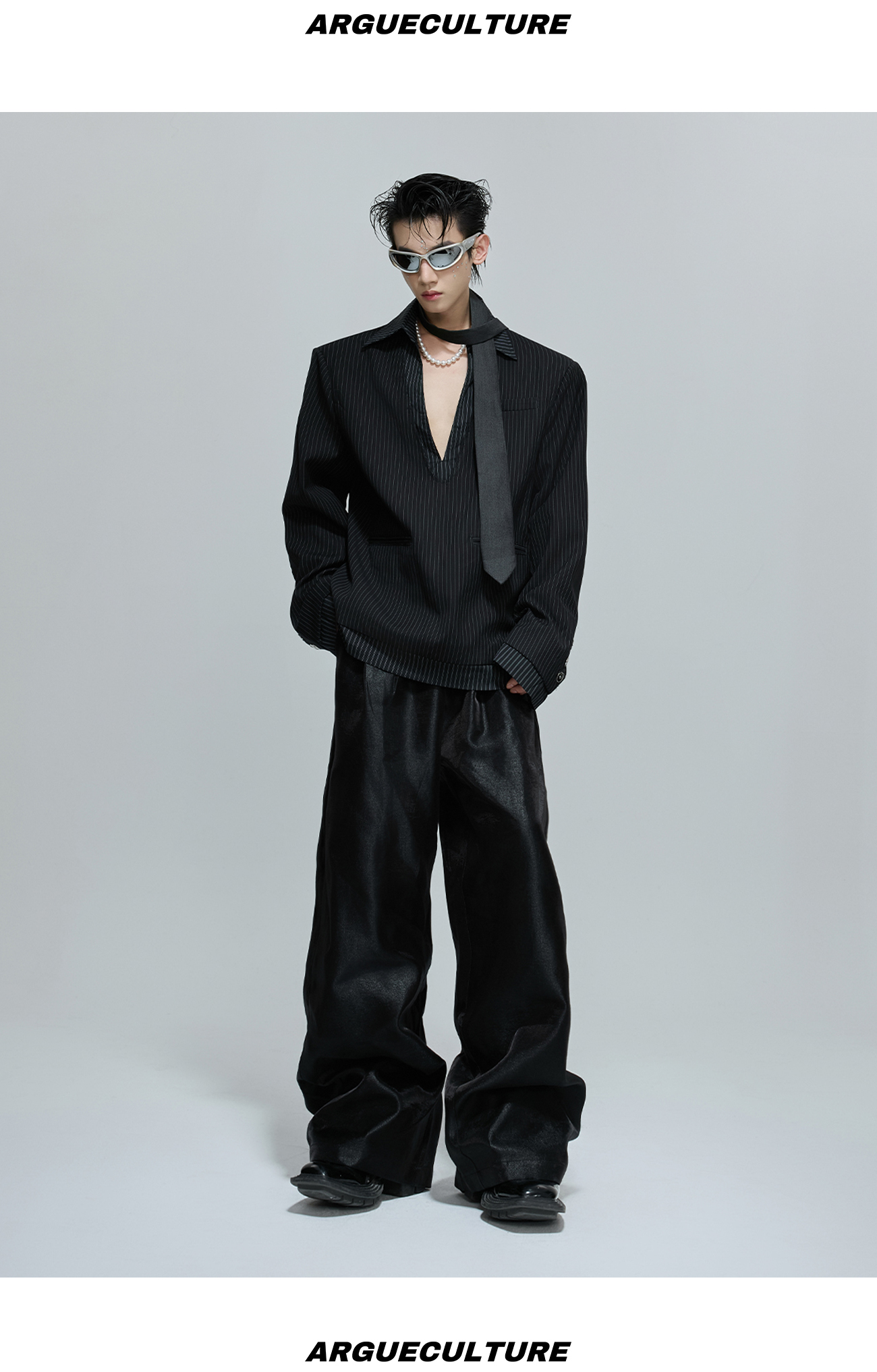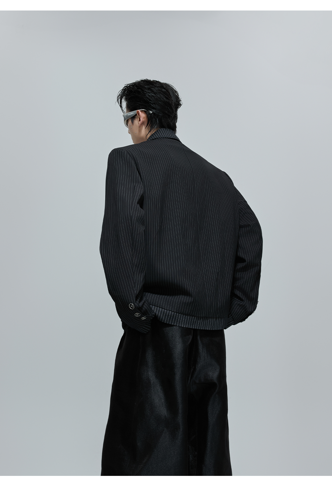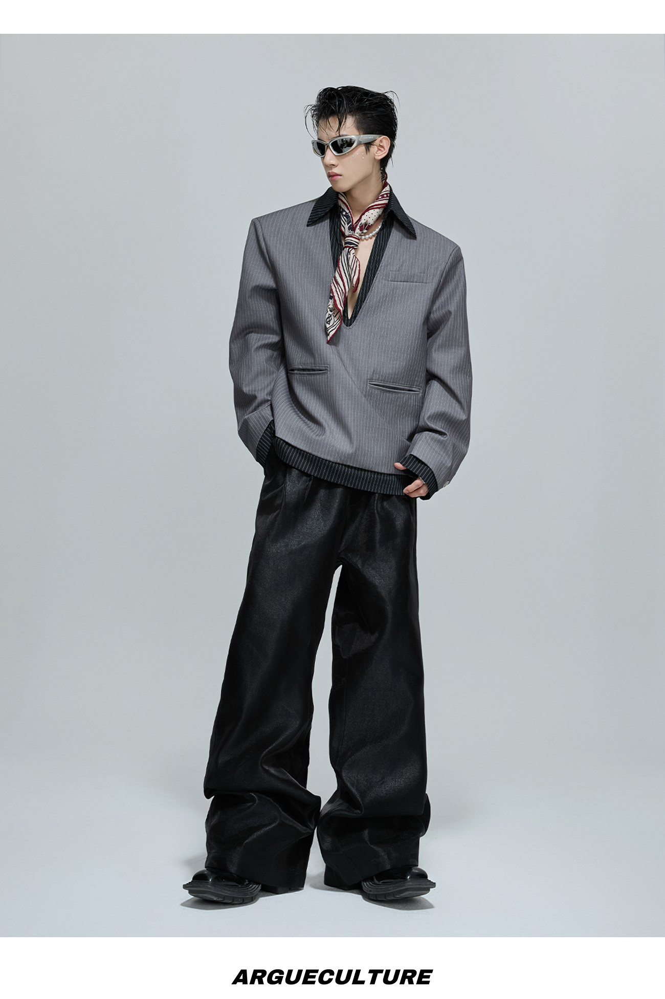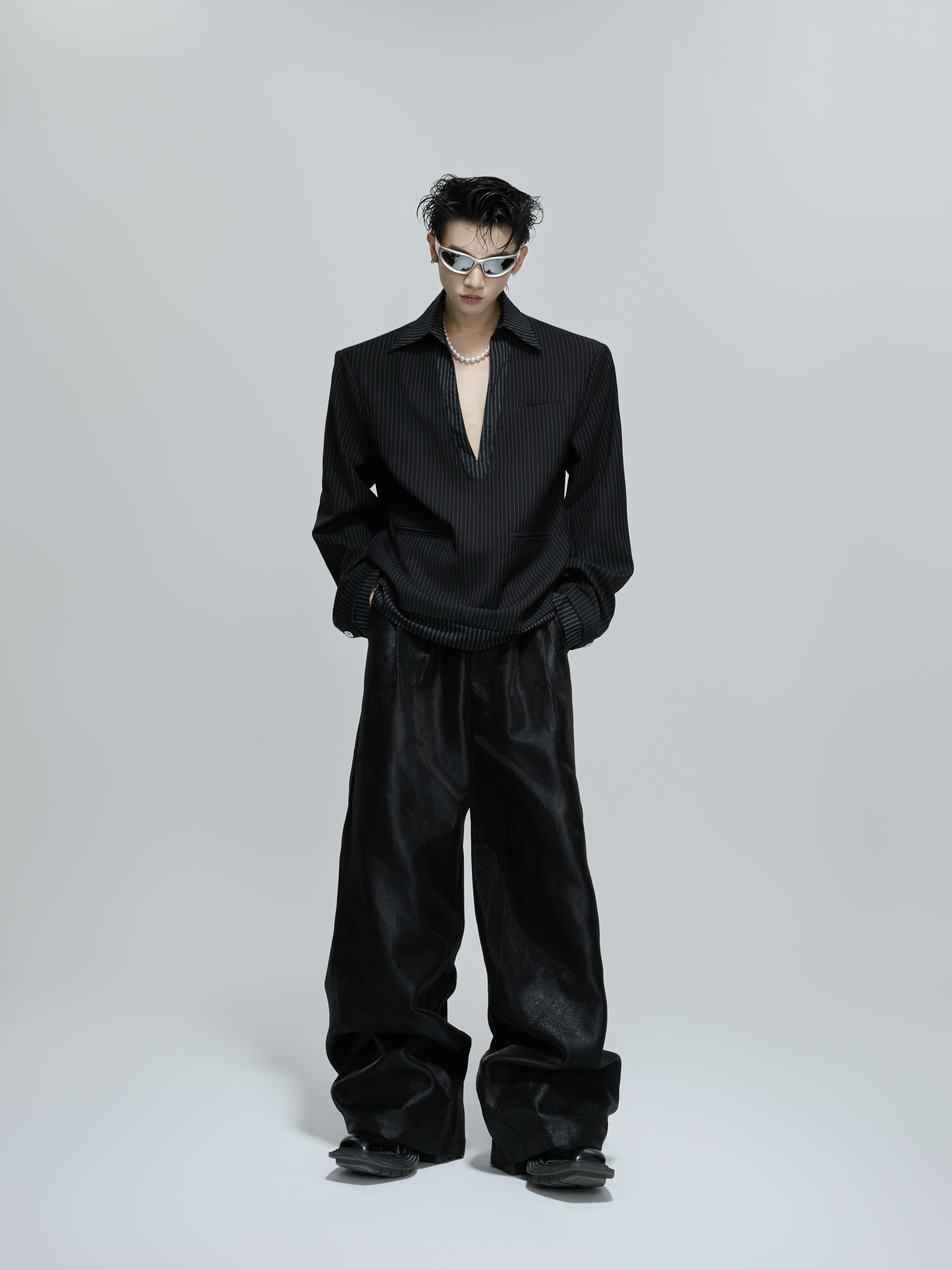 V-Neck Striped Shoulder-Pad Polo Shirt WN21689