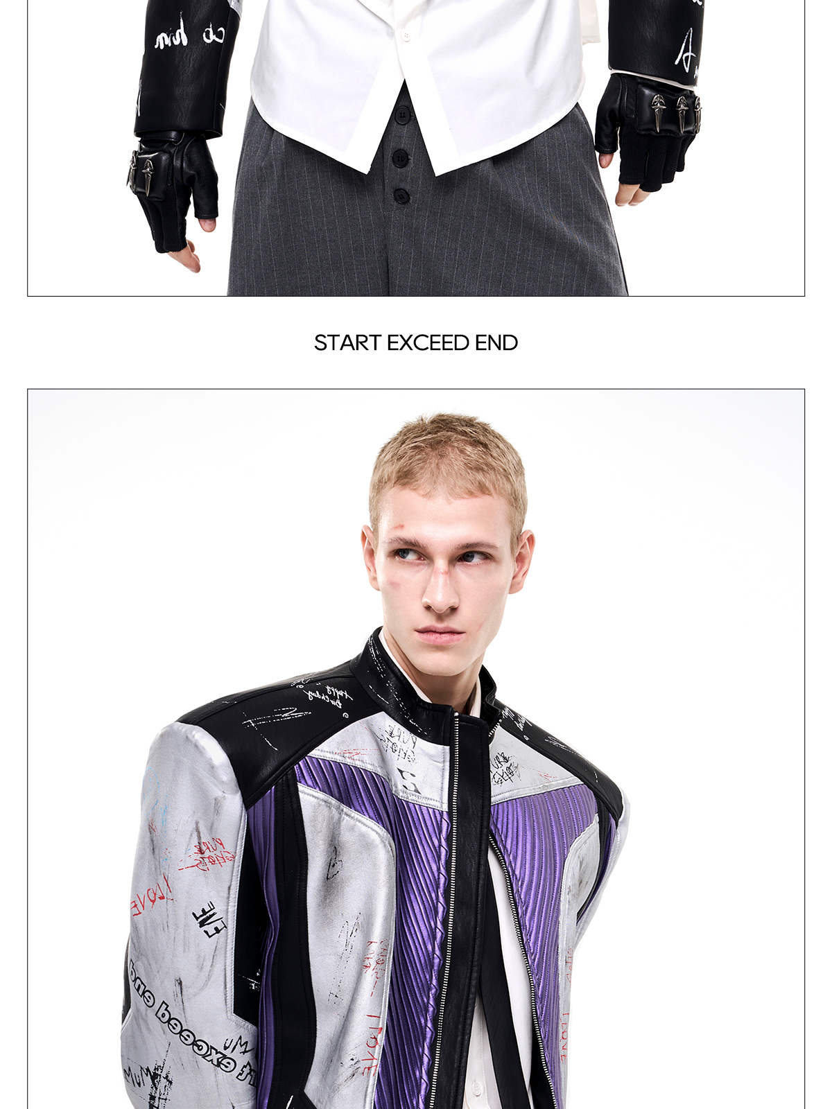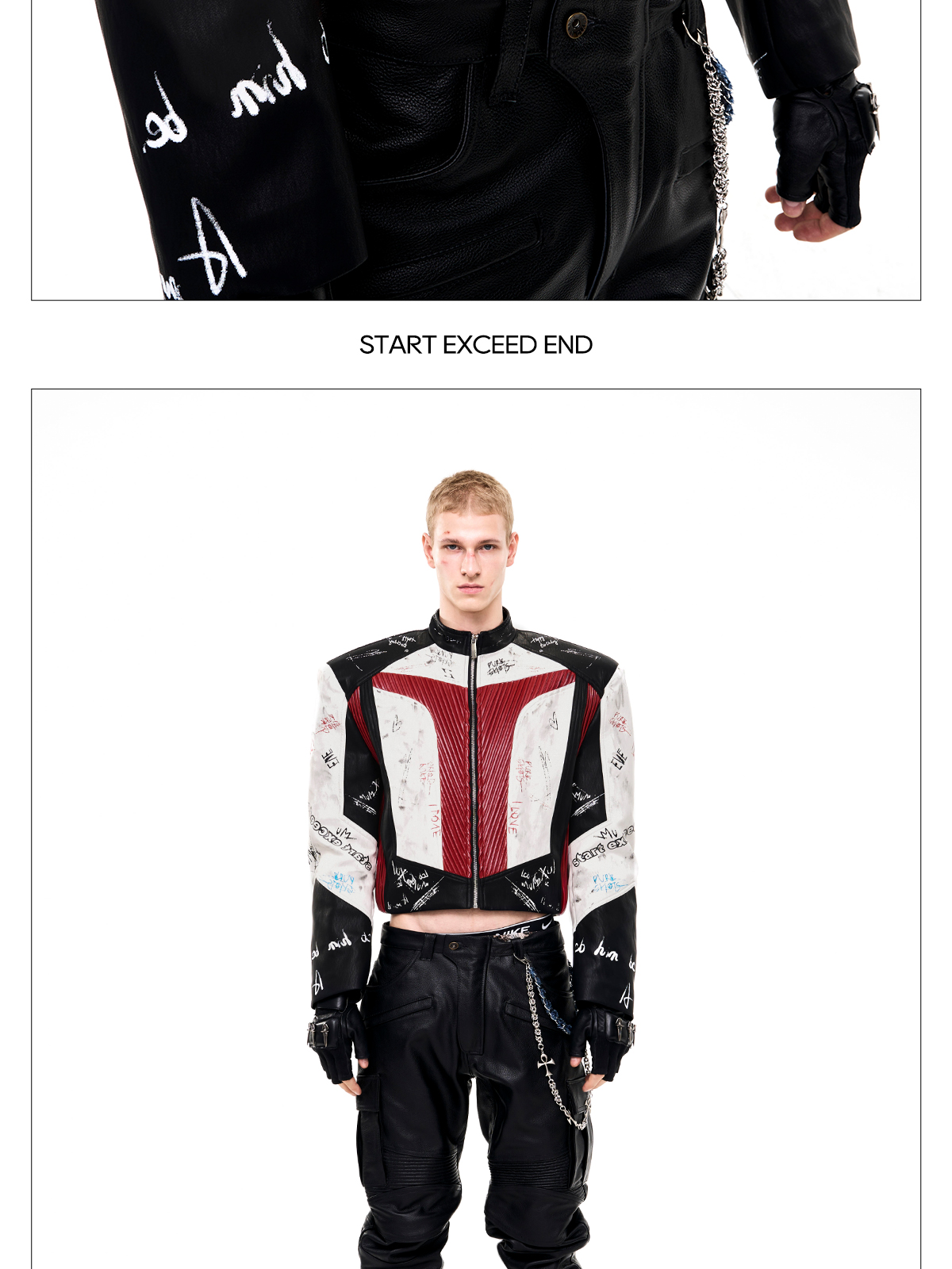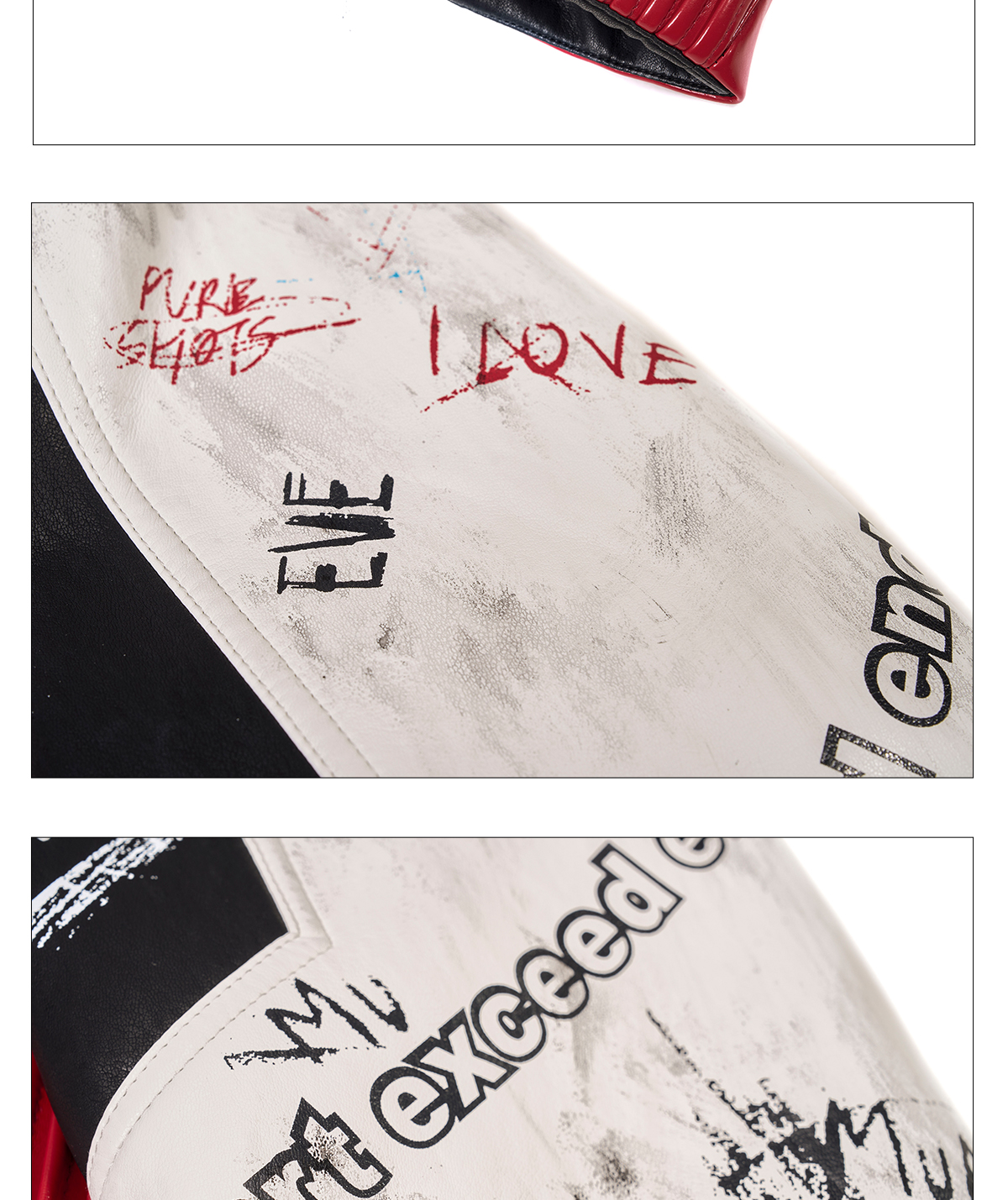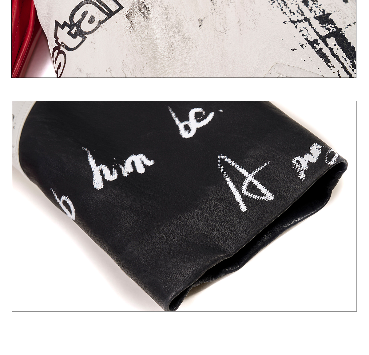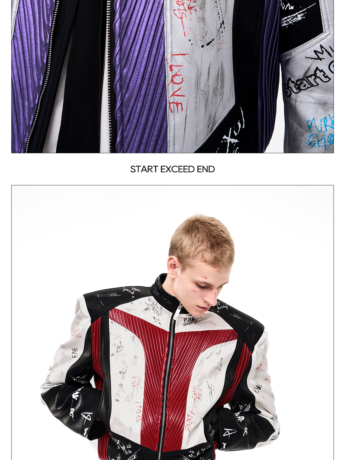 Graffiti Logo Print Stand Neck Patchwork PU Leather Short Jacket WN21808