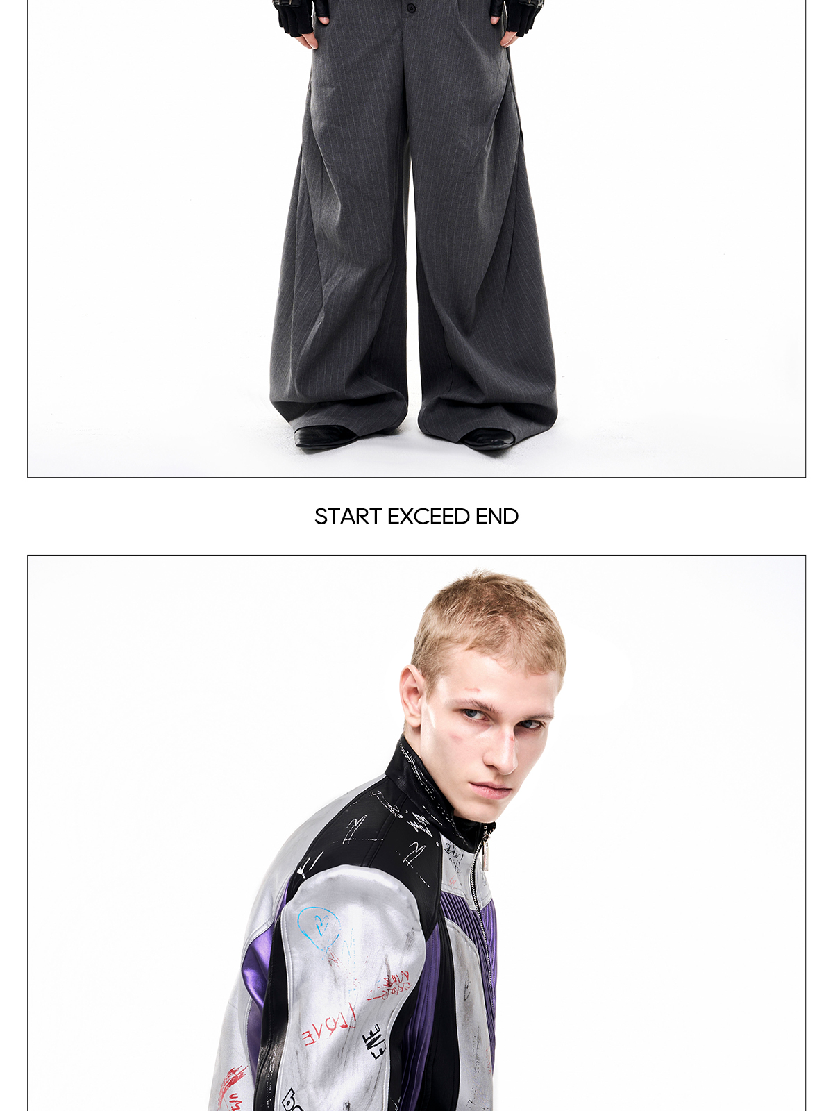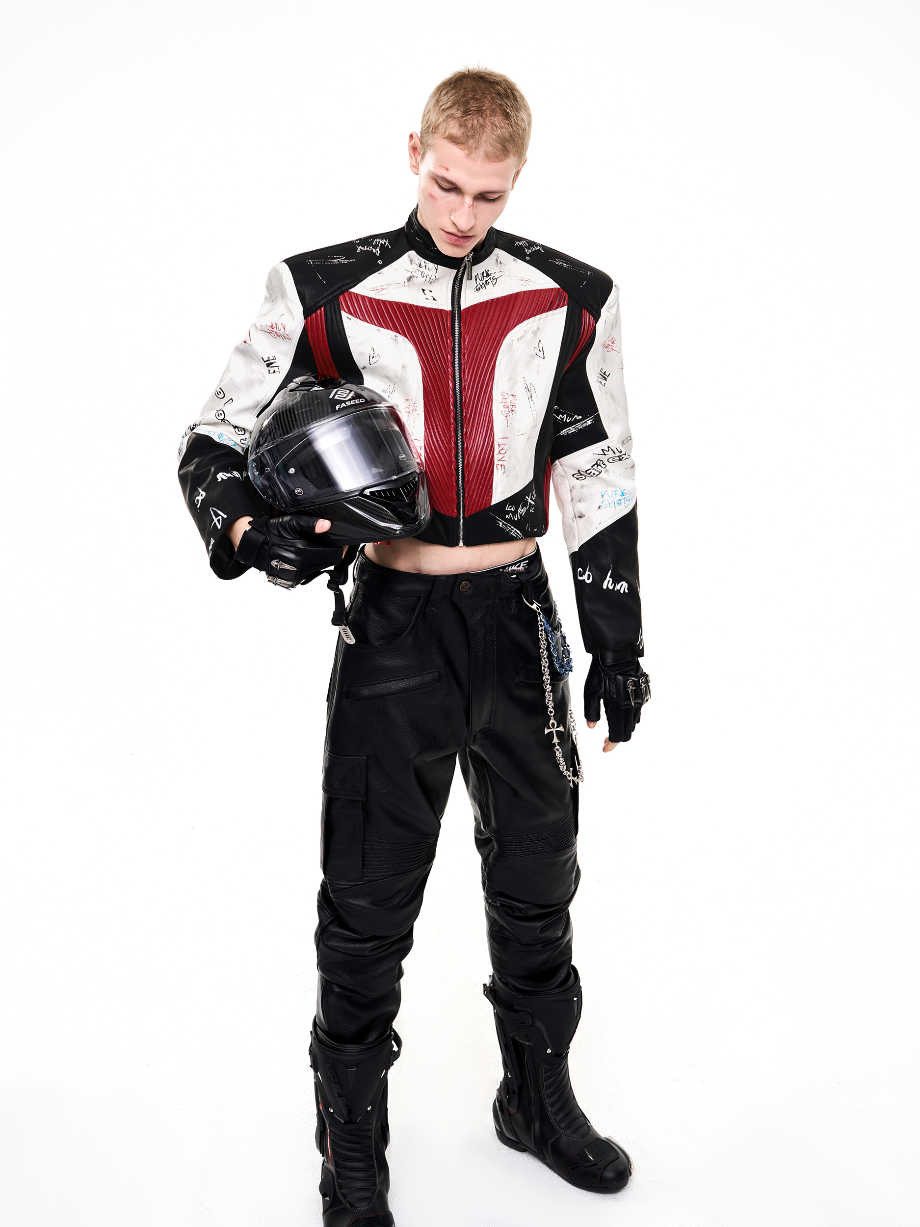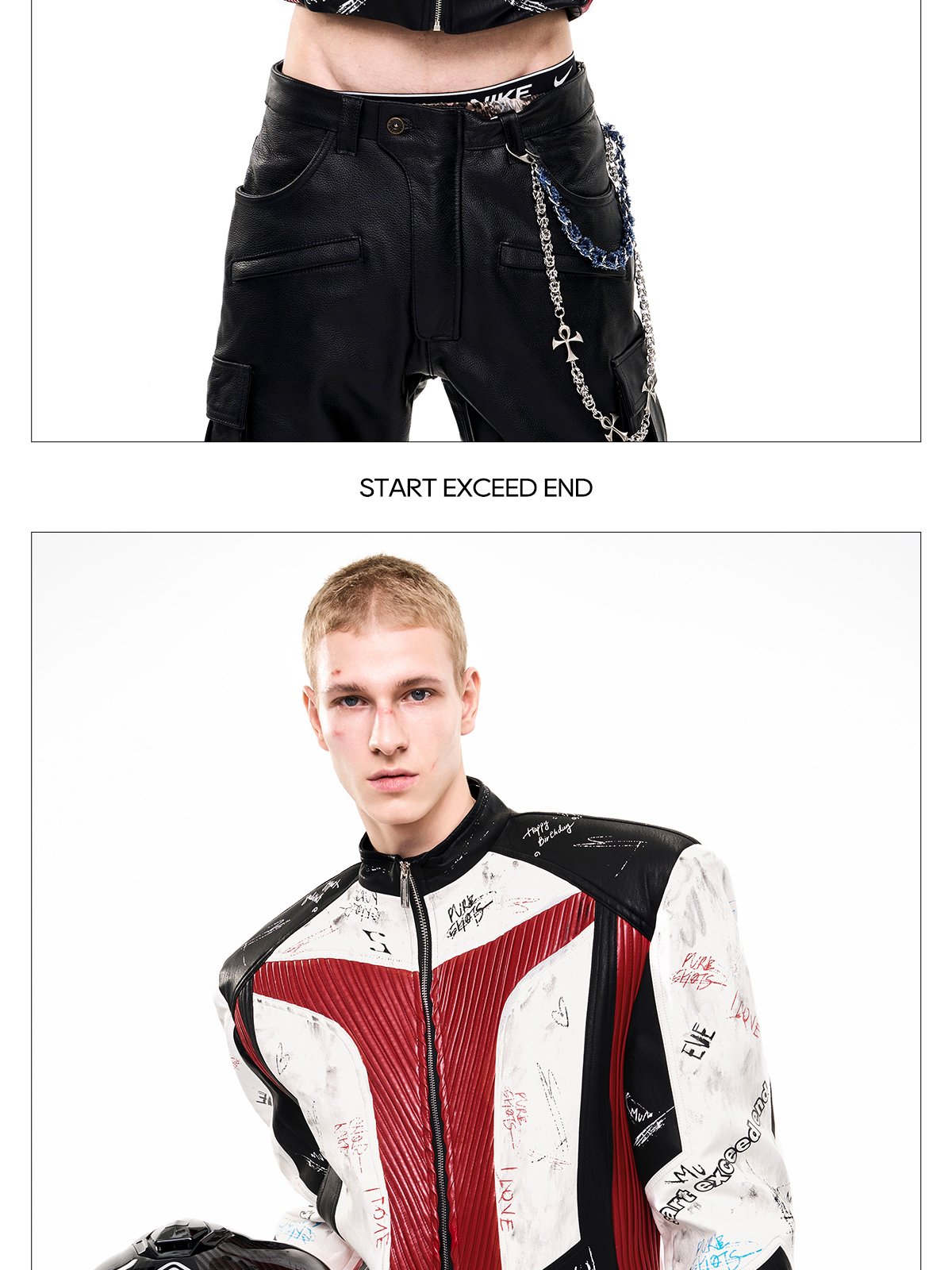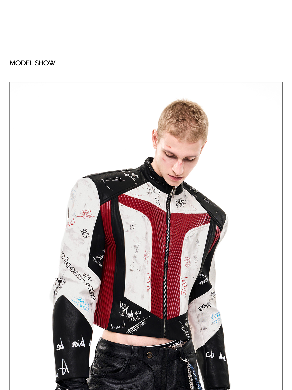 Graffiti Logo Print Stand Neck Patchwork PU Leather Short Jacket WN21808