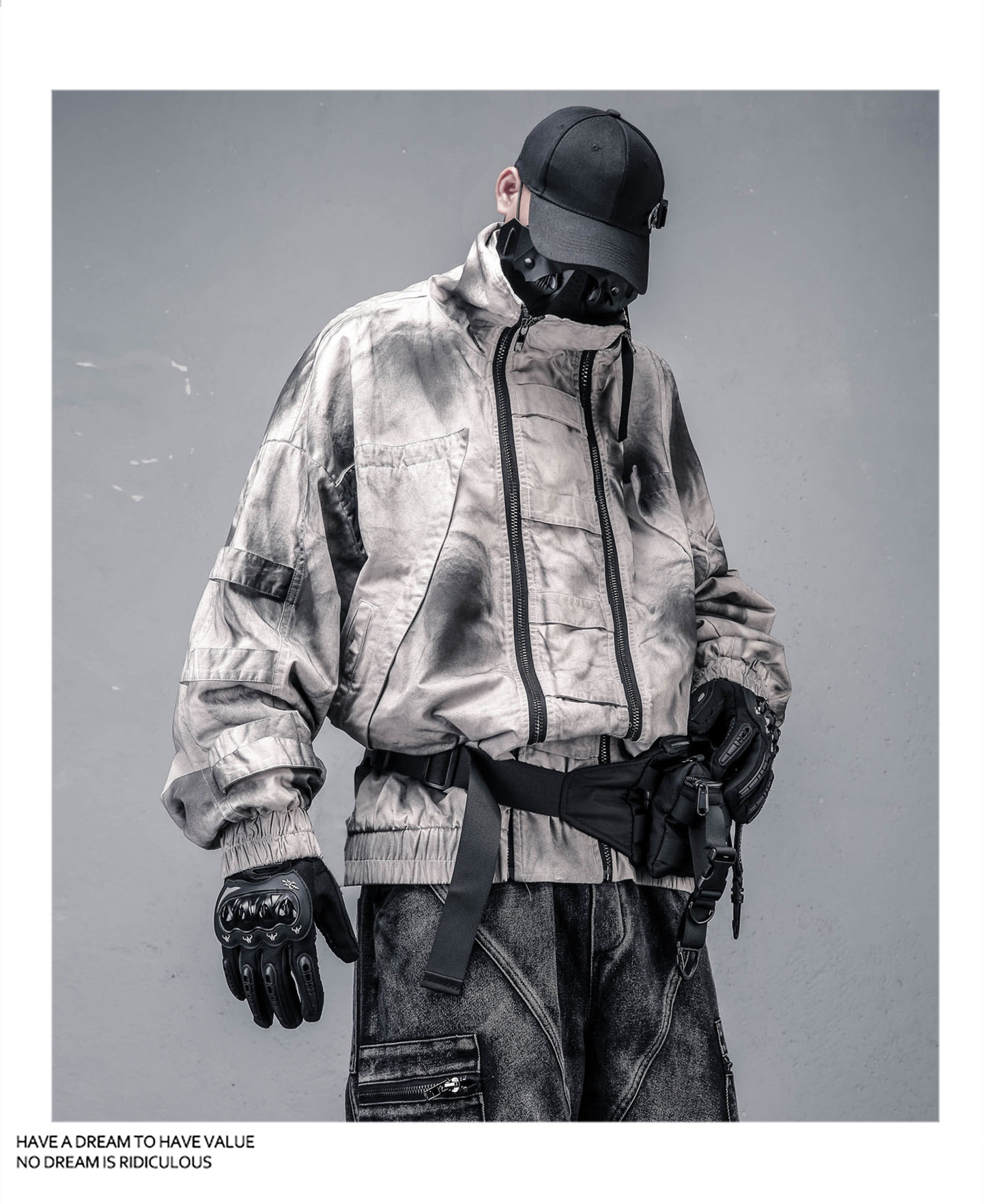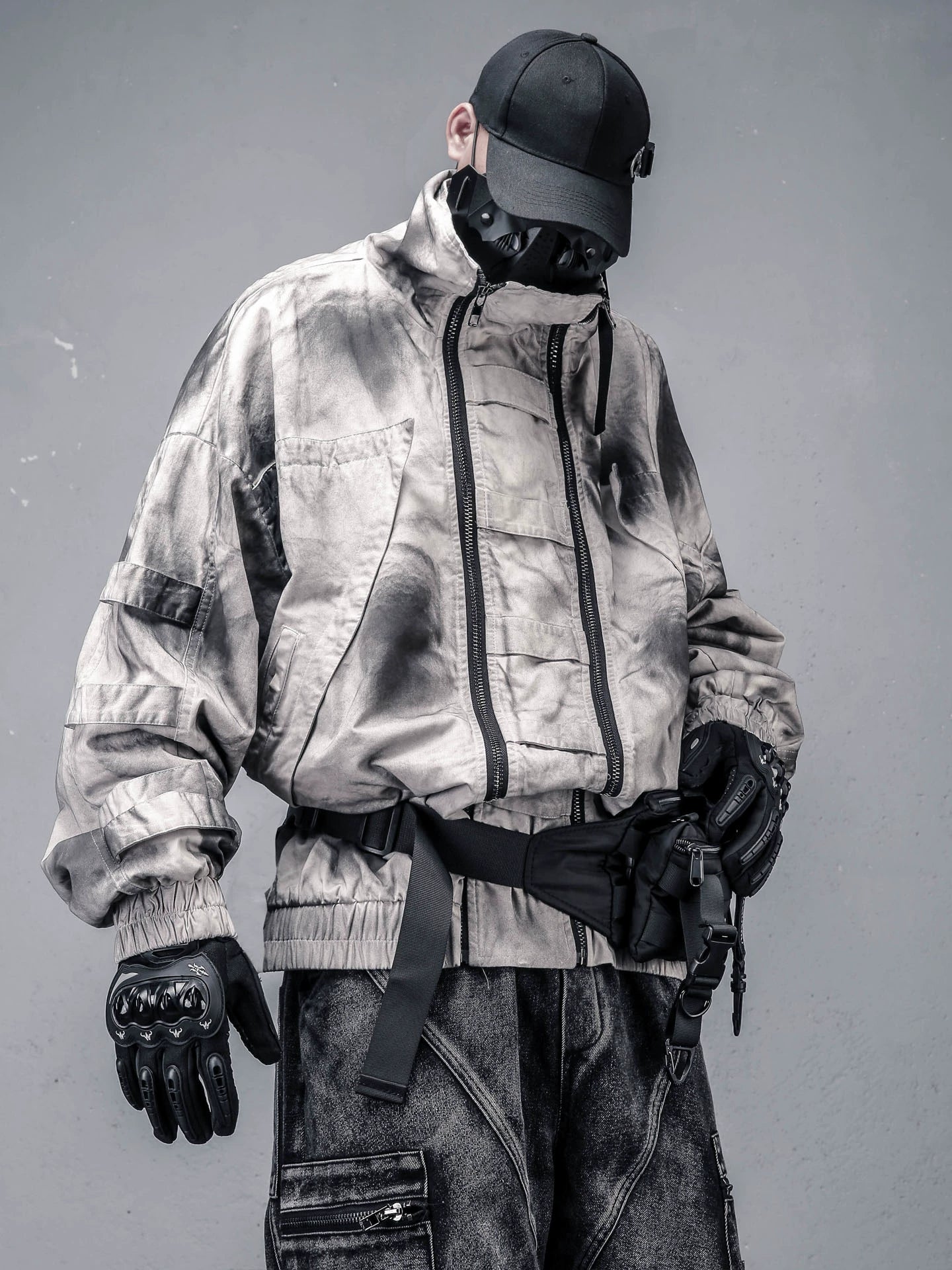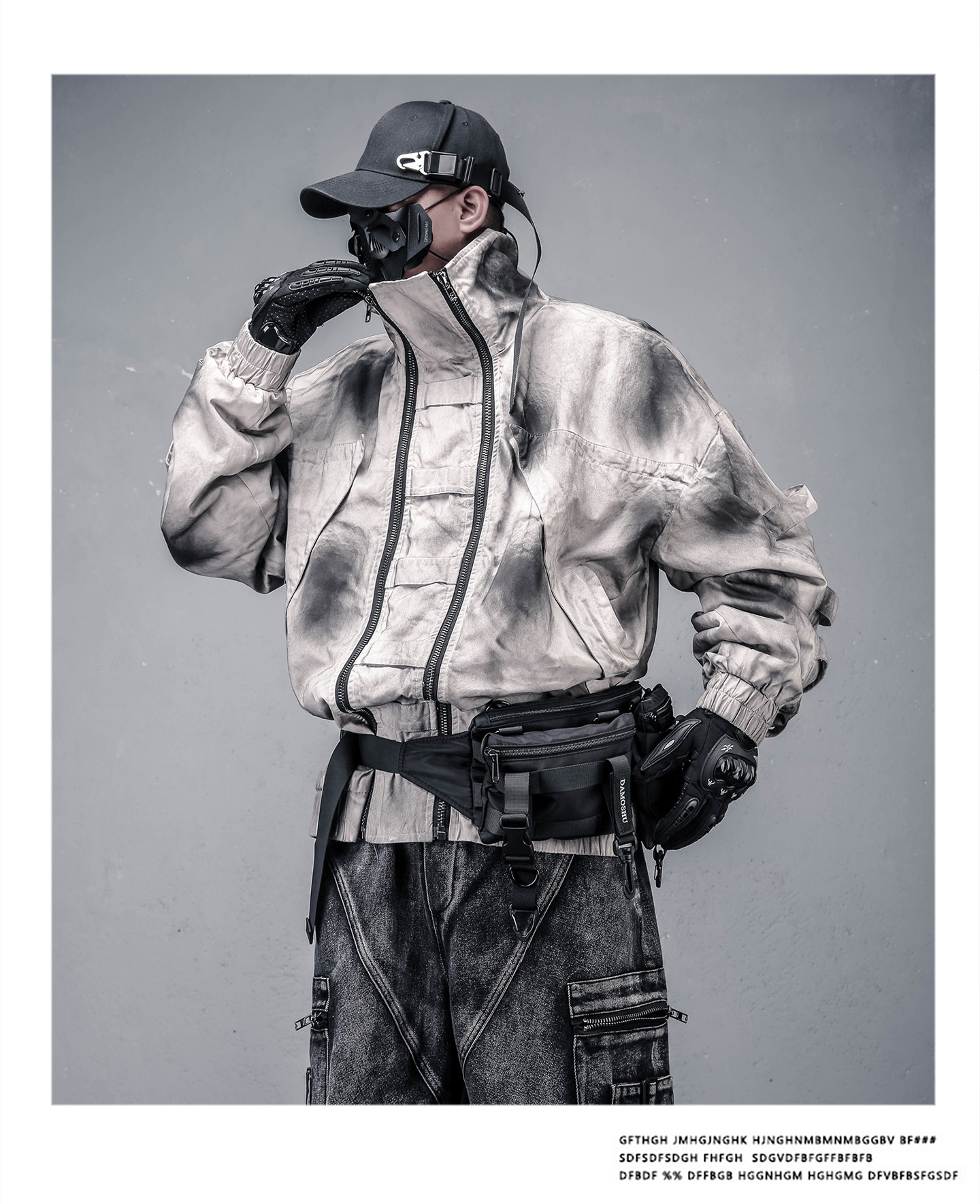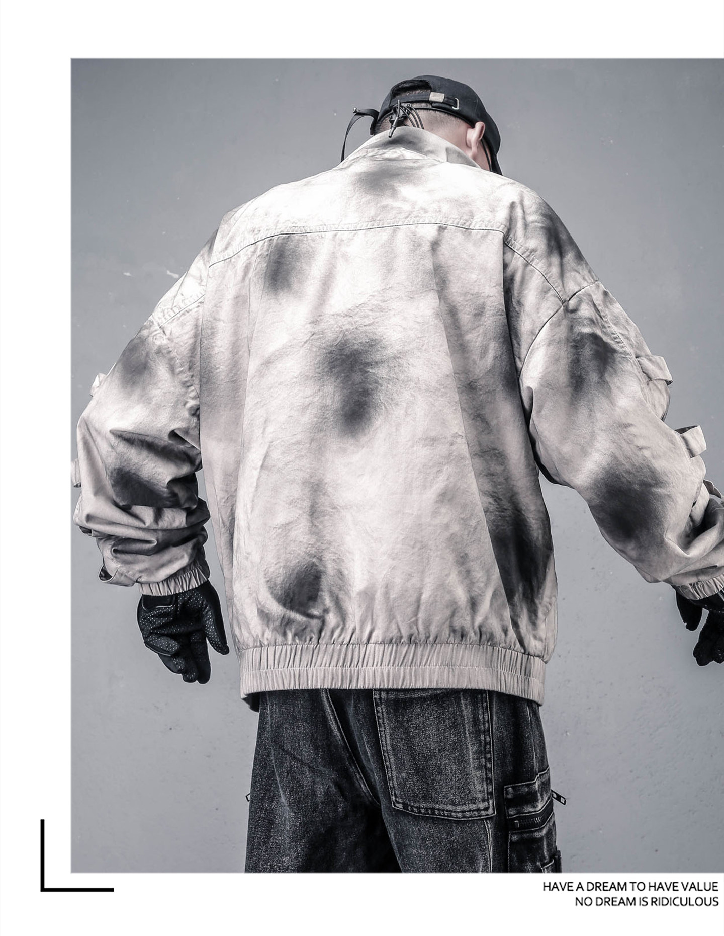 Tie-Dye Wash Double Zip High-Neck Oversize Jacket WN22371