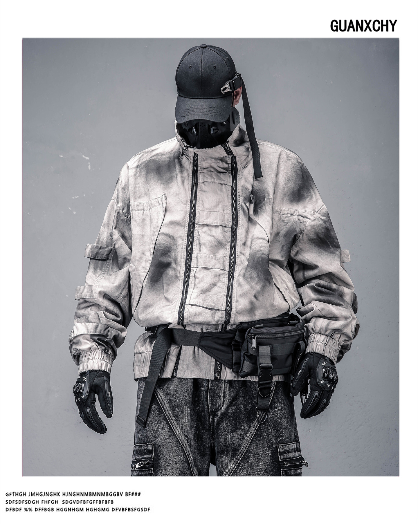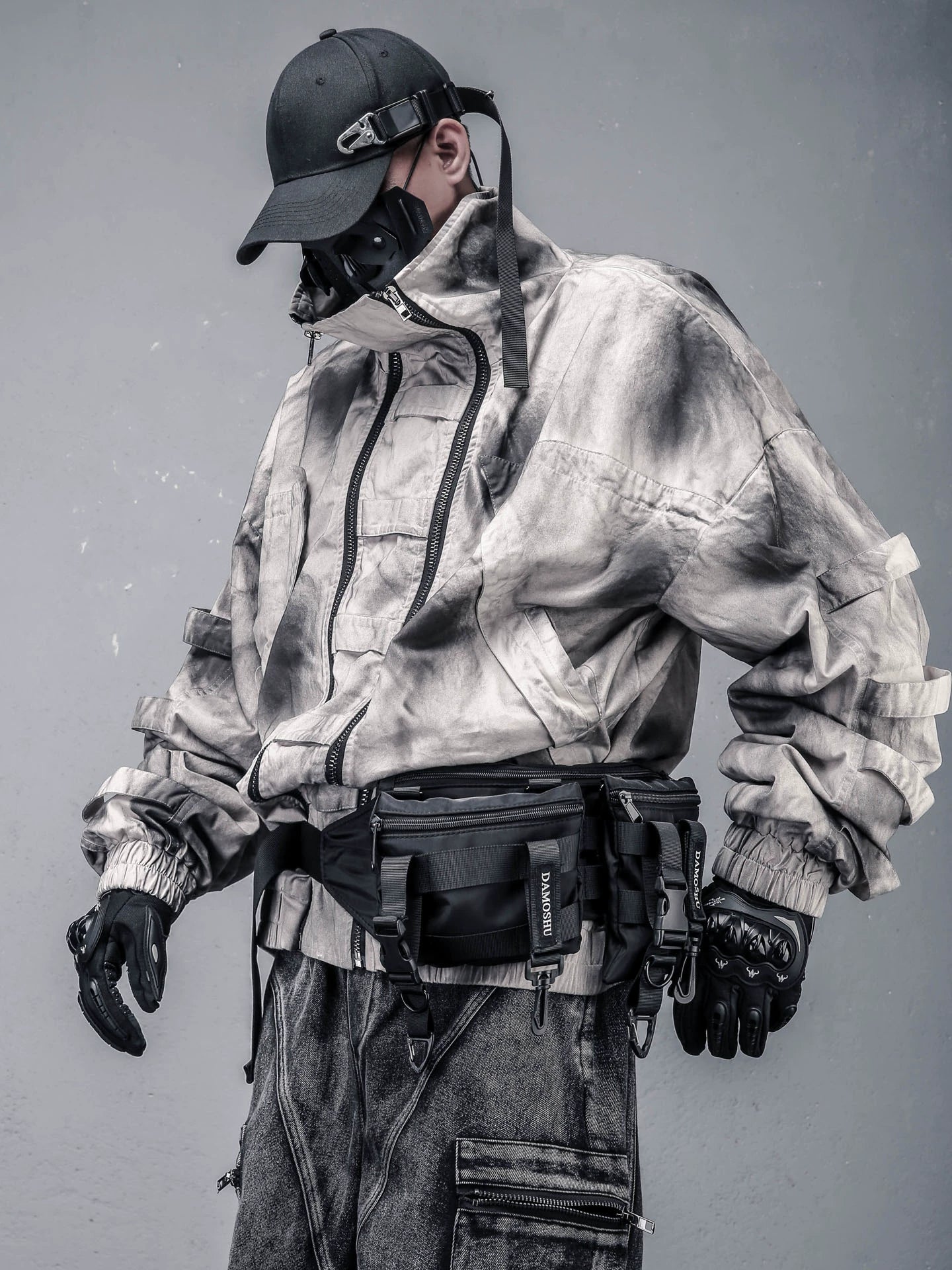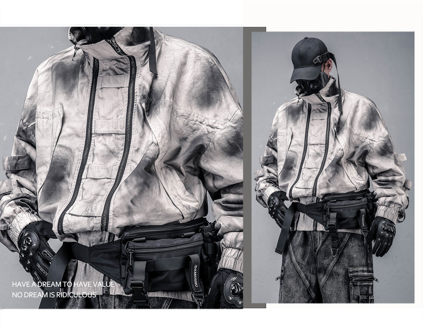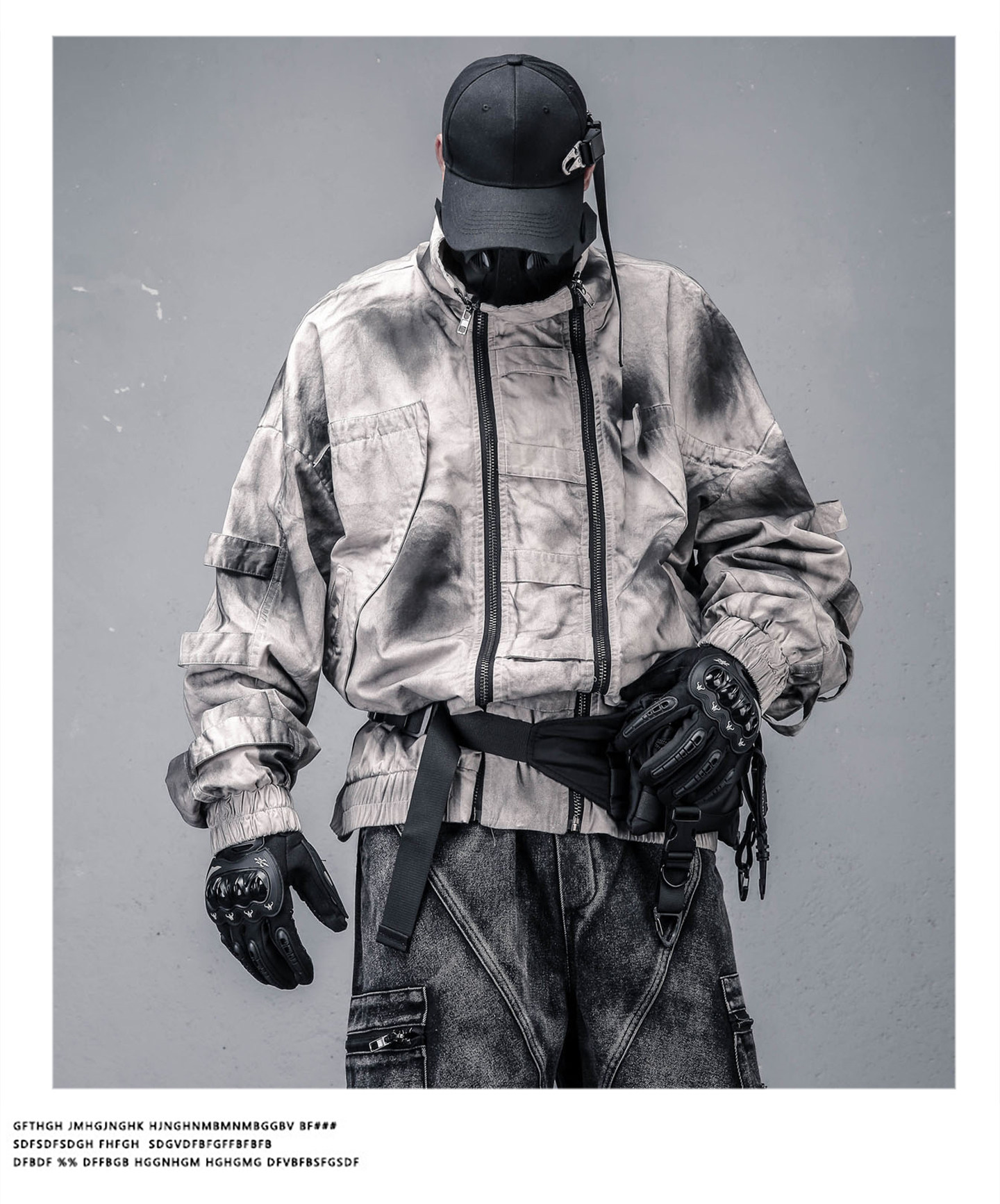 Tie-Dye Wash Double Zip High-Neck Oversize Jacket WN22371