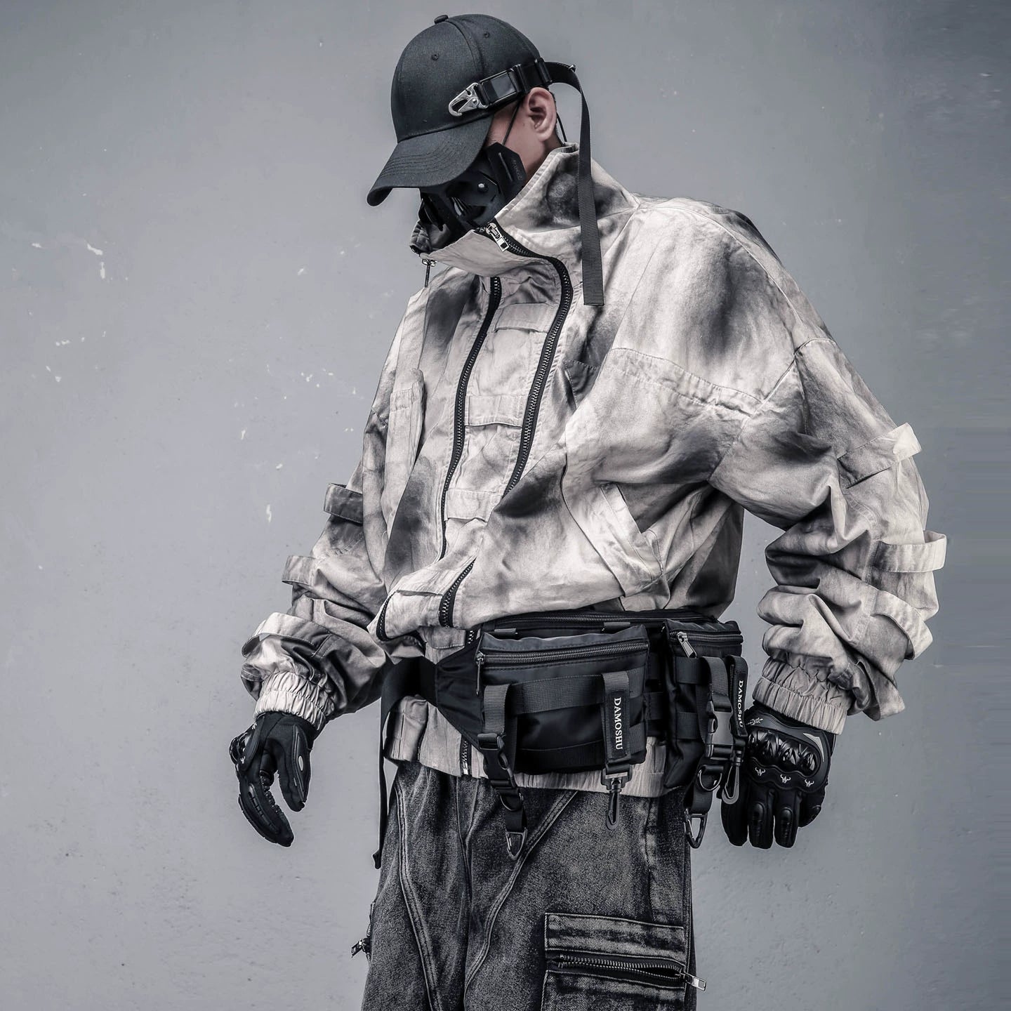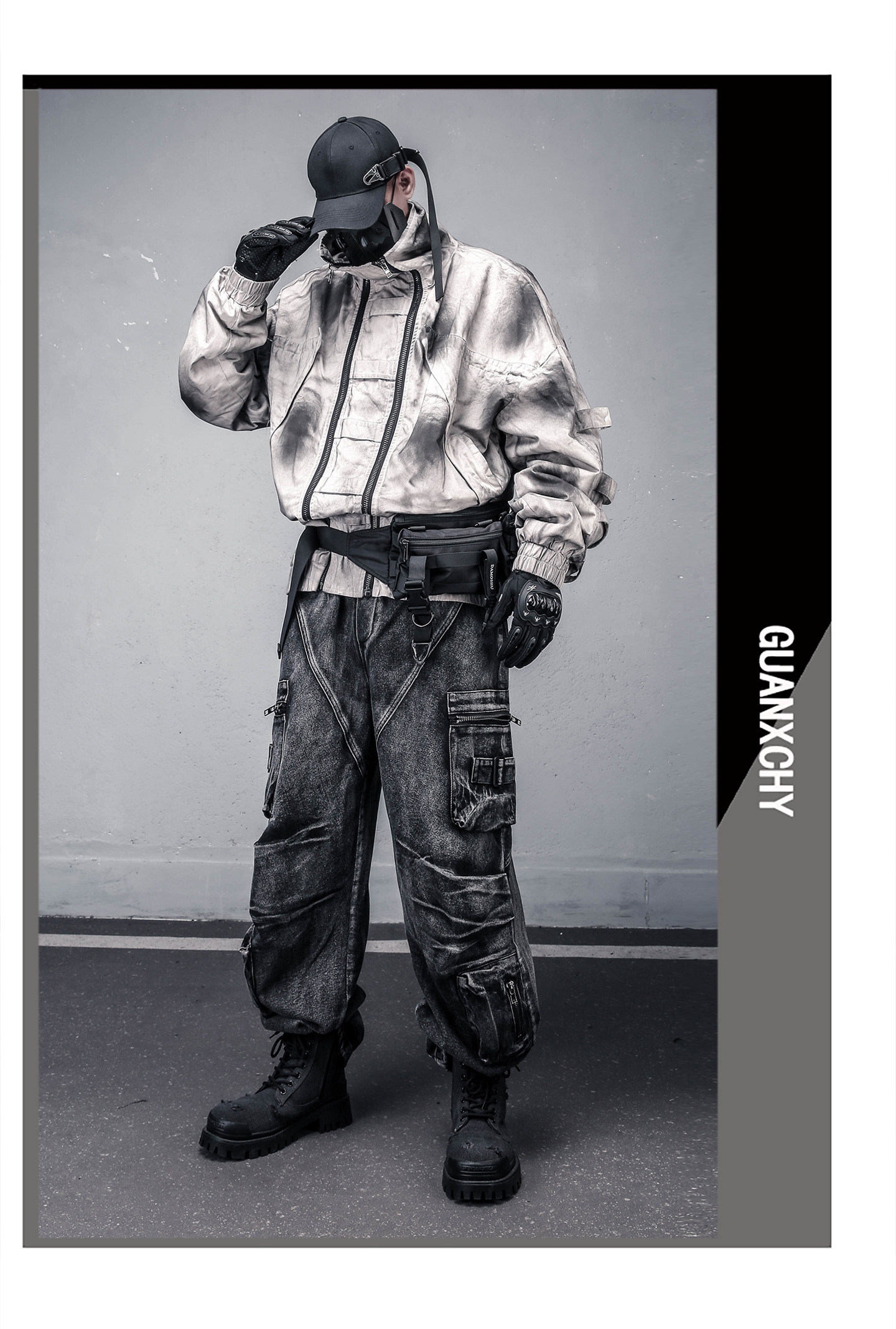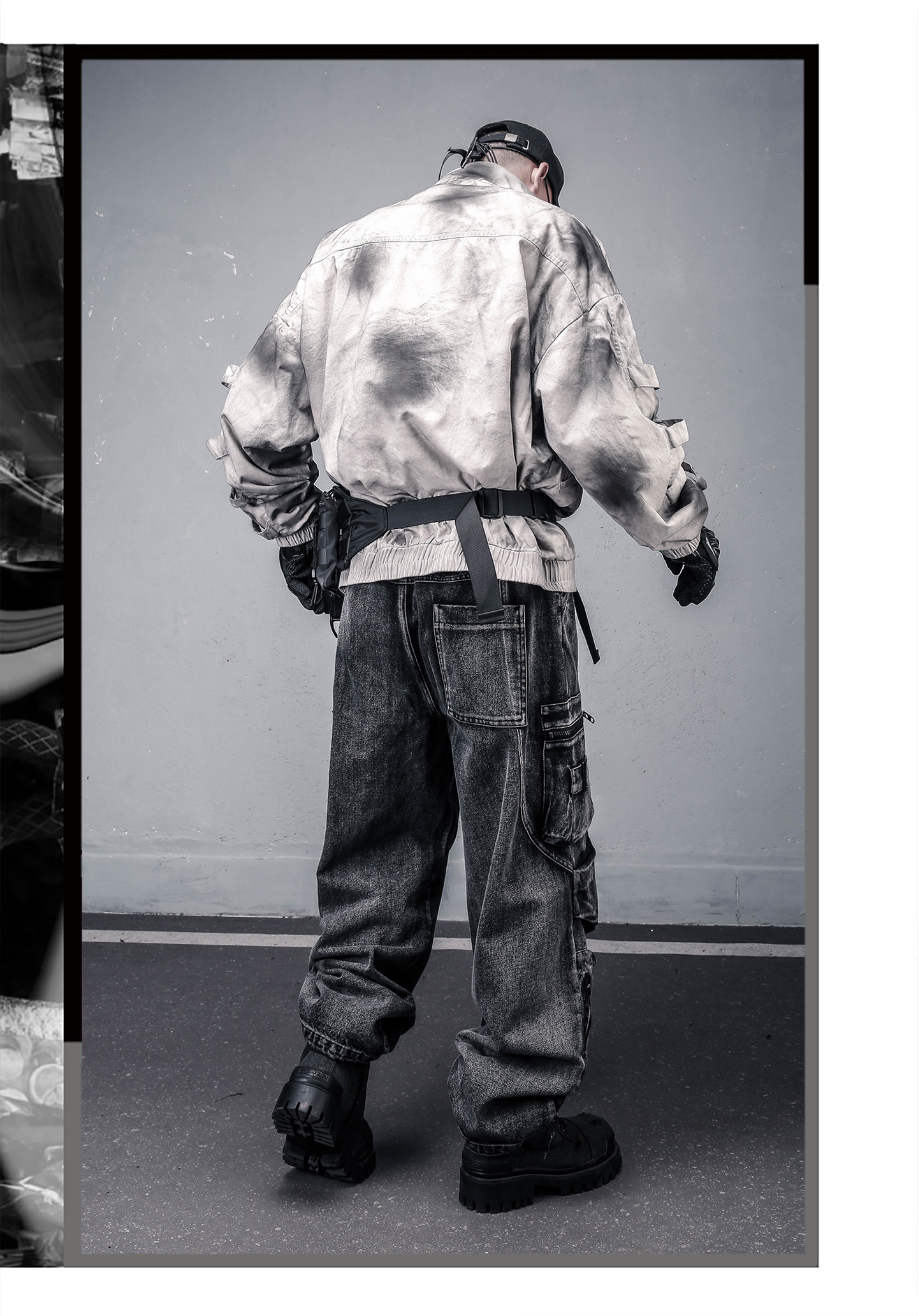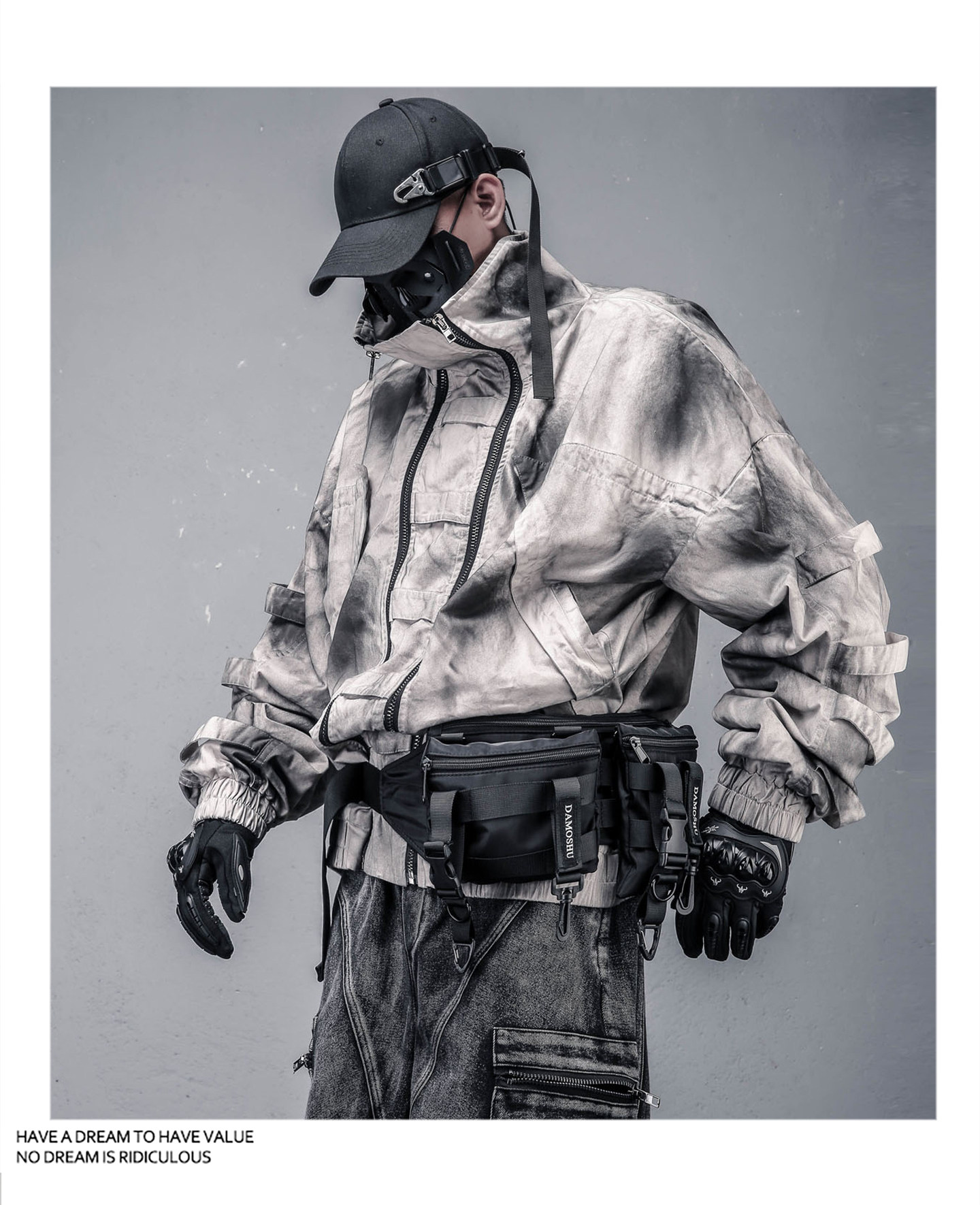 Tie-Dye Wash Double Zip High-Neck Oversize Jacket WN22371