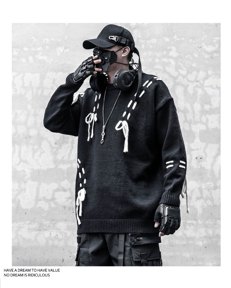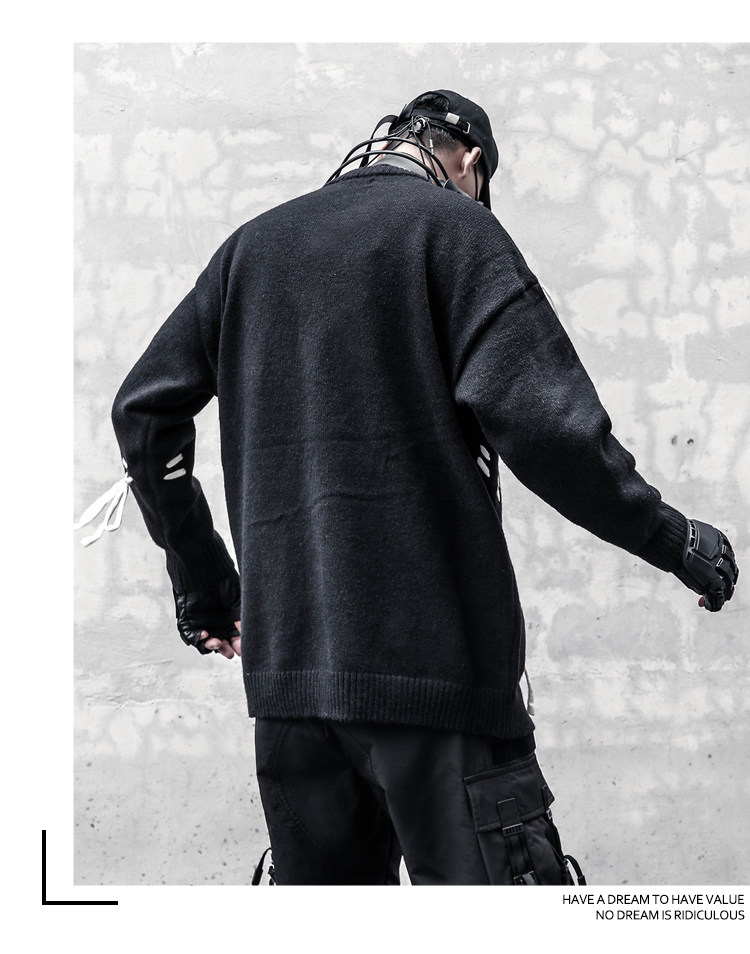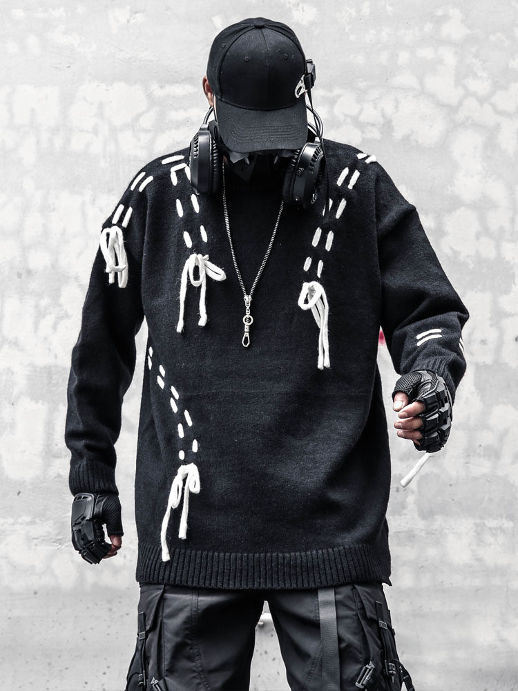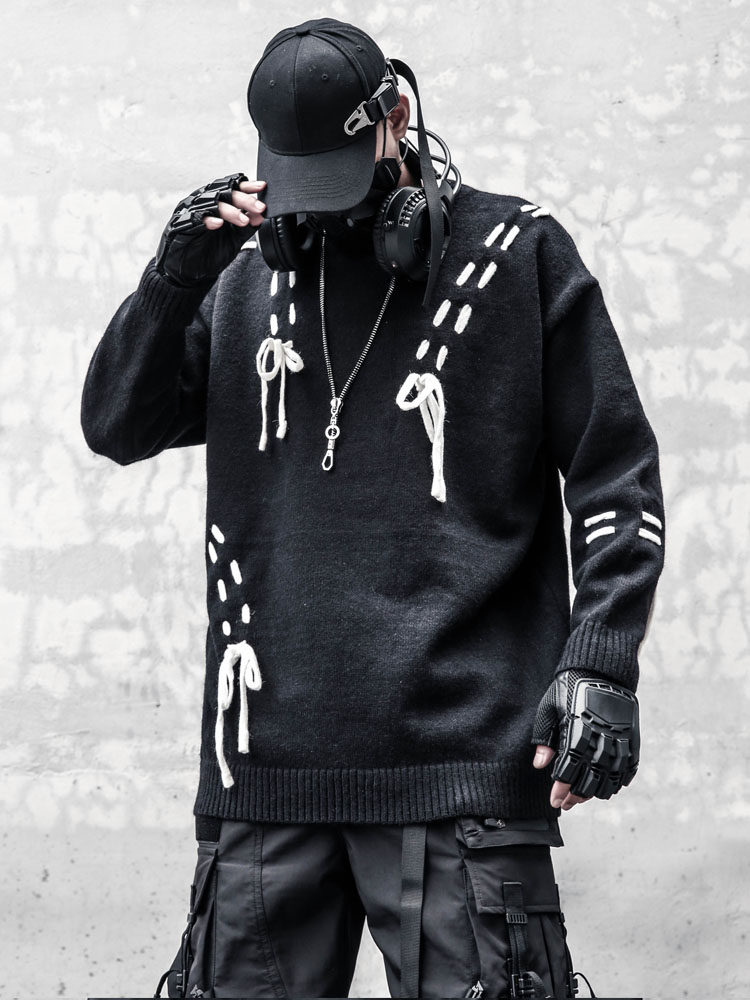 Drawstring Color Block Long Sleeve Knit Sweater WN22586